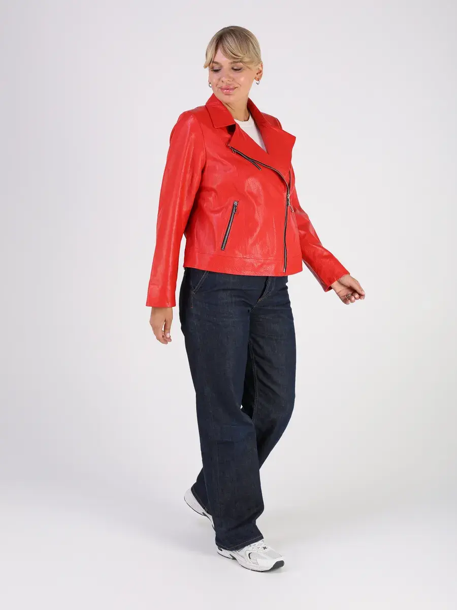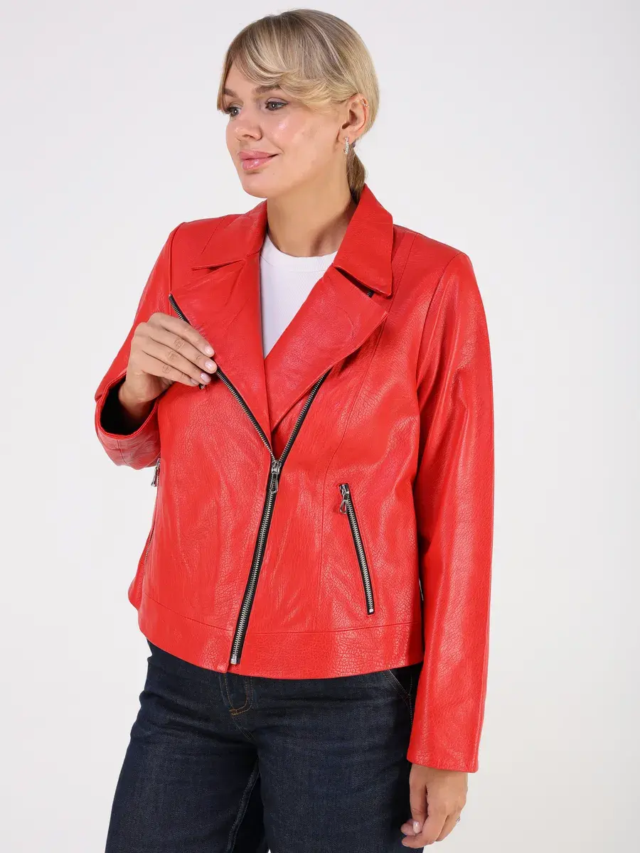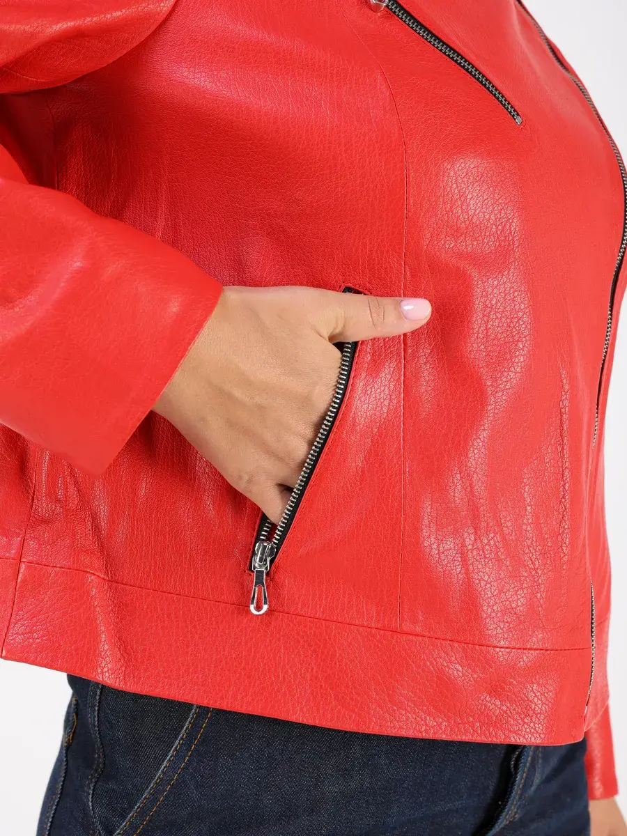 Каждая деталь этой кожаной куртки осень - весна выполнена с особым вниманием к качеству. Ровные швы, прорезные карманы на молнии и карман на груди добавляют акценты стиля и функциональности, делают эту короткую женскую куртку универсальным элементом гардероба, который подходит практически под любой стиль, деловой или повседневный. Свободный оверсайз крой, втачной рукав обеспечивают этой демисезонной куртке, косухе комфорт и свободу движений.