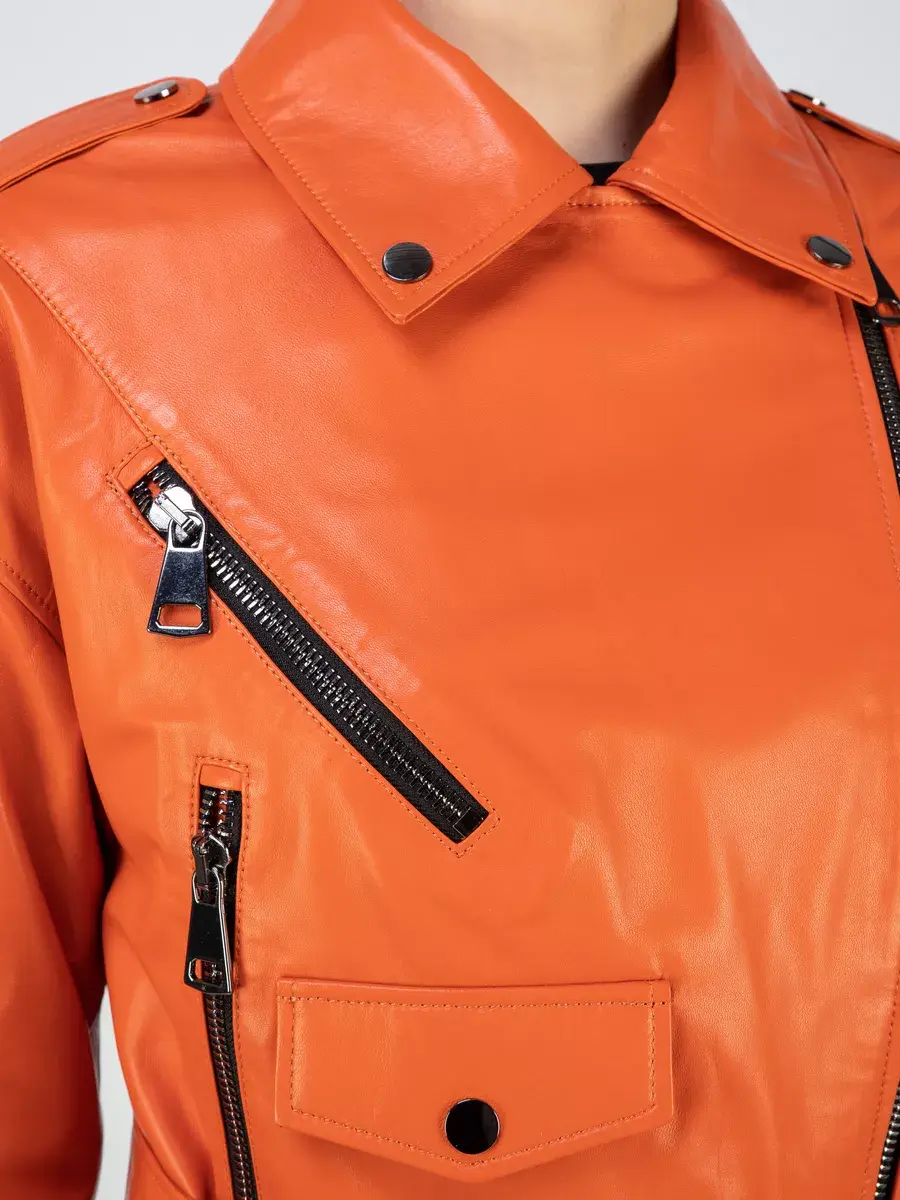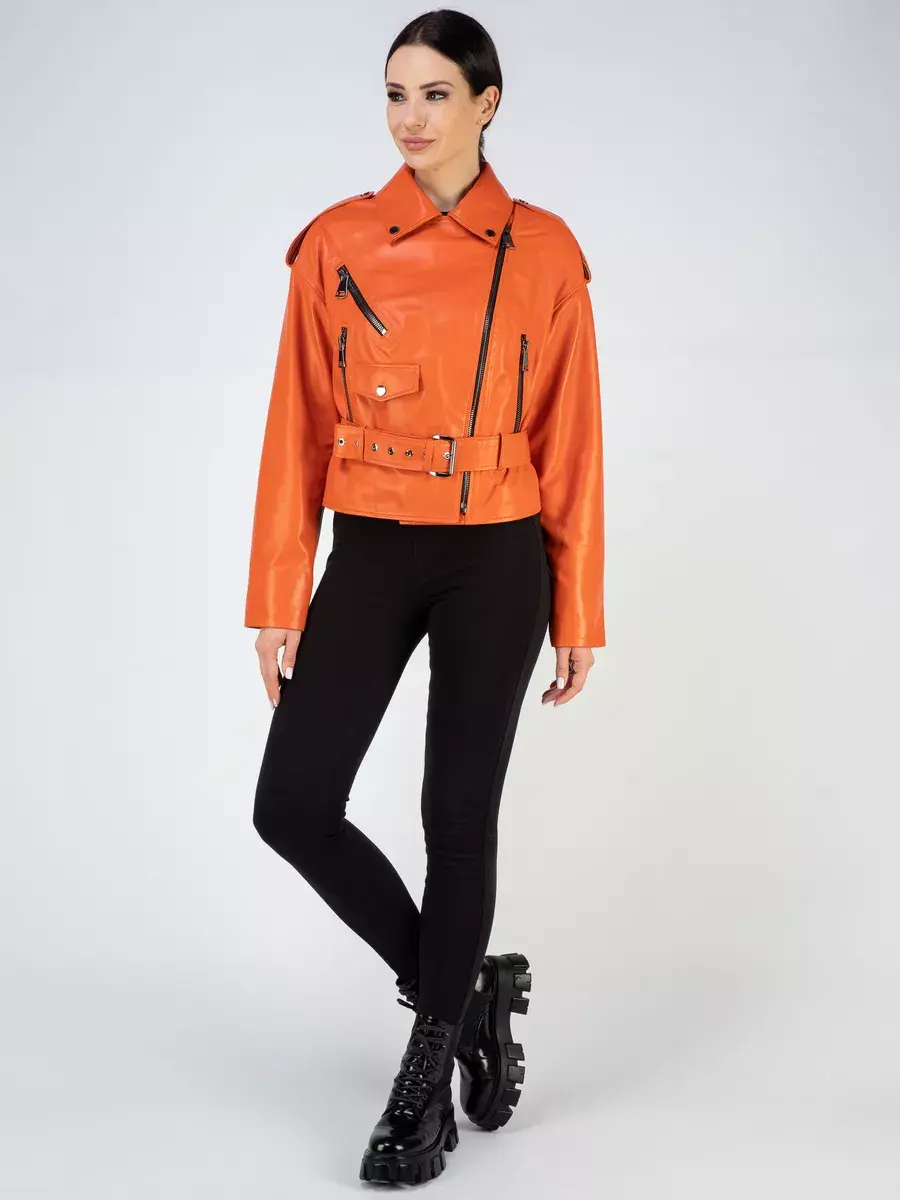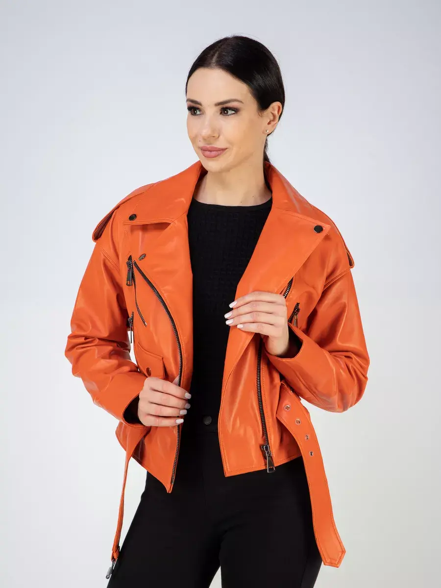 В нашей коллекции вы сможете найти эту модную вещь в ярких и молодежных оттенках - оранжевом и желтом. Для любителей более классических цветов у нас есть кожанка базового черного оттенка.