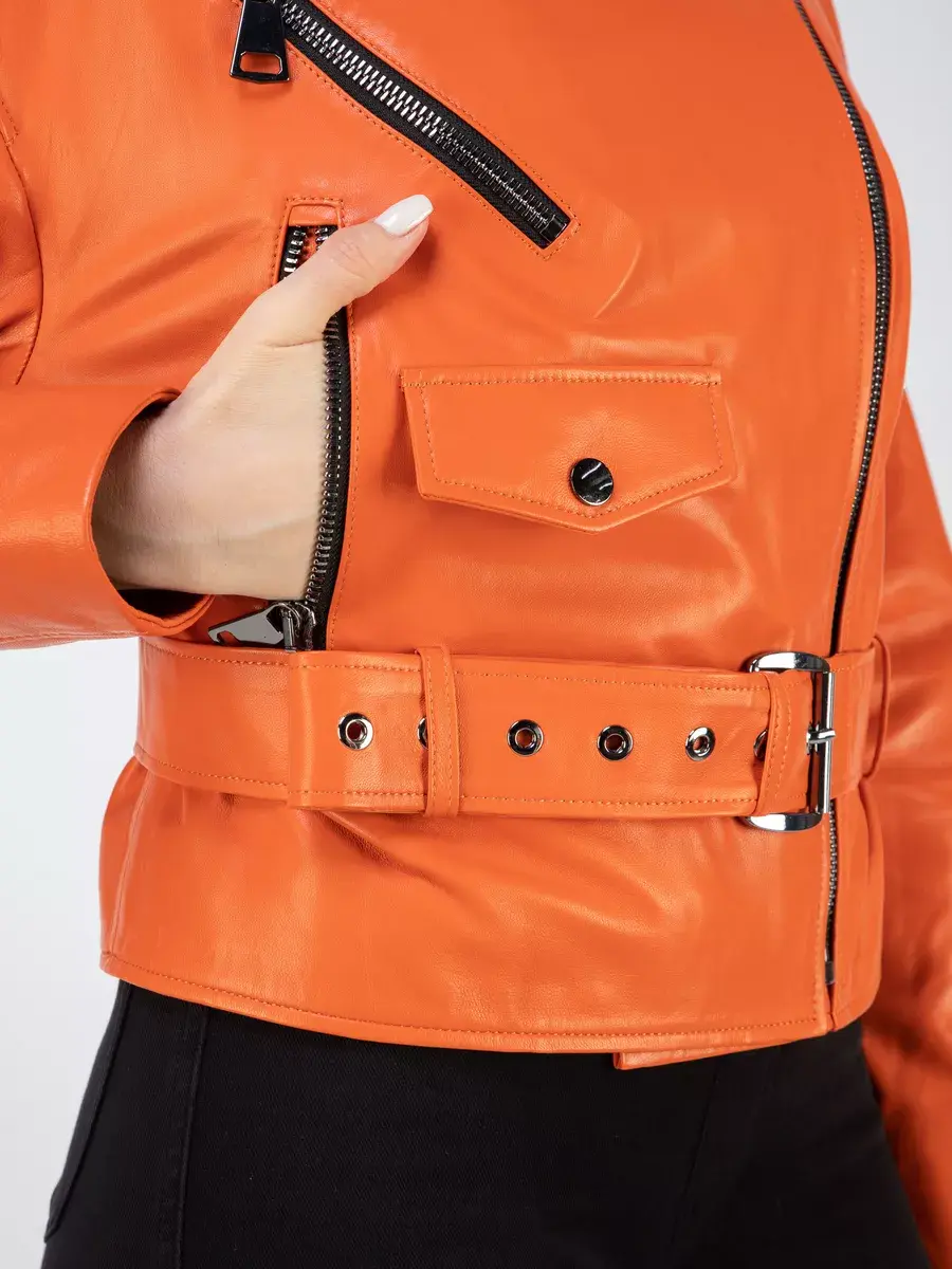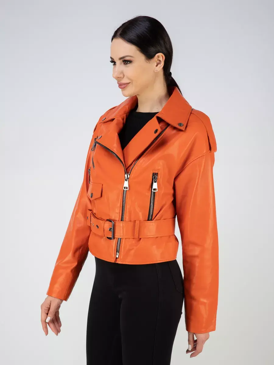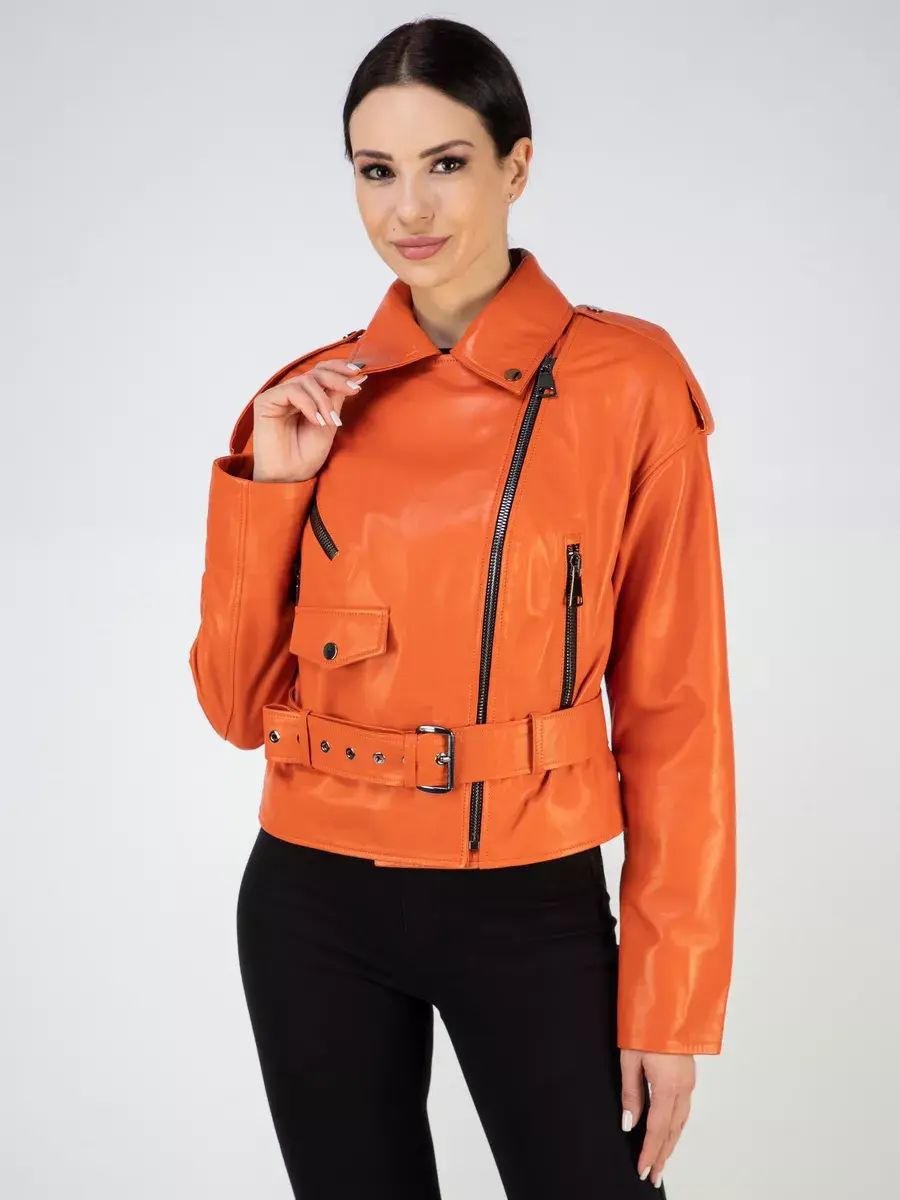В нашей коллекции вы сможете найти эту модную вещь в ярких и молодежных оттенках - оранжевом и желтом. Для любителей более классических цветов у нас есть кожанка базового черного оттенка.