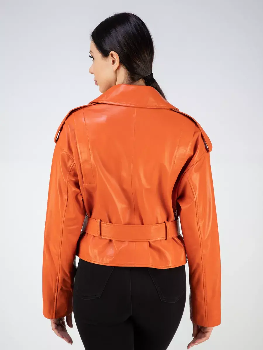 Каждая деталь этой кожаной куртки осень - весна выполнена с особым вниманием к качеству материалов и одежды. Модель куртки имеет длинные рукава и прямой свободный крой. Она оснащена съемным ремнем на поясе, с помощью которого силуэт можно сделать приталенным. Декоративные погоны, спущенная линия плеч, отложной английский воротник и прорезные карманы на молниях придают кожанке необычный и трендовый вид. Изделие выполнено из материала премиум - качества - непромокаемой и водоотталкивающей натуральной кожи и оснащено мягкой, тонкой подкладкой из текстиля, что делает его отличным выбором для межсезонья - весенних и осенних месяцев. Курточка даст отличную защиту от дождя и ветра и станет отличным выбором повседневной верхней одежды.