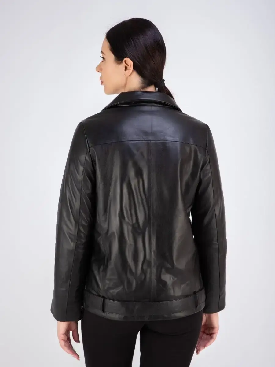 Зимняя куртка осенняя женская косуха изготовлена из высококачественной натуральной кожи ягненка, которая применяется для создания эксклюзивных модных коллекций верхней одежды.