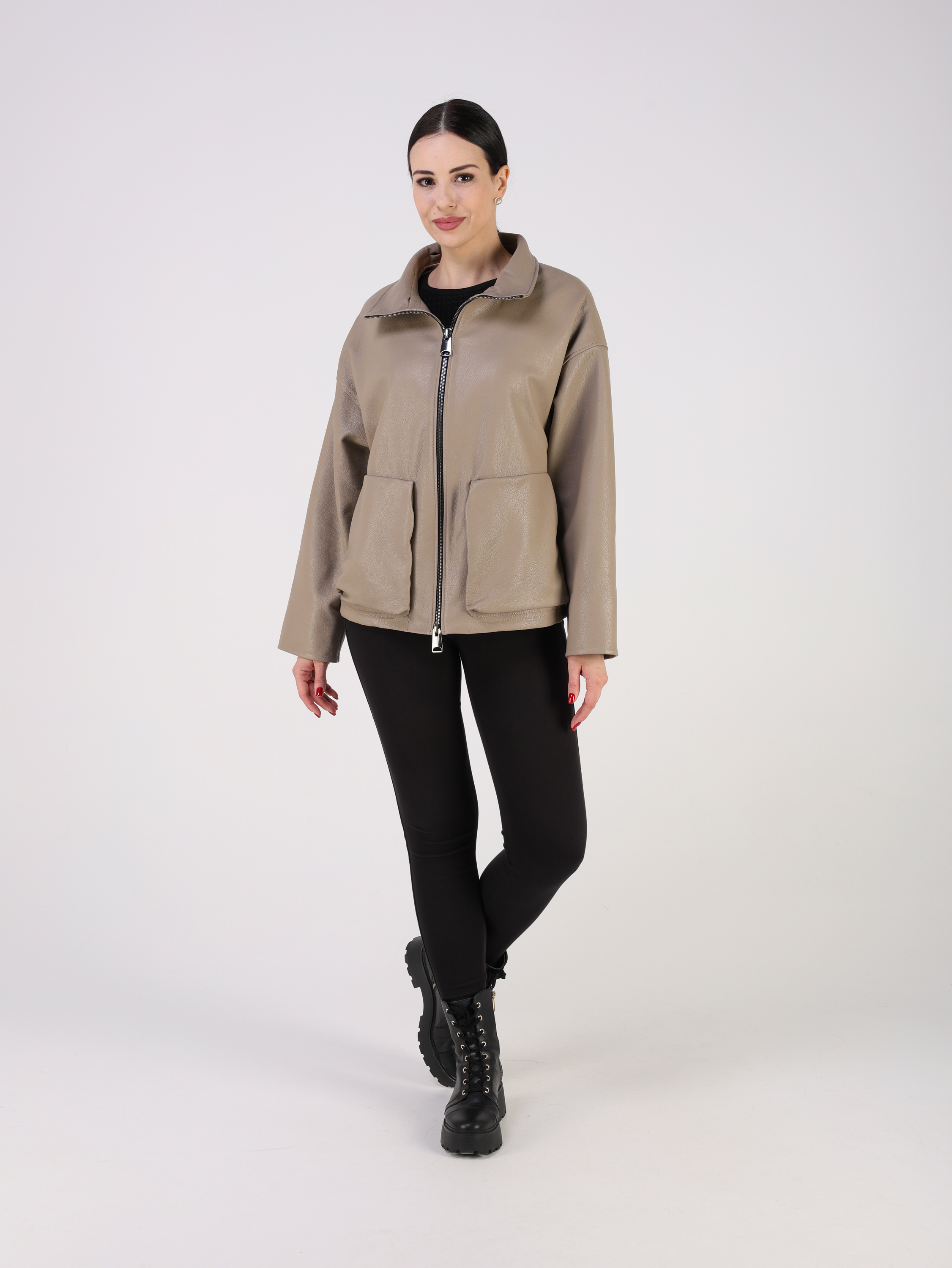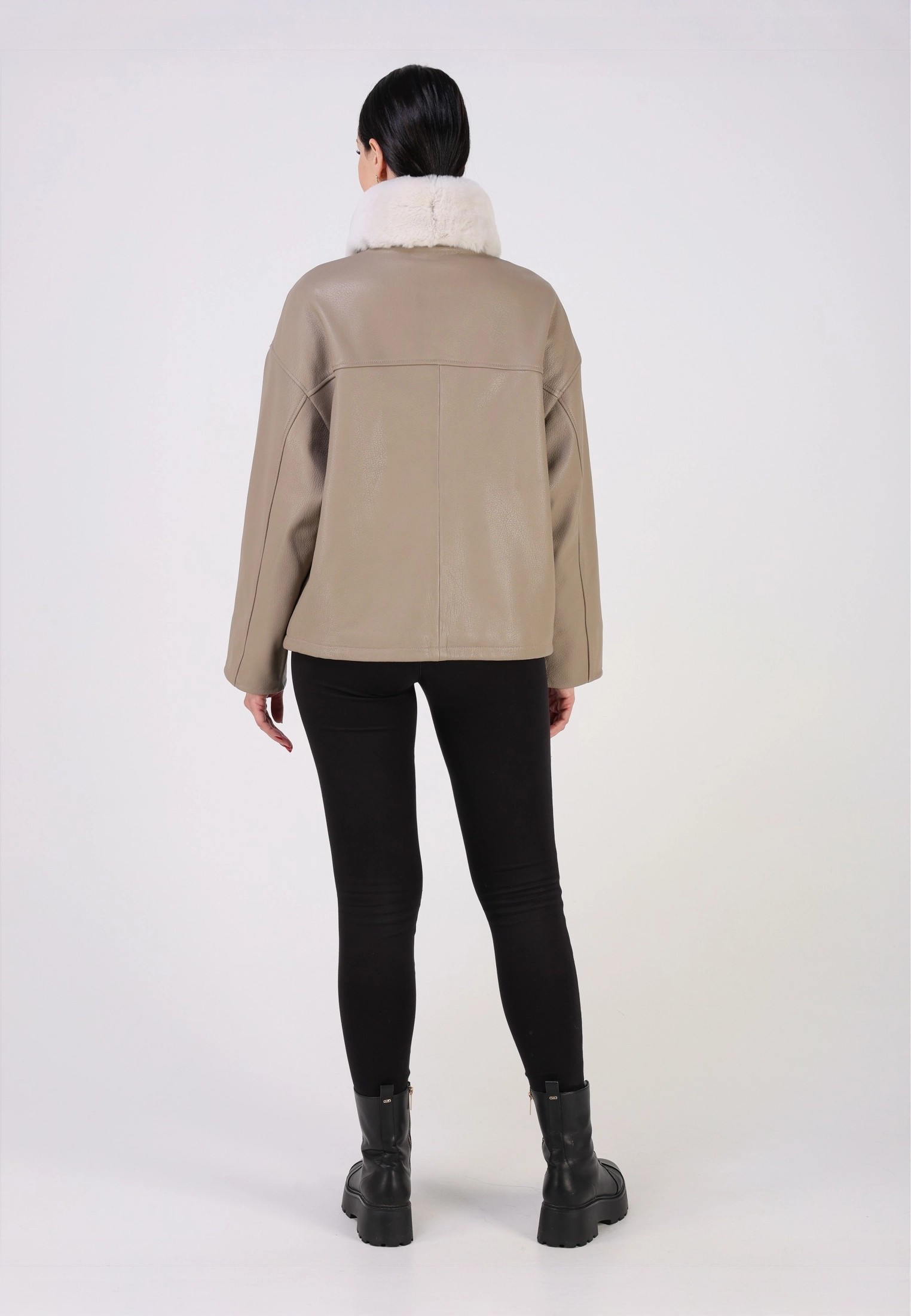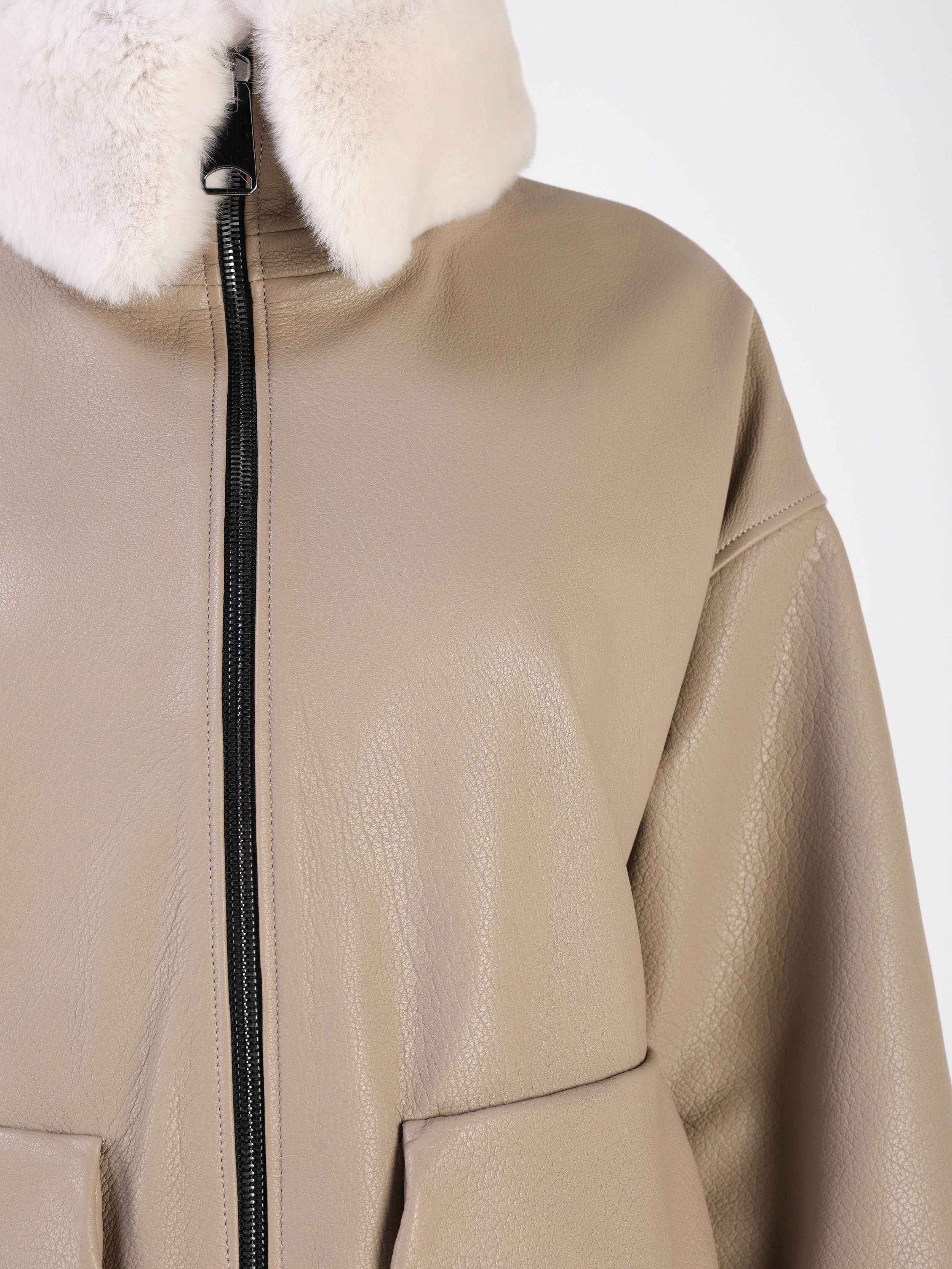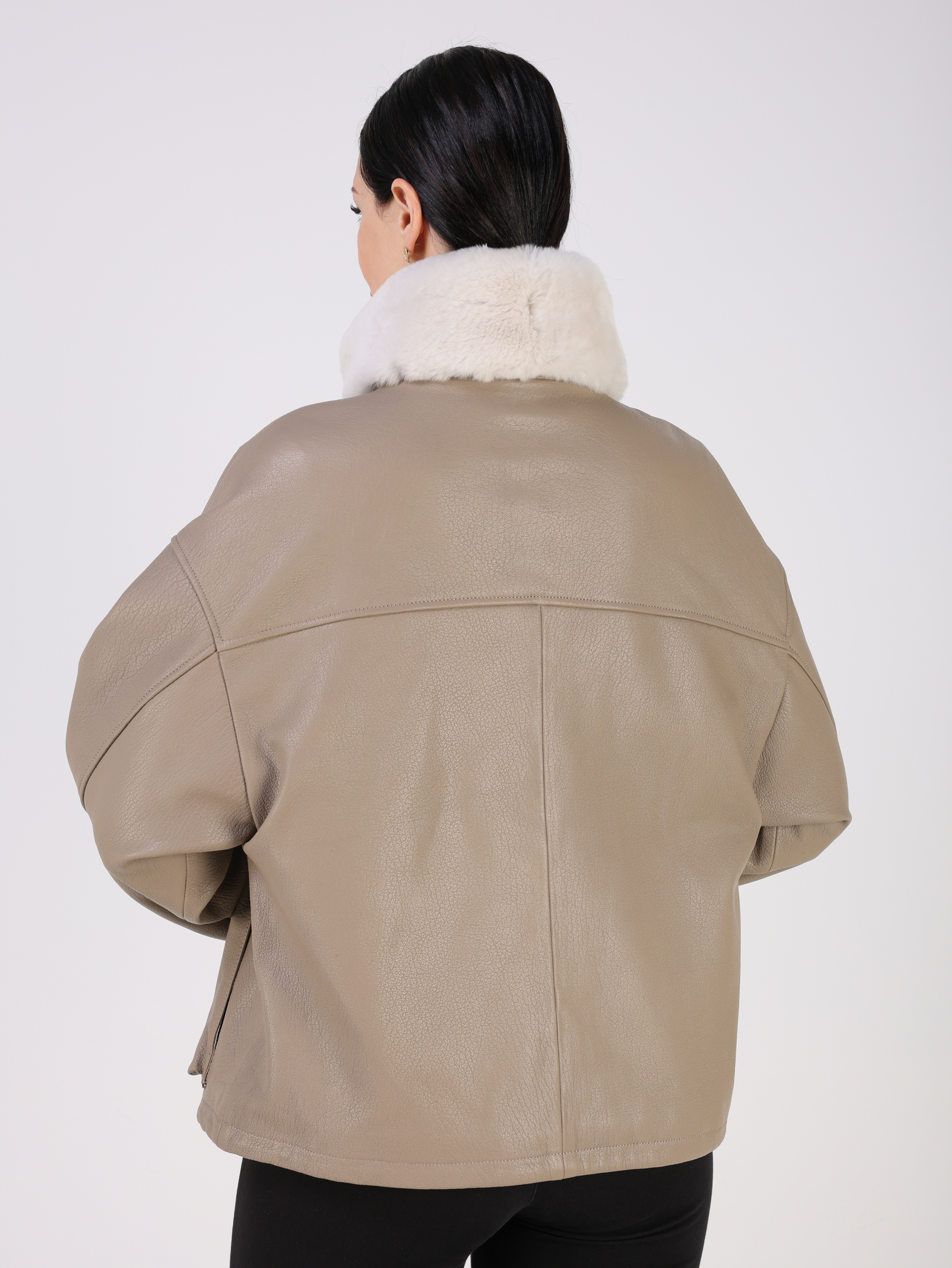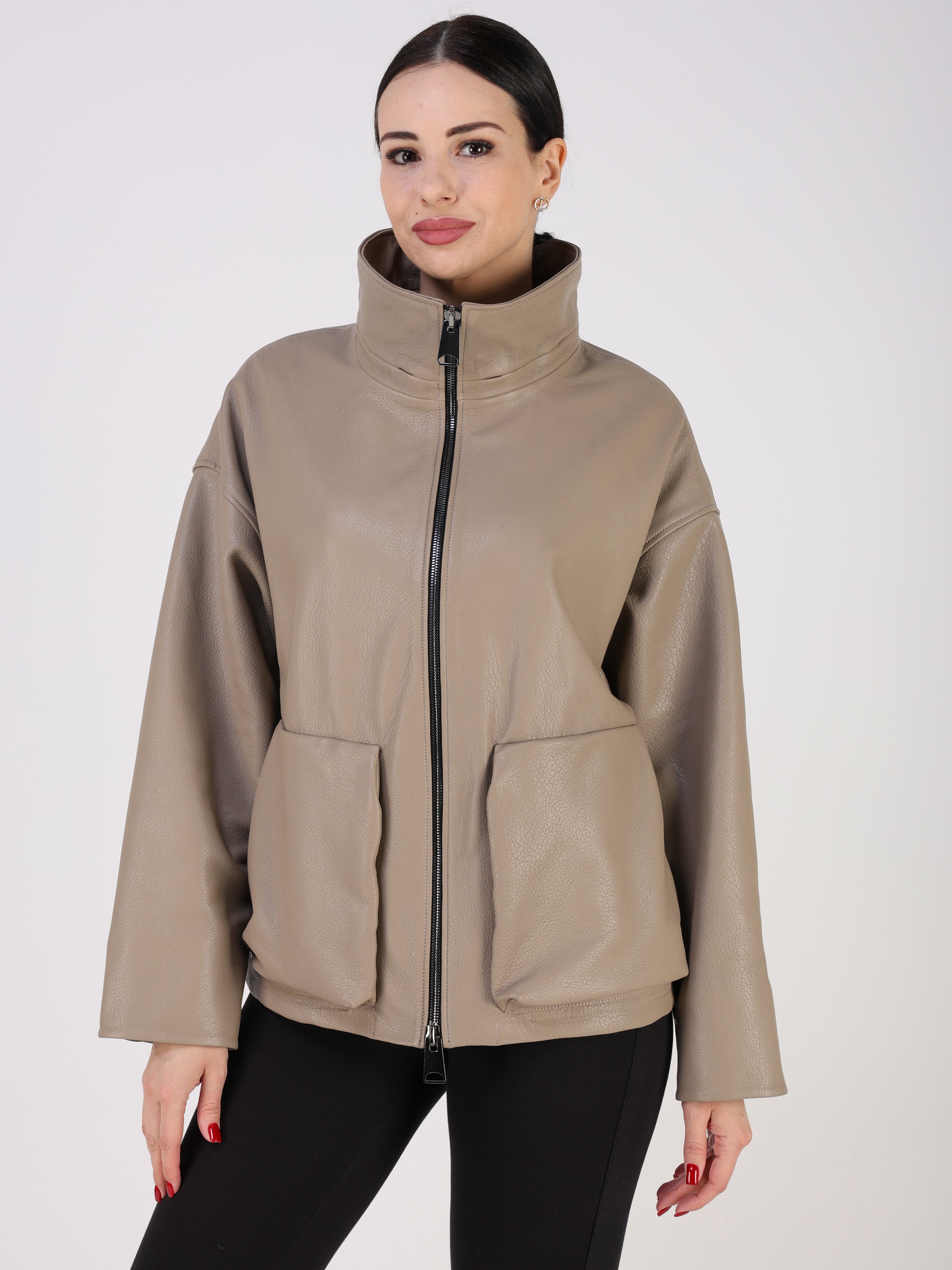 Куртка кожаная женская короткая из натуральной кожи ягненка выделки "джумбо". Плотная кожа с выраженной крупнозернистой фактурой. Она отличается мягкостью, долговечностью и отличными ветрозащитными свойствами. Модель свободного - оверсайз кроя с утягивающими кулисками в подоле. Детали: застежка на молнии, карманы накладные, спущенная линия плеча, съемный меховой воротник овчина.