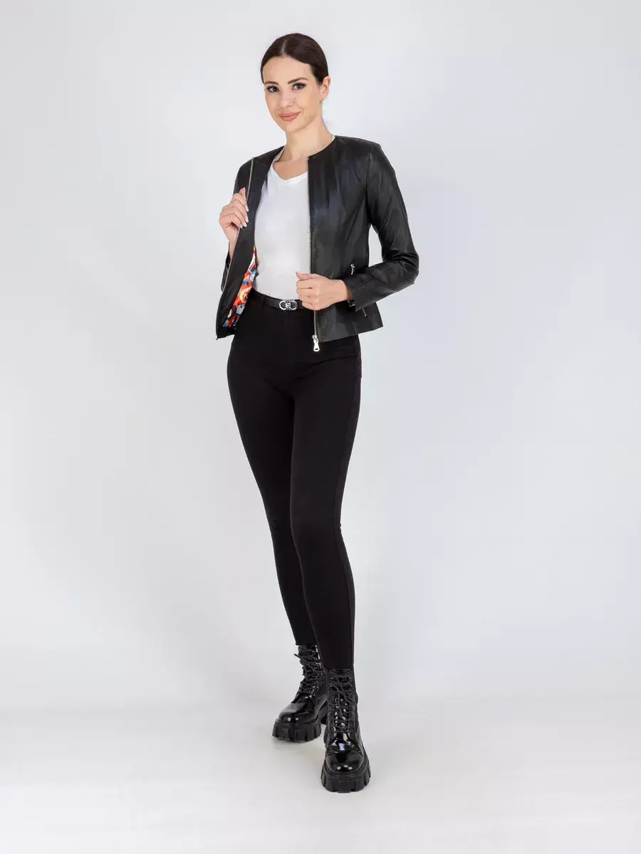 Эстетичная кожанка из мягкого непромокаемого материала отлично сочетается с нарядами в офисном и кэжуал (casual) стиле. Она идеальна для активного повседневного ношения в межсезонный период, но подойдет не только для осенне - весенней погоды, но и для прохладных летних дней. Эта кожанка легко дополнит современный лук как девочки подросткового возраста, так и взрослой женщины, выступит базовым предметом женского гардероба. Кожаная куртка красиво садится по фигуре девушек высокого и невысокого роста, эффектно подчеркивает силуэт и не сковывает движения.