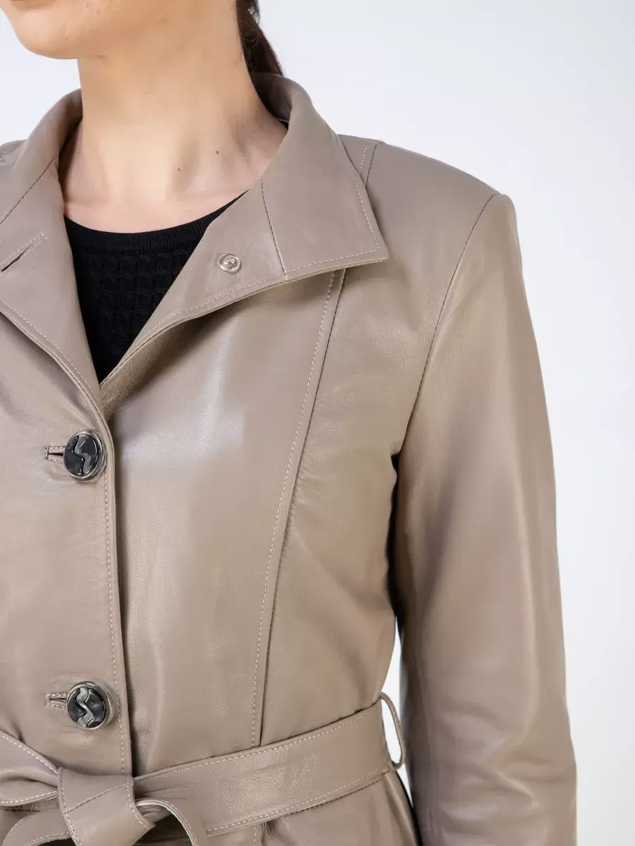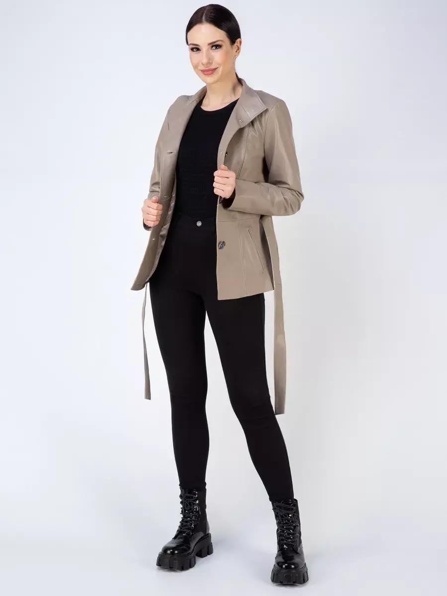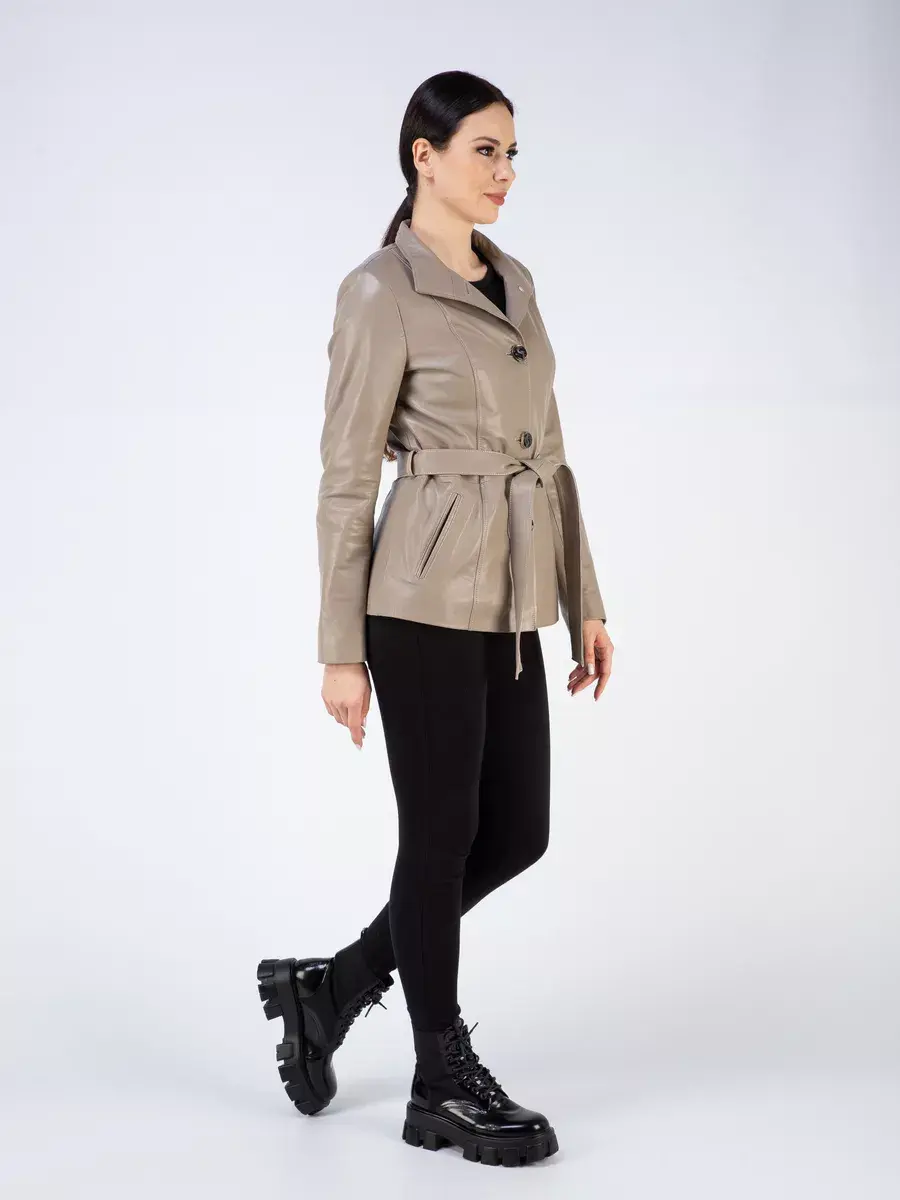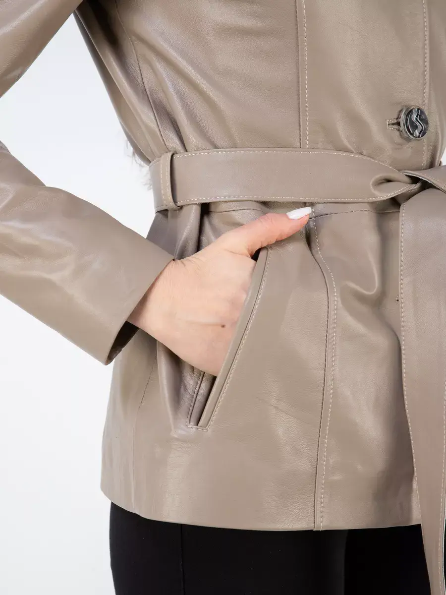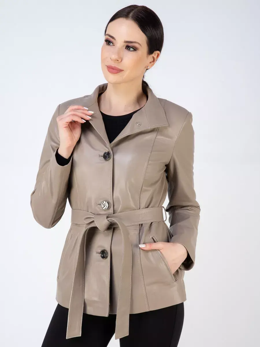 Эстетичная короткая куртка женская осенняя - весенняя сшита из плотной и мягкой, непромокаемой натуральной кожи ягненка с гладкой фактурой. Изнутри куртка демисезонная женская отделана приятной к телу подкладкой из полиэстера. Стильная кожанка дополнена воротником - стойкой, который можно носить как отложной, и длинным поясом, который делает изделие приталенным. Крутая межсезонная модель куртки с длинными рукавами застегивается на пуговицы и имеет два прорезных кармана по бокам с аккуратной тонкой обстрочкой. Это стильная модная кожаная куртка женская осень классика турецкого производства, которая станет хорошим выбором для осени и весны.