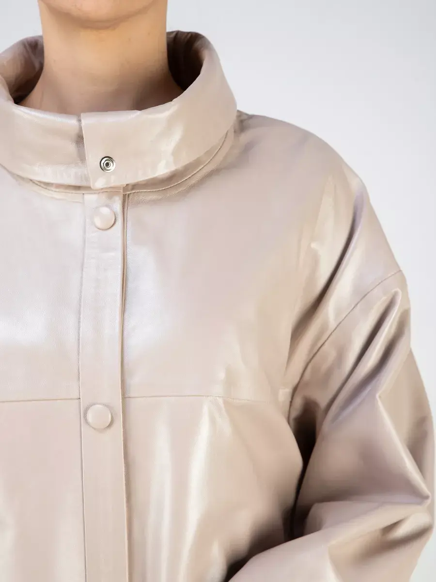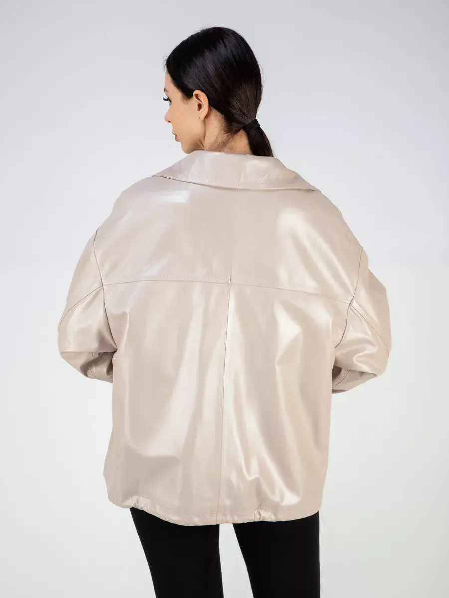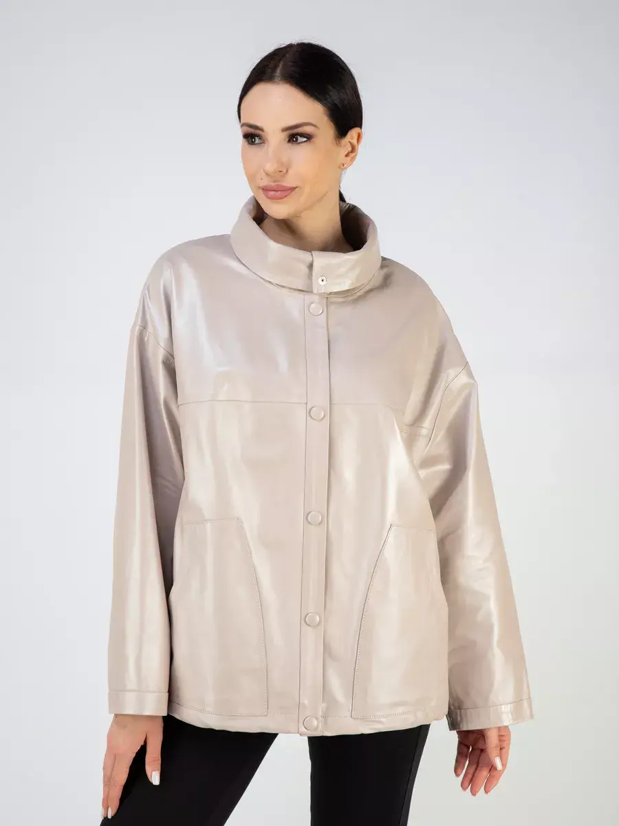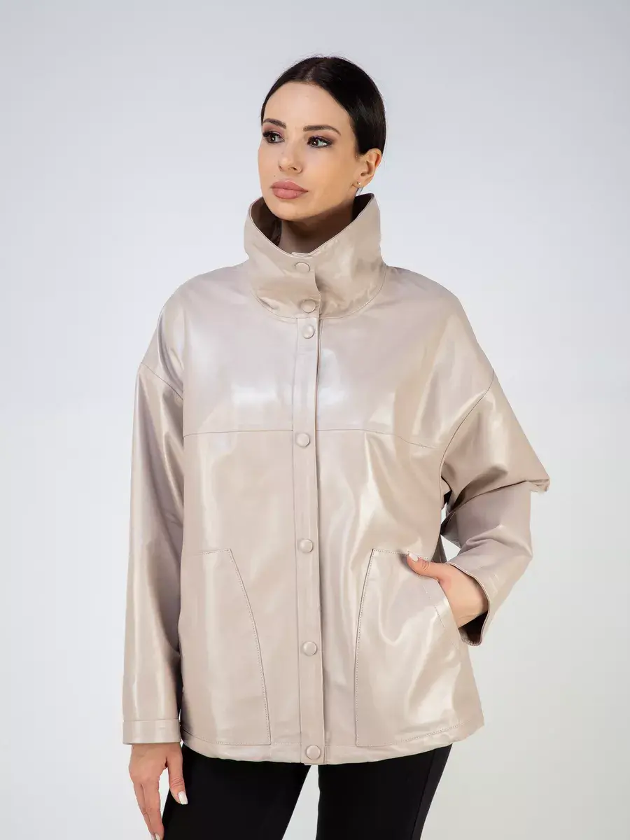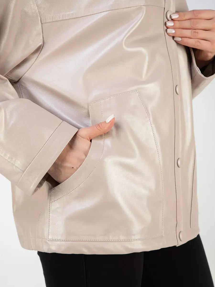 Каждая деталь этой кожаной куртки выполнена с особым вниманием к качеству материалов. Изысканный материал, ровные швы, спущенная линия плеча, накладные карманы, свободные рукава и фурнитура добавляют акценты стиля и функциональности, делают эту женскую куртку универсальным элементом гардероба, который подходит практически под любой стиль, деловой или повседневный. Стильная застежка на декоративных кнопках в цвет кожи придаёт образу особый шарм. Объемный и высокий воротник стойка добавляет изюминку образу, делая его неповторимым.