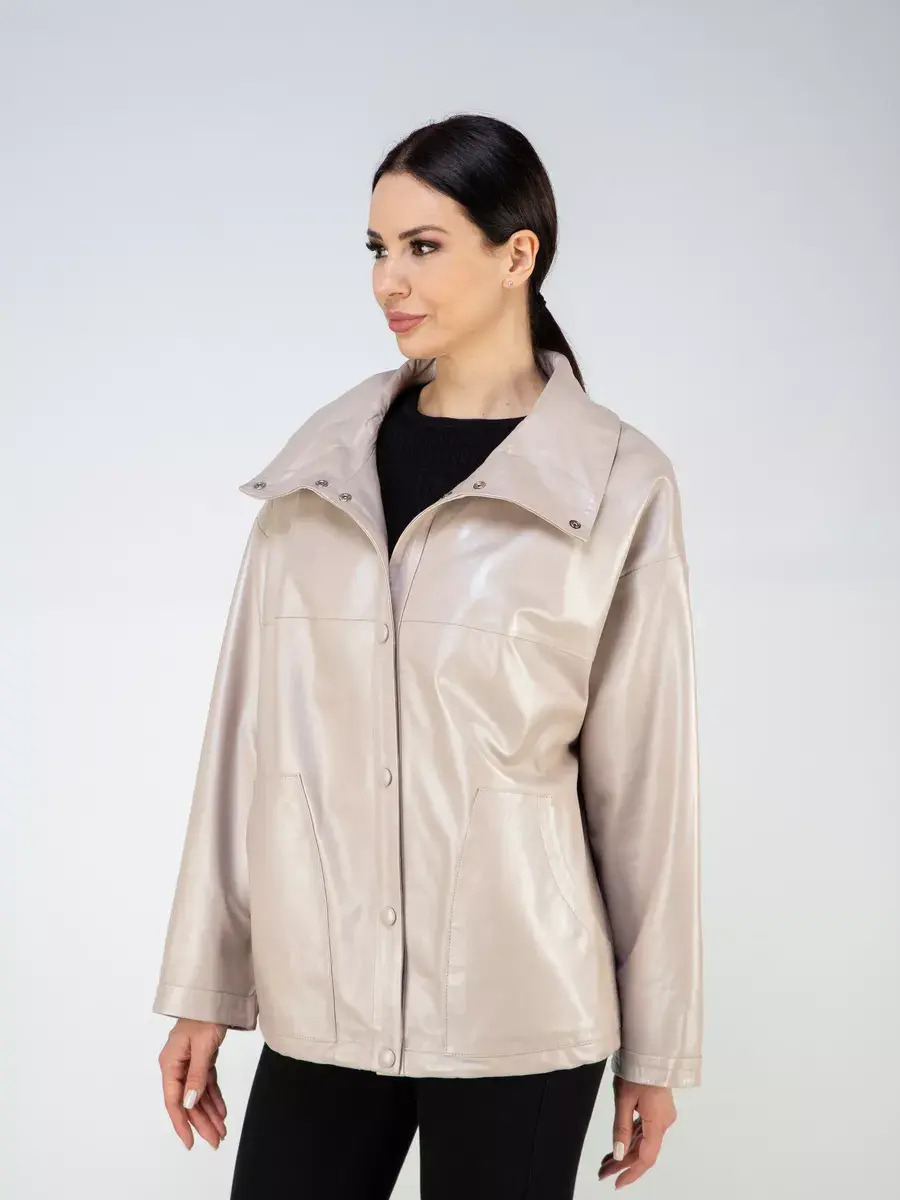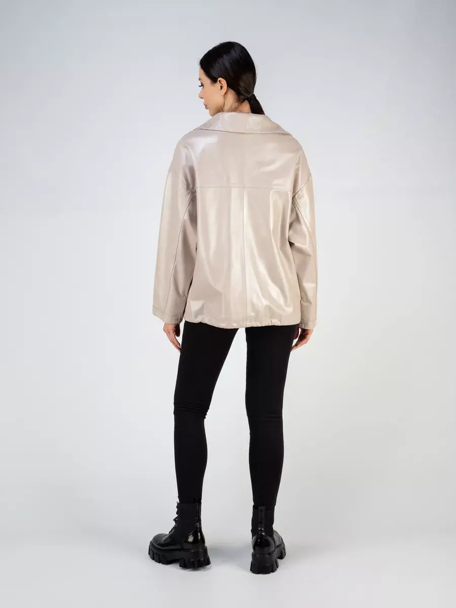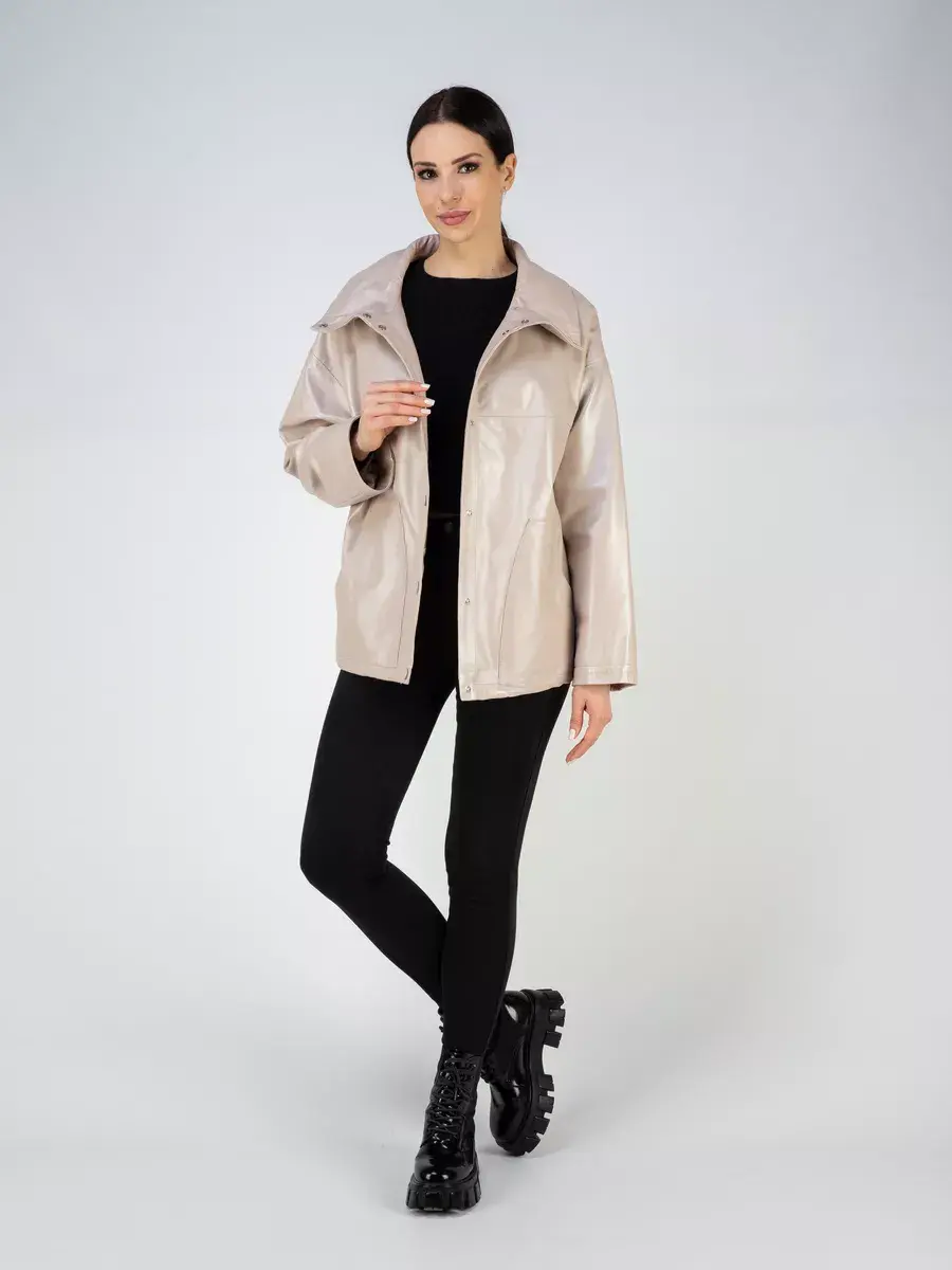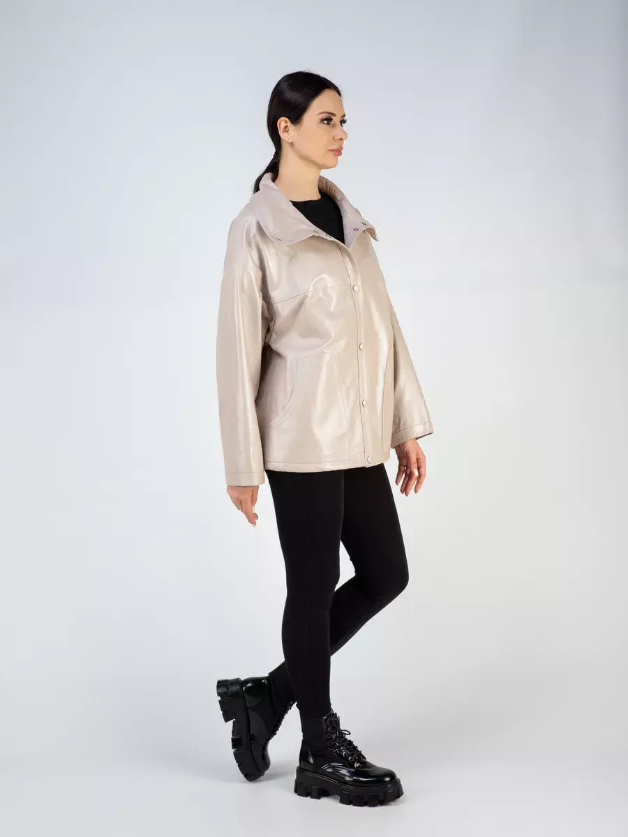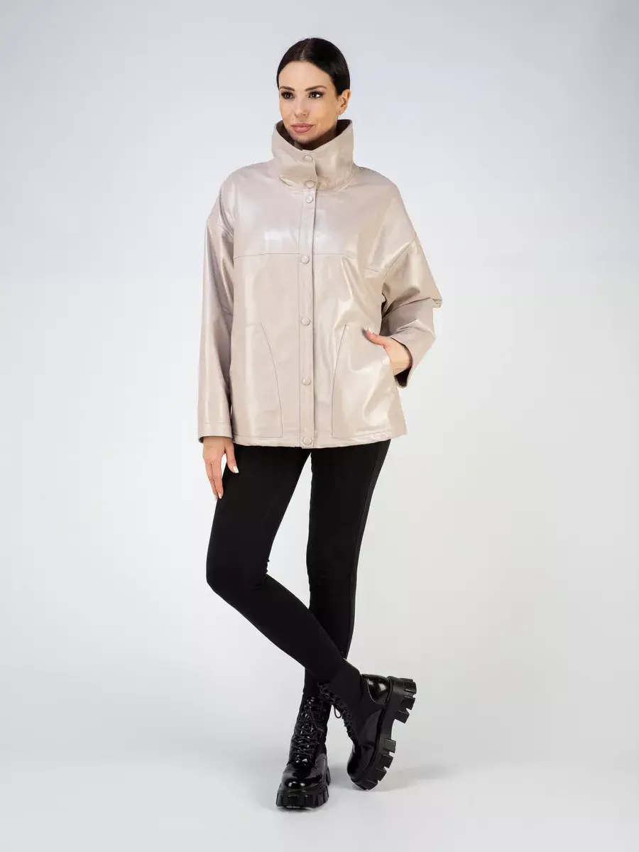 Каждая деталь этой кожаной куртки выполнена с особым вниманием к качеству материалов. Изысканный материал, ровные швы, спущенная линия плеча, накладные карманы, свободные рукава и фурнитура добавляют акценты стиля и функциональности, делают эту женскую куртку универсальным элементом гардероба, который подходит практически под любой стиль, деловой или повседневный. Стильная застежка на декоративных кнопках в цвет кожи придаёт образу особый шарм. Объемный и высокий воротник стойка добавляет изюминку образу, делая его неповторимым.