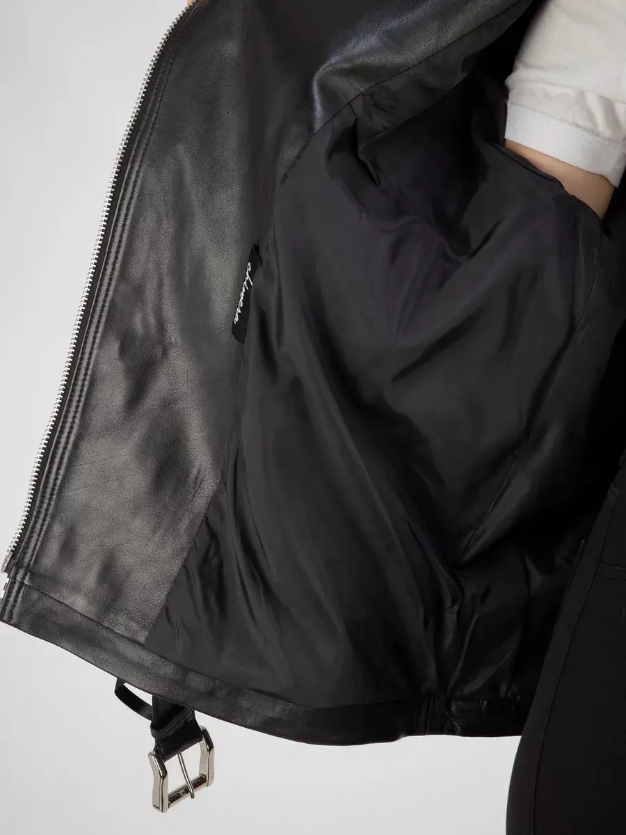 Классная курточка может быть использована как мотокуртка - она будет удобна для мотоспорта и станет настоящей находкой для автоледи. Крутая короткая модель, выполненная из непромокаемой и водоотталкивающей кожи премиум - качества, идеальна для межсезонья. Она дает отличную защиту от дождя и ветра и актуальна для весны и осеннего сезона, а также прохладной летней погоды.