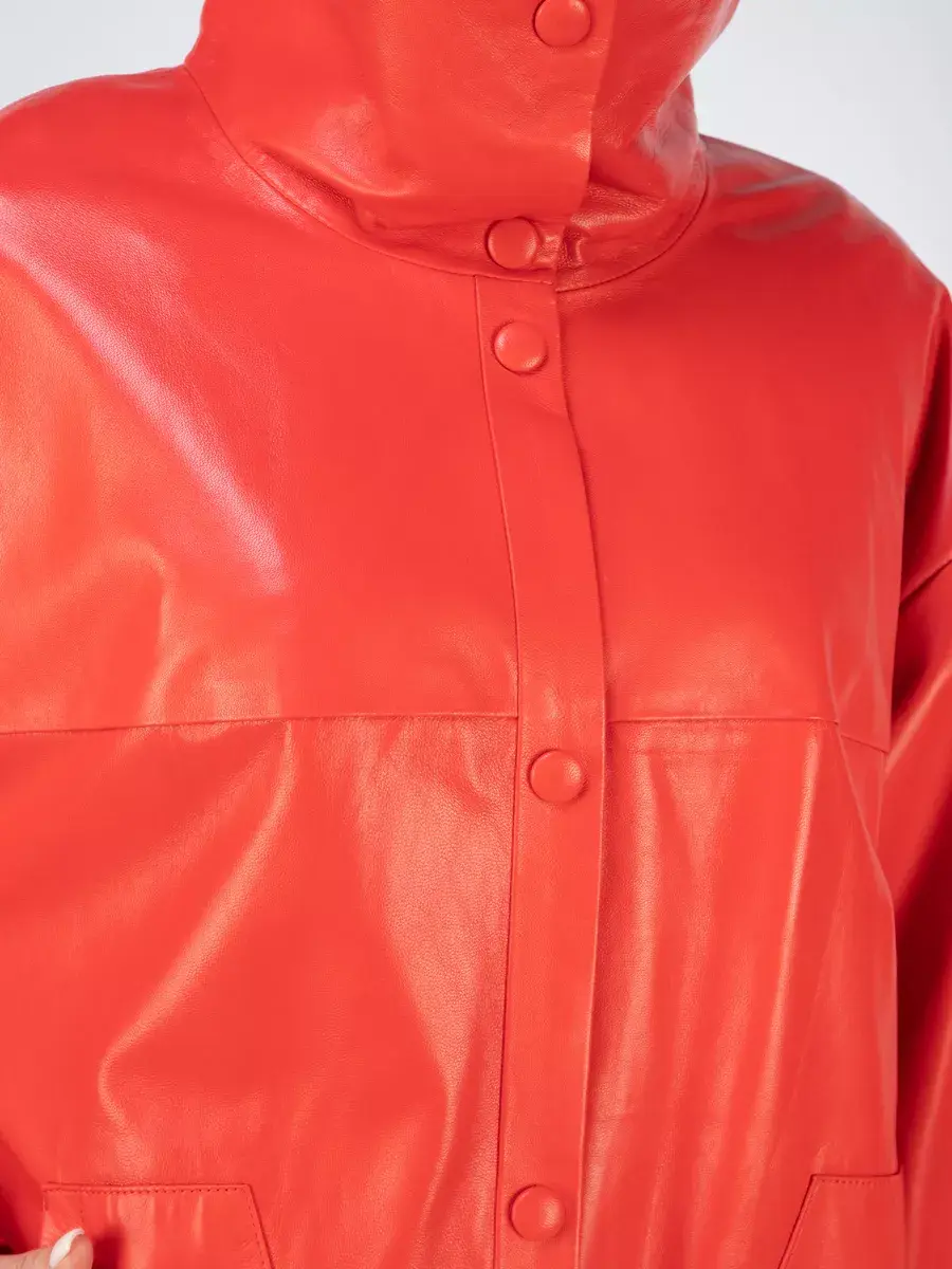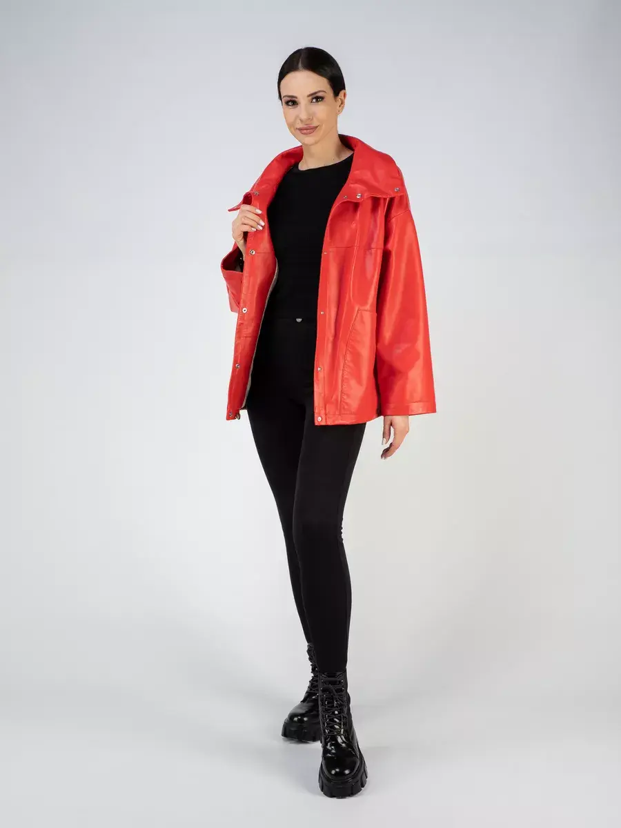 Элегантная демисезонная кожаная куртка бренда MONDIAL в стиле оверсайз с застежкой на кнопках - это классическая и стильная вещь, которая станет отличным выбором верхней одежды для весны и осени. Натуральная кожа премиум - качества, тонкая, легкая и мягкая тканевая подкладка, удлиненный силуэт, высокий воротник - стойка, который можно носить как отложной, спущенная линия плеч и свободный прямой крой делают ее модной, стильной и многофункциональной.