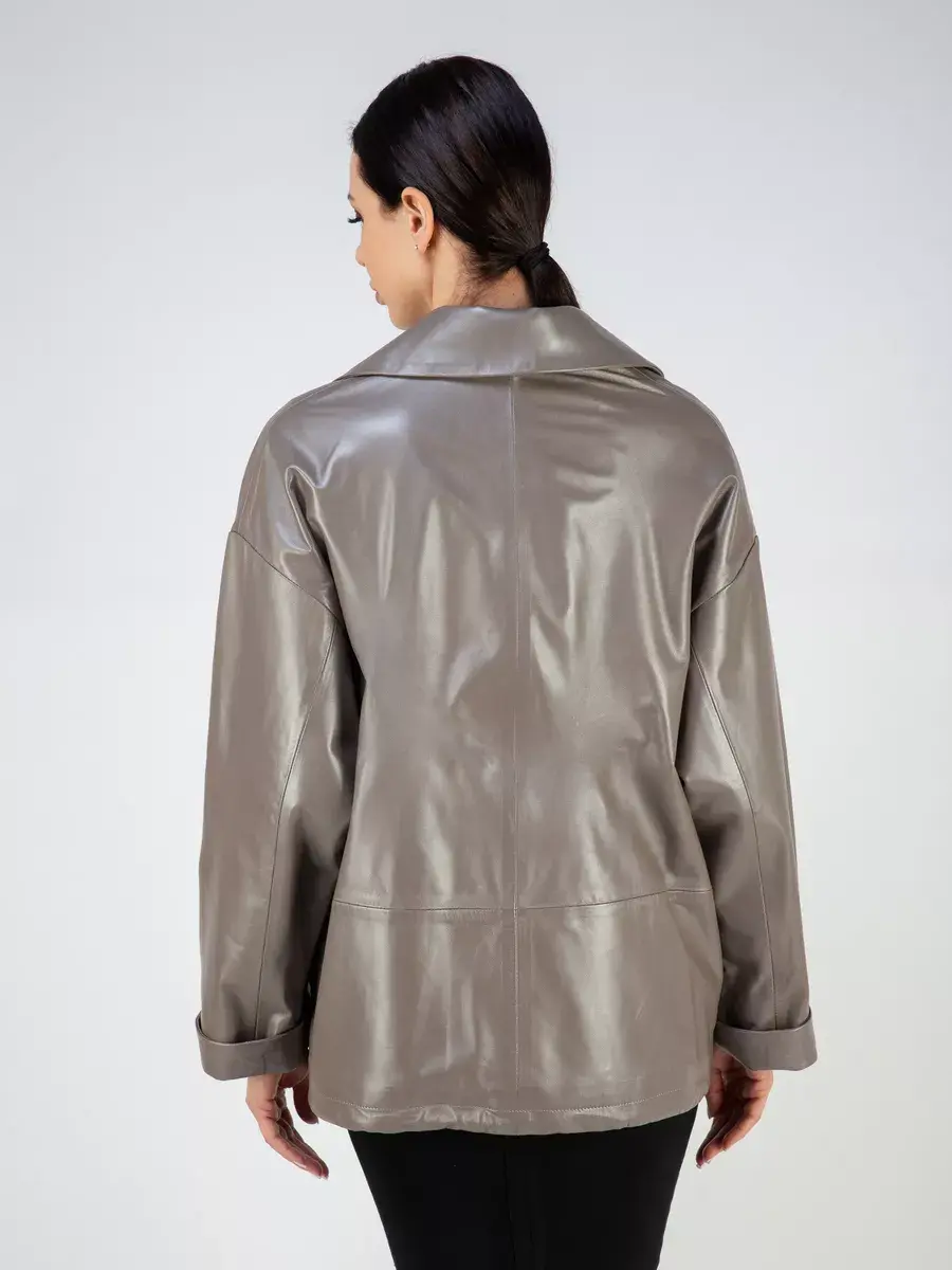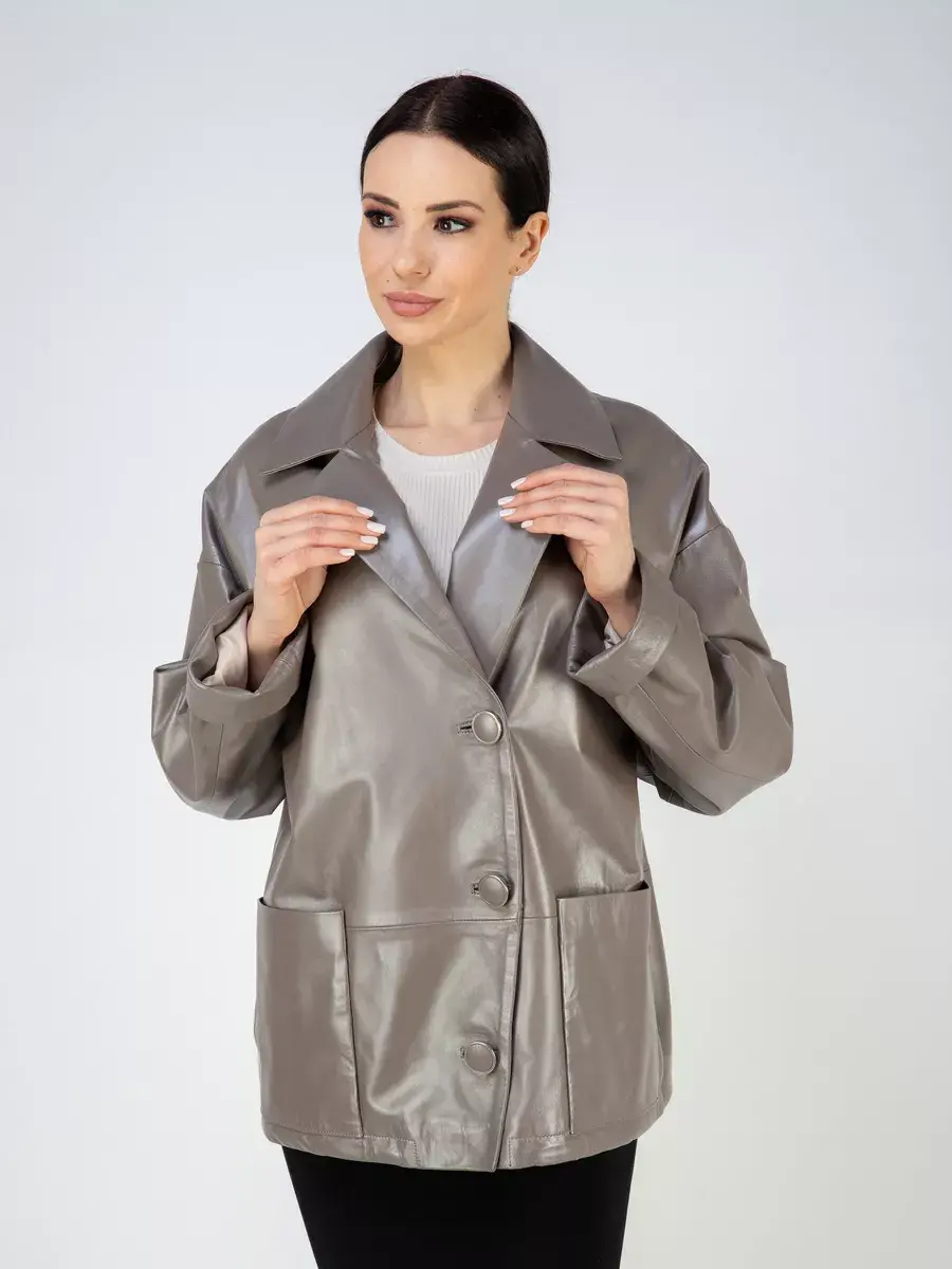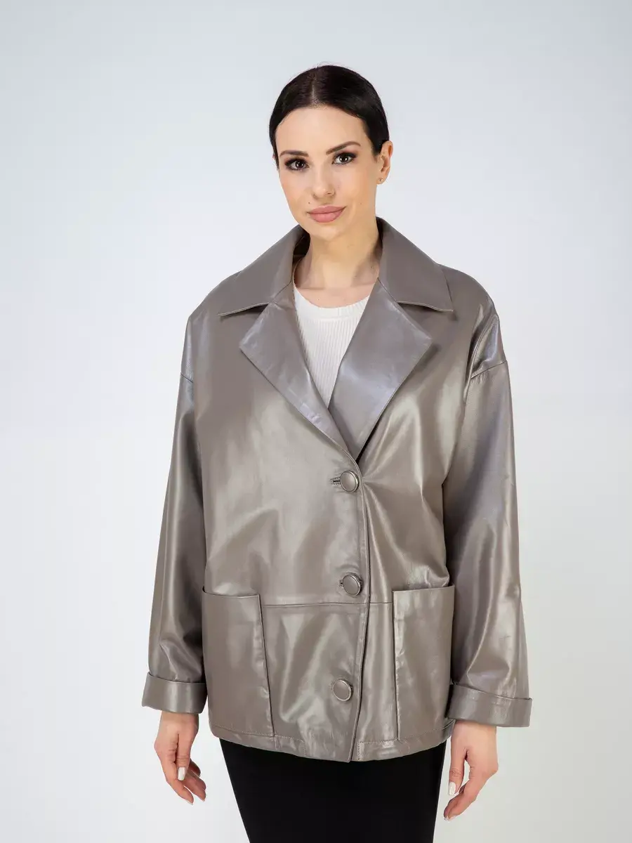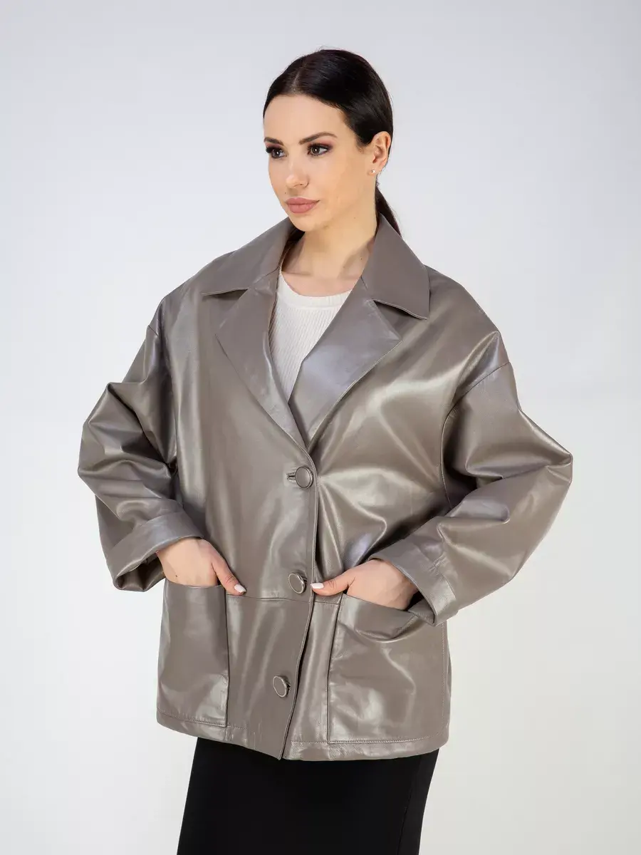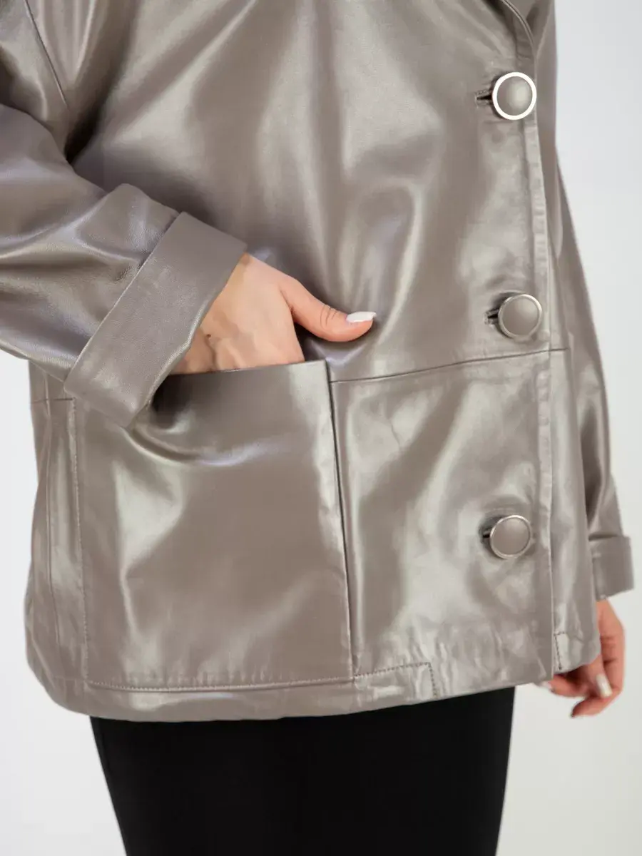 Каждая деталь этой кожаной куртки выполнена с особым вниманием к качеству материалов. Спущенная линия плеча, ровные швы и свободный - оверсайз крой делают эту женскую куртку универсальным элементом гардероба, который подходит практически под любой стиль, деловой или повседневный. Классический английский воротник добавляет изюминку образу, делая его неповторимым. Застежка на пуговицах, накладные карманы - все это приятные детали образа женственности и шарма.