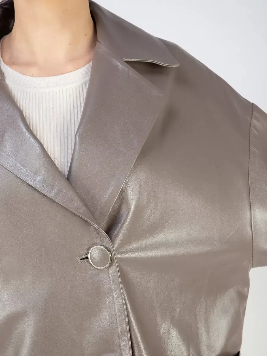 Необыкновенное сочетание элегантности и практичности делает этот блейзер женский, кожаный пиджак женский эксклюзивным элементом вашего гардероба.