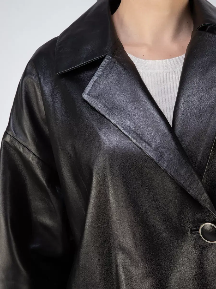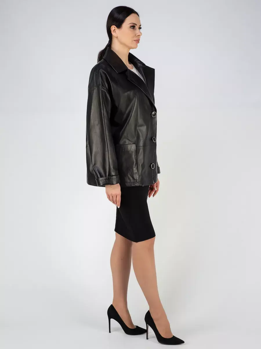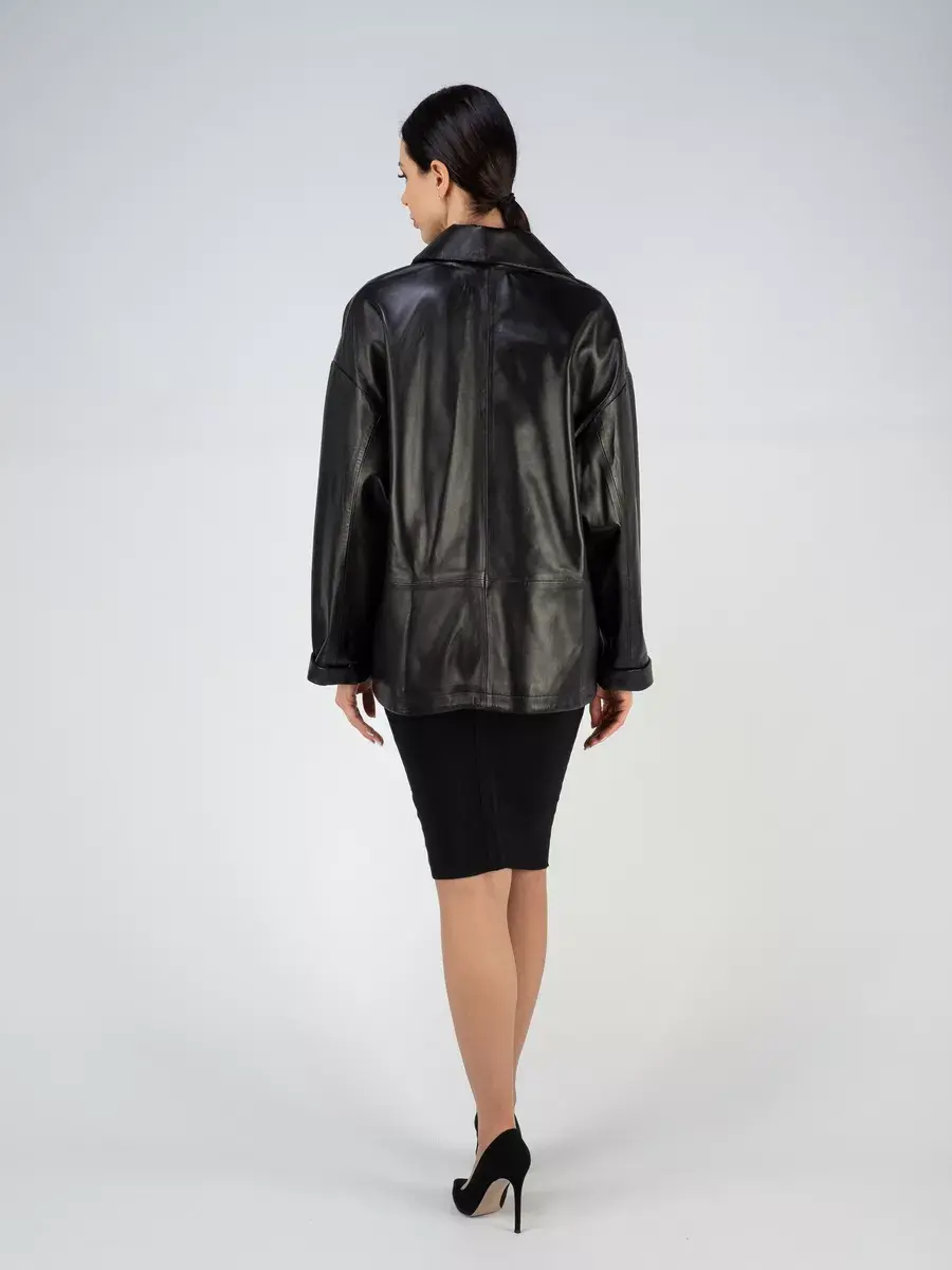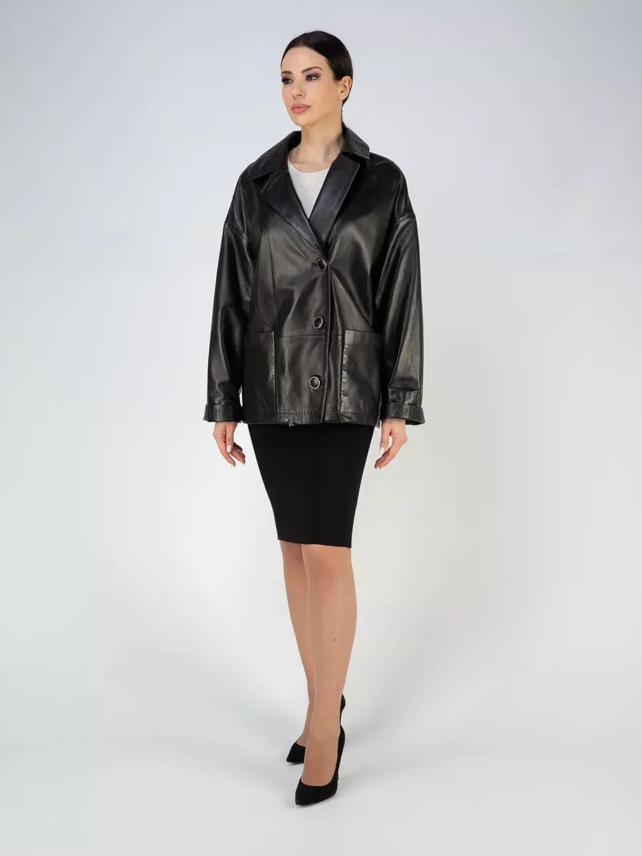 Каждая деталь этой кожаной куртки выполнена с особым вниманием к качеству материалов. Спущенная линия плеча, ровные швы и свободный - оверсайз крой делают эту женскую куртку универсальным элементом гардероба, который подходит практически под любой стиль, деловой или повседневный. Классический английский воротник добавляет изюминку образу, делая его неповторимым. Застежка на пуговицах, накладные карманы - все это приятные детали образа женственности и шарма.