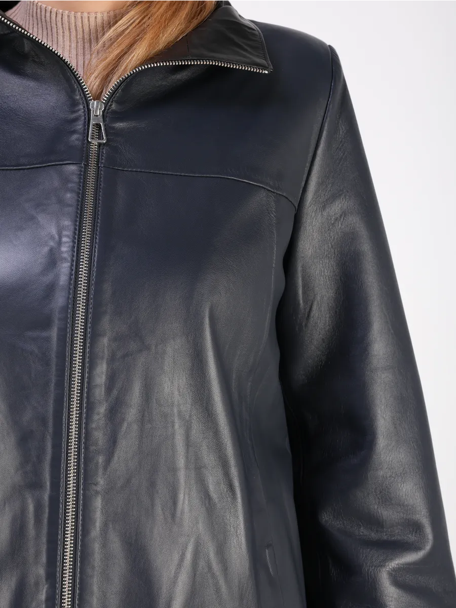 Каждая деталь этой кожаной куртки лето - весна выполнена с особым вниманием к качеству. Прорезные карманы по бокам и гладкая кожа добавляют акценты стиля и функциональности, делают эту удлиненную женскую куртку универсальным элементом гардероба, который подходит практически под любой стиль, деловой или повседневный. Свободный оверсайз крой, втачной объемный рукав и застежка на молнии обеспечивают этой демисезонной куртке комфорт и свободу движений.