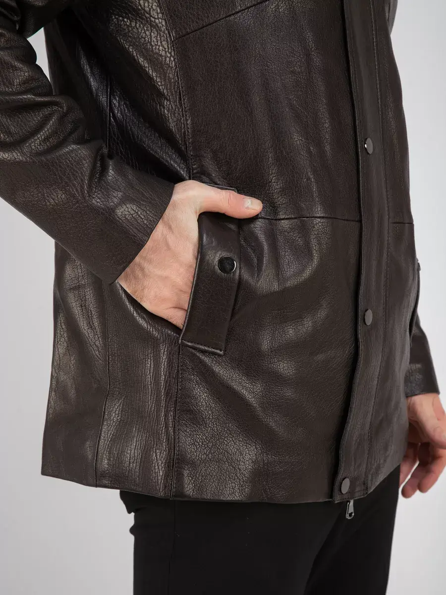 Эксклюзивная куртка мужская демисезонная из премиальной натуральной кожи ягненка позволит вам выразить свой неповторимый стиль и подчеркнуть индивидуальность. Удлиненная кожаная куртка мужская, полупальто изготовлена из высококачественной натуральной кожи выделки джумбо - фактурная кожа. Кожа плотная и мягкая, дольше сохраняет отличный внешний вид, износоустойчивая к царапинам и воздействию окружающей среды, поэтому идеально подходить для носки весной и осенью.