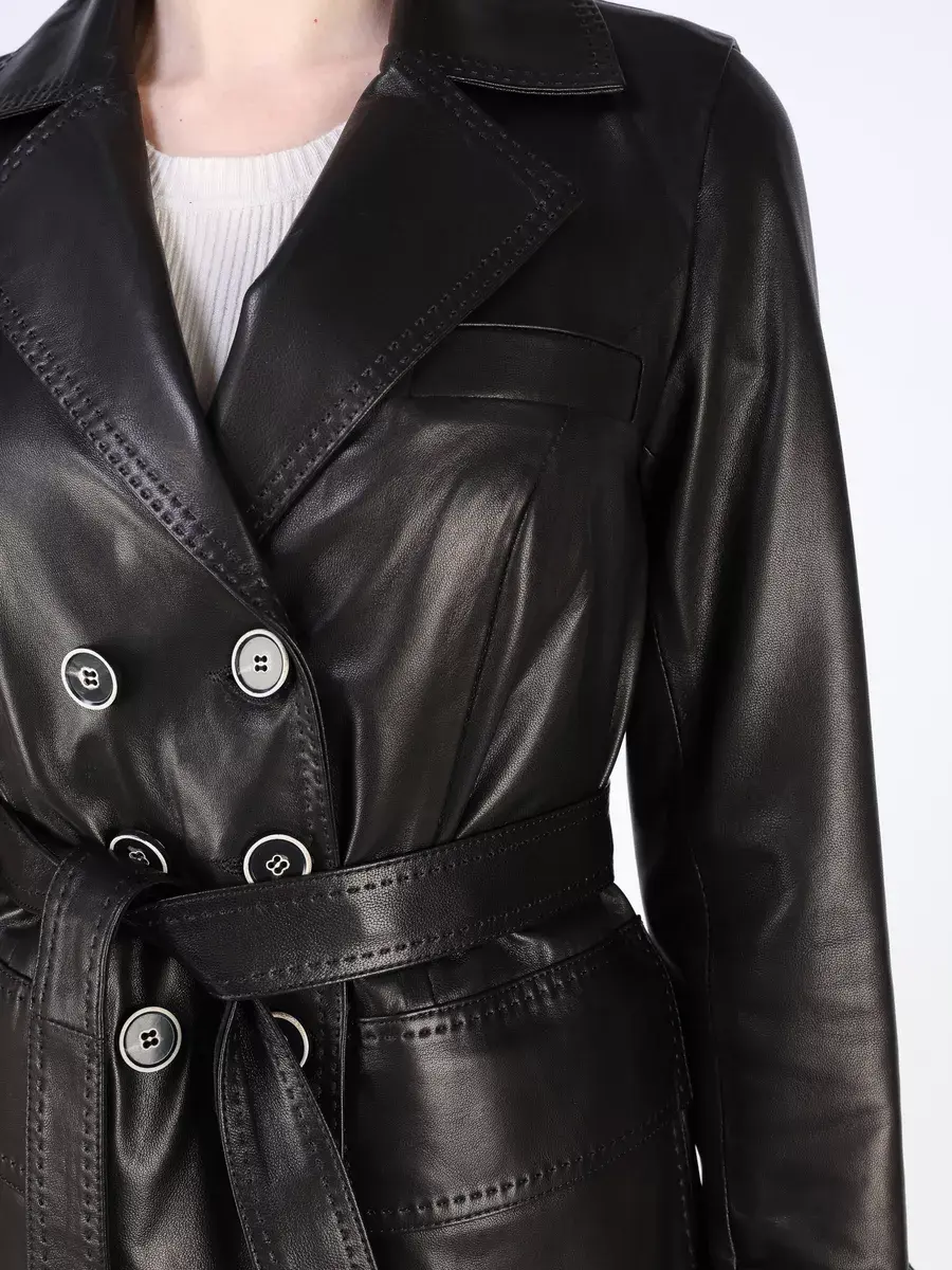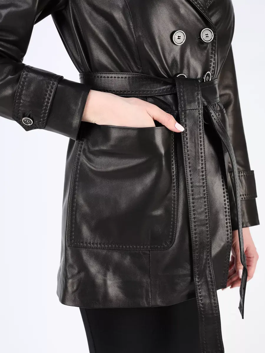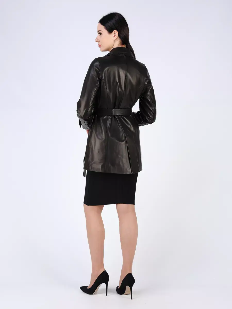 Каждая деталь этой кожаной куртки, пиджака выполнена с особым вниманием к качеству материалов. Втачной рукав с хлястиками, декоративные и ровные швы делают эту женскую куртку универсальным элементом гардероба, который подходит практически под любой стиль, деловой или повседневный. Классический английский воротник добавляет изюминку образу, делая его неповторимым. Двубортная застежка на модных пуговицах, накладные карманы и кожаный пояс - все это приятные детали образа женственности и шарма. Шлица придает изделию легкость движения.