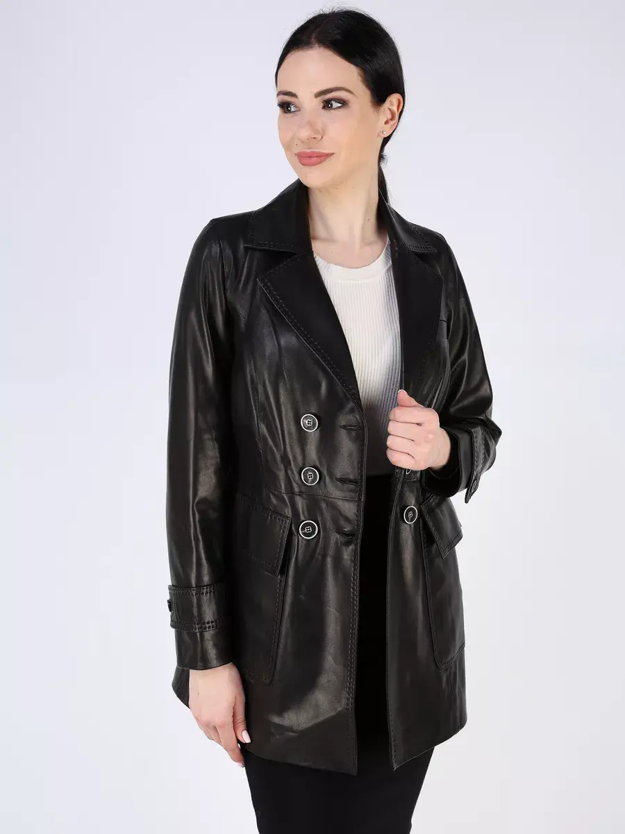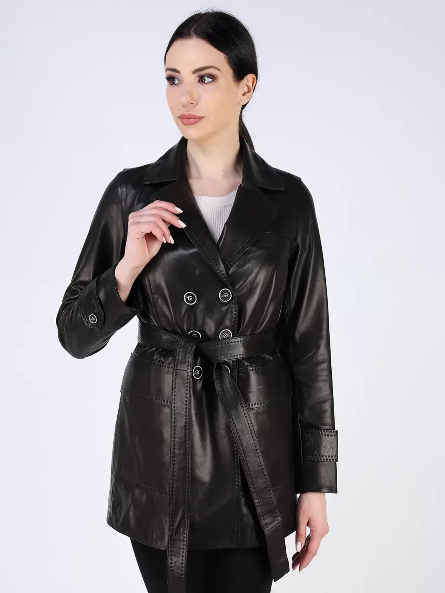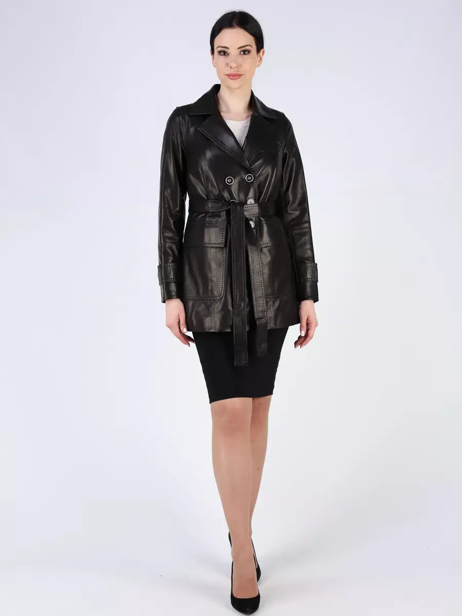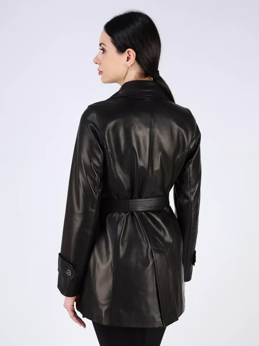 Каждая деталь этой кожаной куртки, пиджака выполнена с особым вниманием к качеству материалов. Втачной рукав с хлястиками, декоративные и ровные швы делают эту женскую куртку универсальным элементом гардероба, который подходит практически под любой стиль, деловой или повседневный. Классический английский воротник добавляет изюминку образу, делая его неповторимым. Двубортная застежка на модных пуговицах, накладные карманы и кожаный пояс - все это приятные детали образа женственности и шарма. Шлица придает изделию легкость движения.
