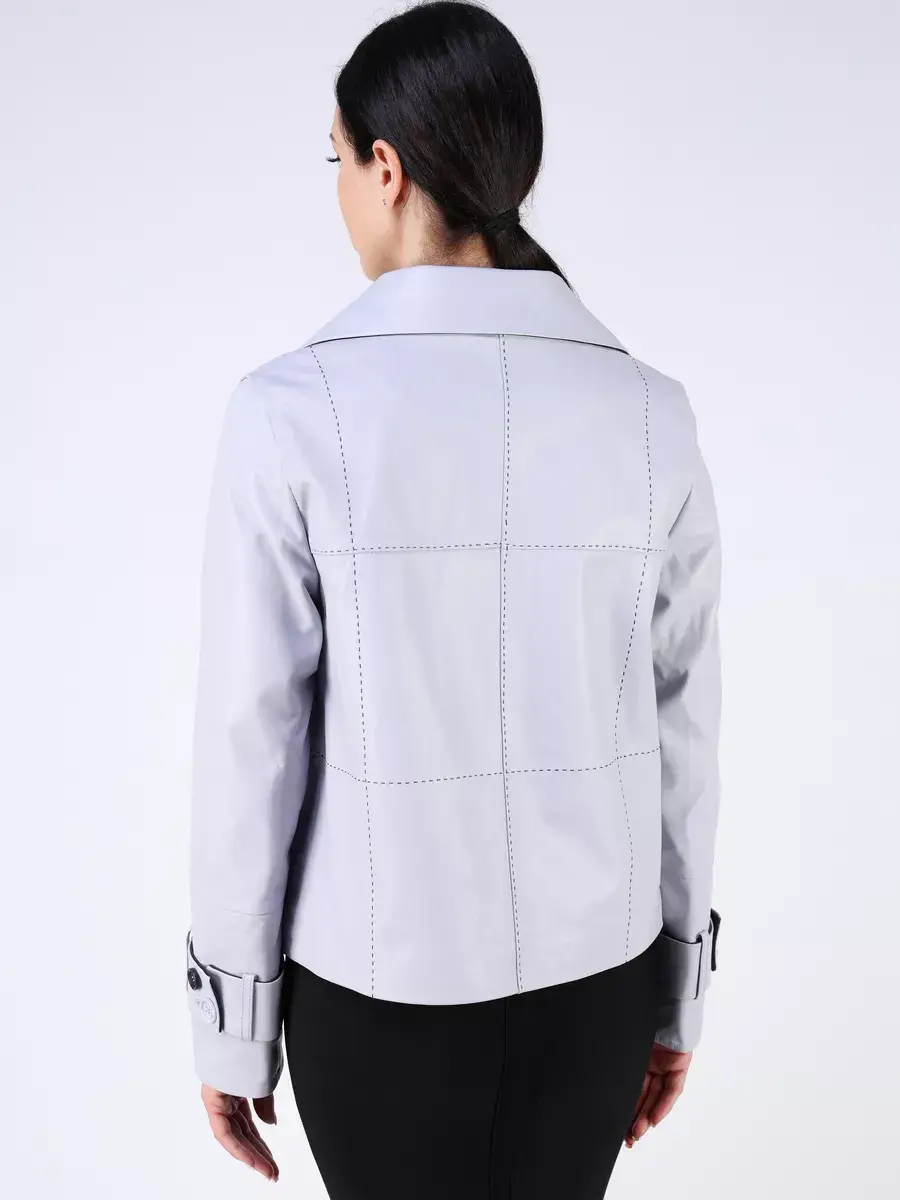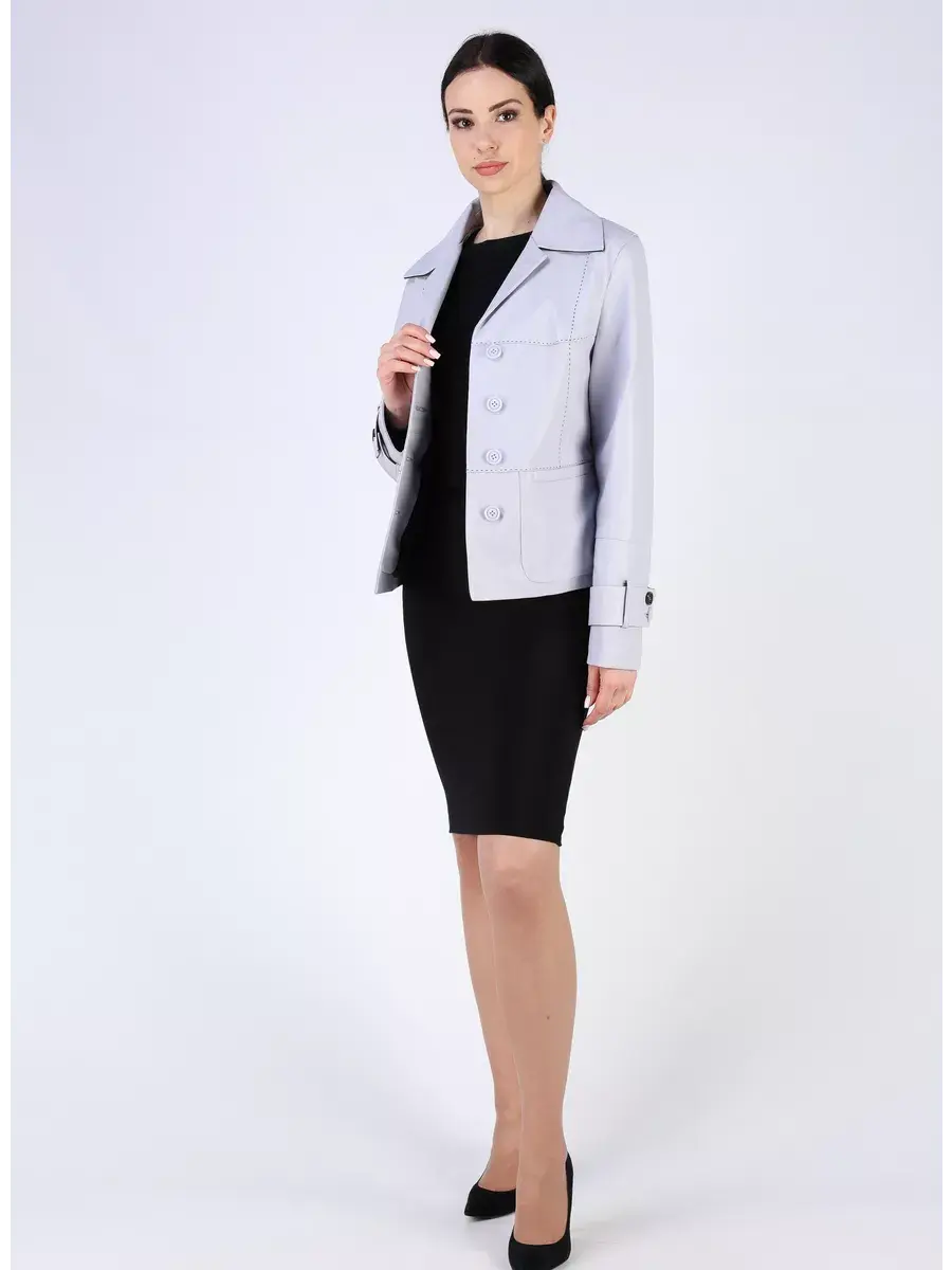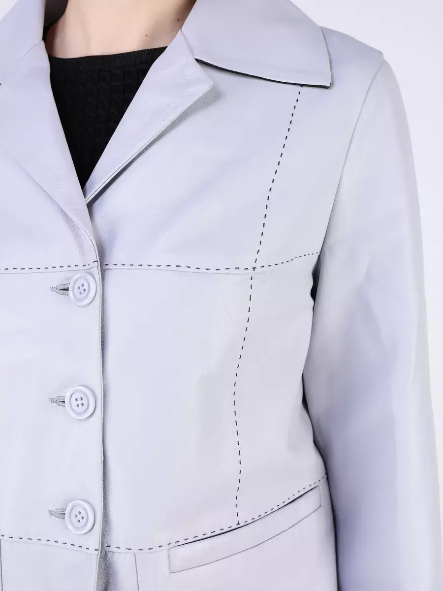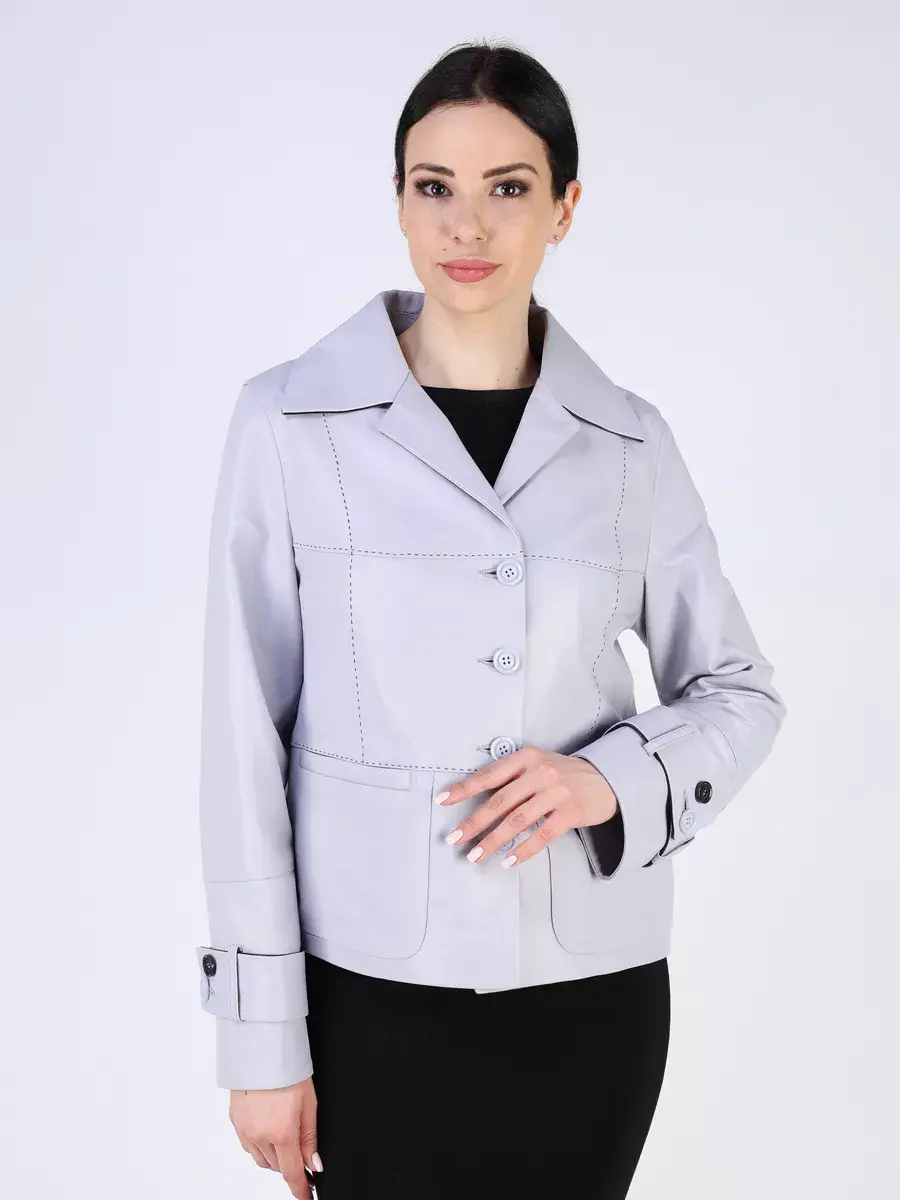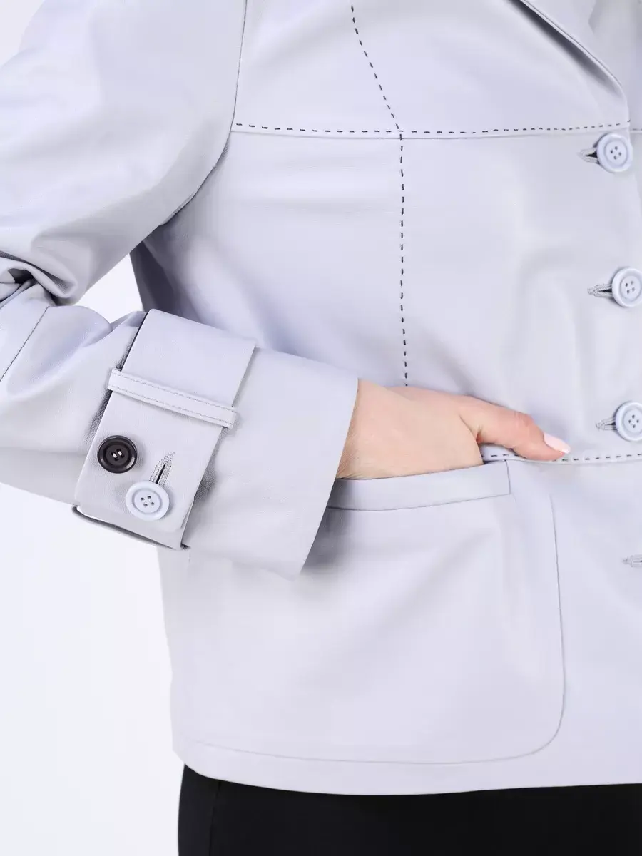 Каждая деталь этой кожаной куртки, пиджака выполнена с особым вниманием к качеству материалов. Втачной рукав с хлястиками на пуговицах, декоративные и ровные швы делают эту женскую куртку универсальным элементом гардероба, который подходит практически под любой стиль, деловой или повседневный. Классический английский воротник добавляет изюминку образу, делая его неповторимым. Застежка на модных пуговицах, прорезные карманы и прямой крой - все это приятные детали образа.