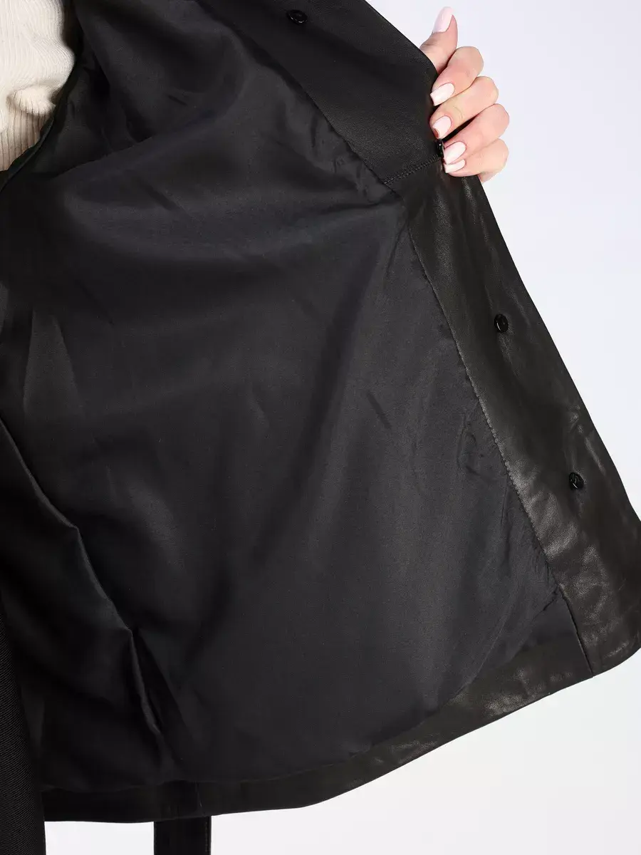 Стильная кожаная куртка женская осень - весна бренда Mondial из натуральной кожи ягненка - настоящая находка для стильных женщин, стремящихся выглядеть безупречно в любое время года, осенью или весной. Женская куртка кожаная весенняя и осенняя изготовлена из высококачественной натуральной кожи выделки плонже - кожа молодых овец, которая применяется для создания эксклюзивных модных коллекций верхней одежды. Кожа гладкая и очень прочная, легкая и надежная.