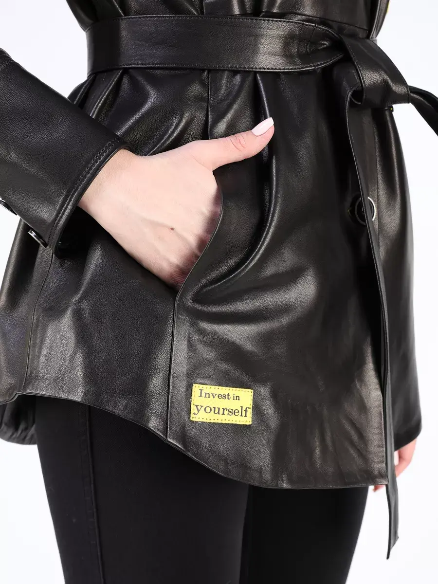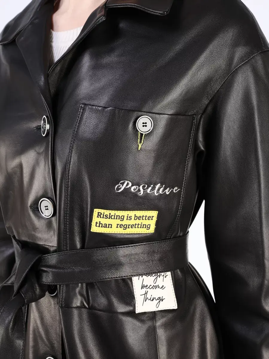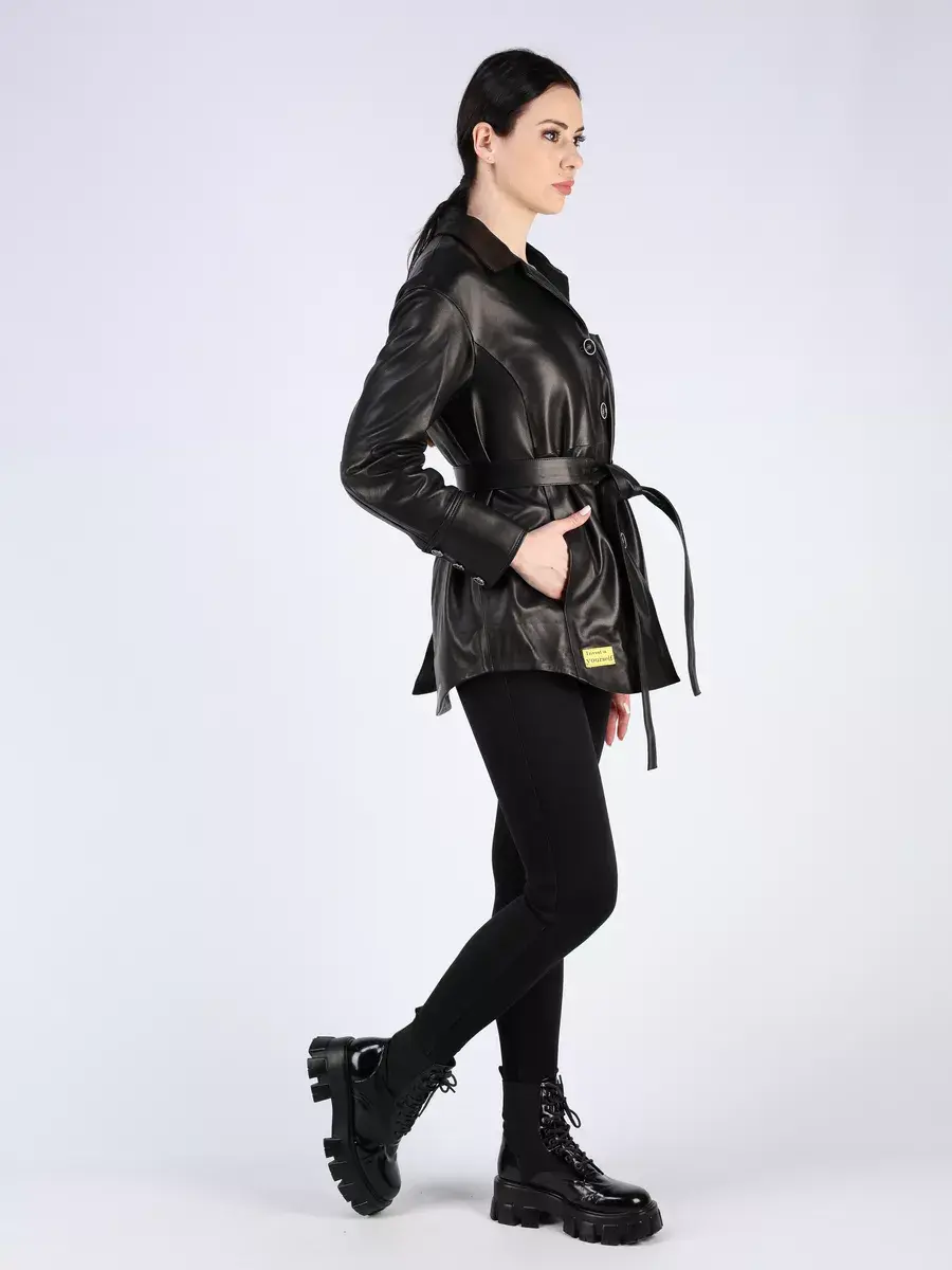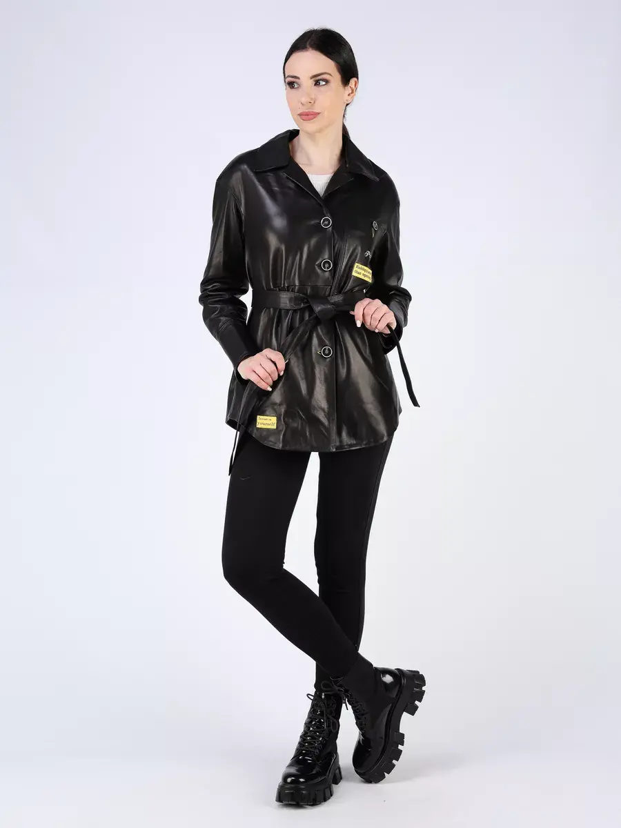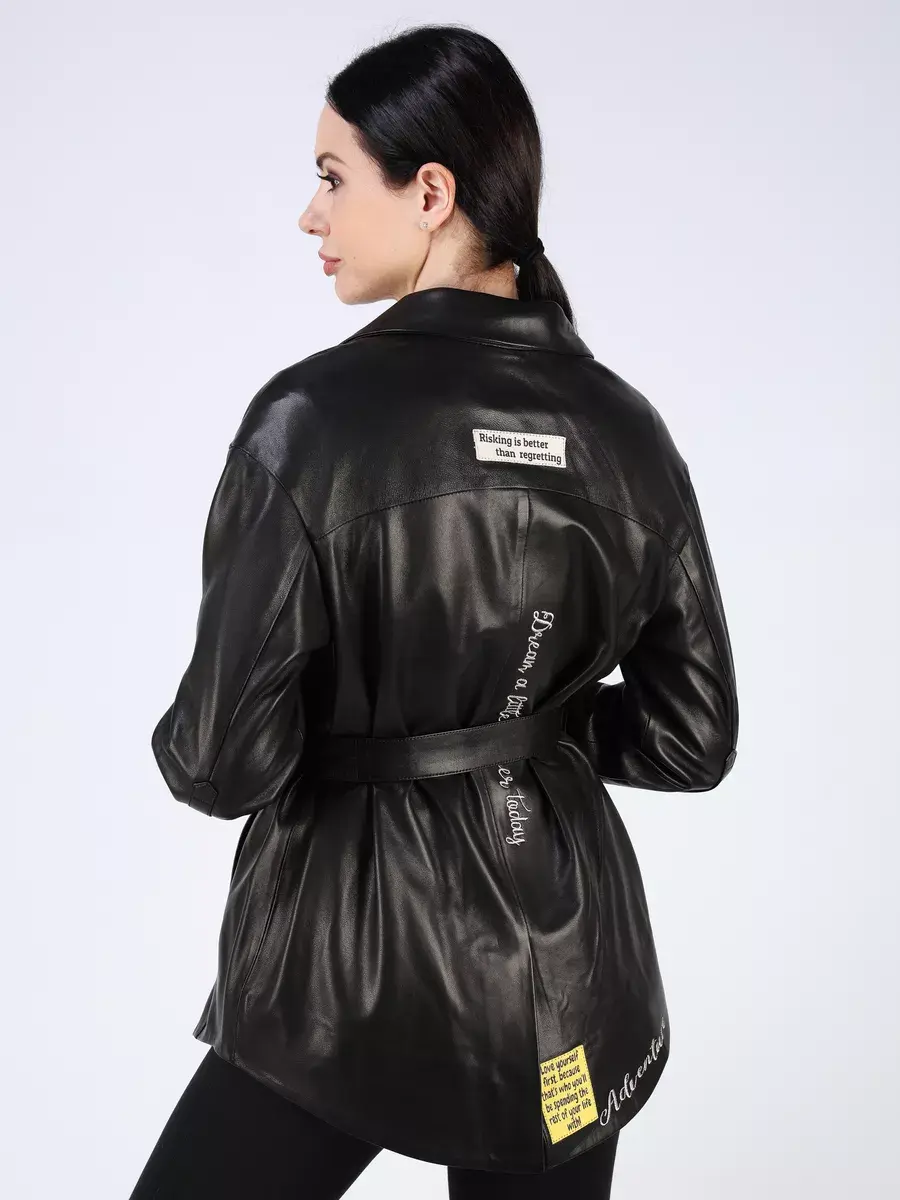 Каждая деталь этой кожаной куртки, рубашки из кожи выполнена с особым вниманием к качеству материалов. Изысканный материал, ровные швы, спущенная линия плеча, прорезные карманы, асимметричная подол и фурнитура, пуговицы и вставки добавляют акценты стиля и функциональности, делают эту женскую куртку универсальным элементом гардероба, который подходит практически под любой стиль, деловой или повседневный. Классический воротник, шлица и кожаный пояс обеспечивает неповторимый вид, а манжеты на пуговицах и вышивка дополняют оригинальный стиль.