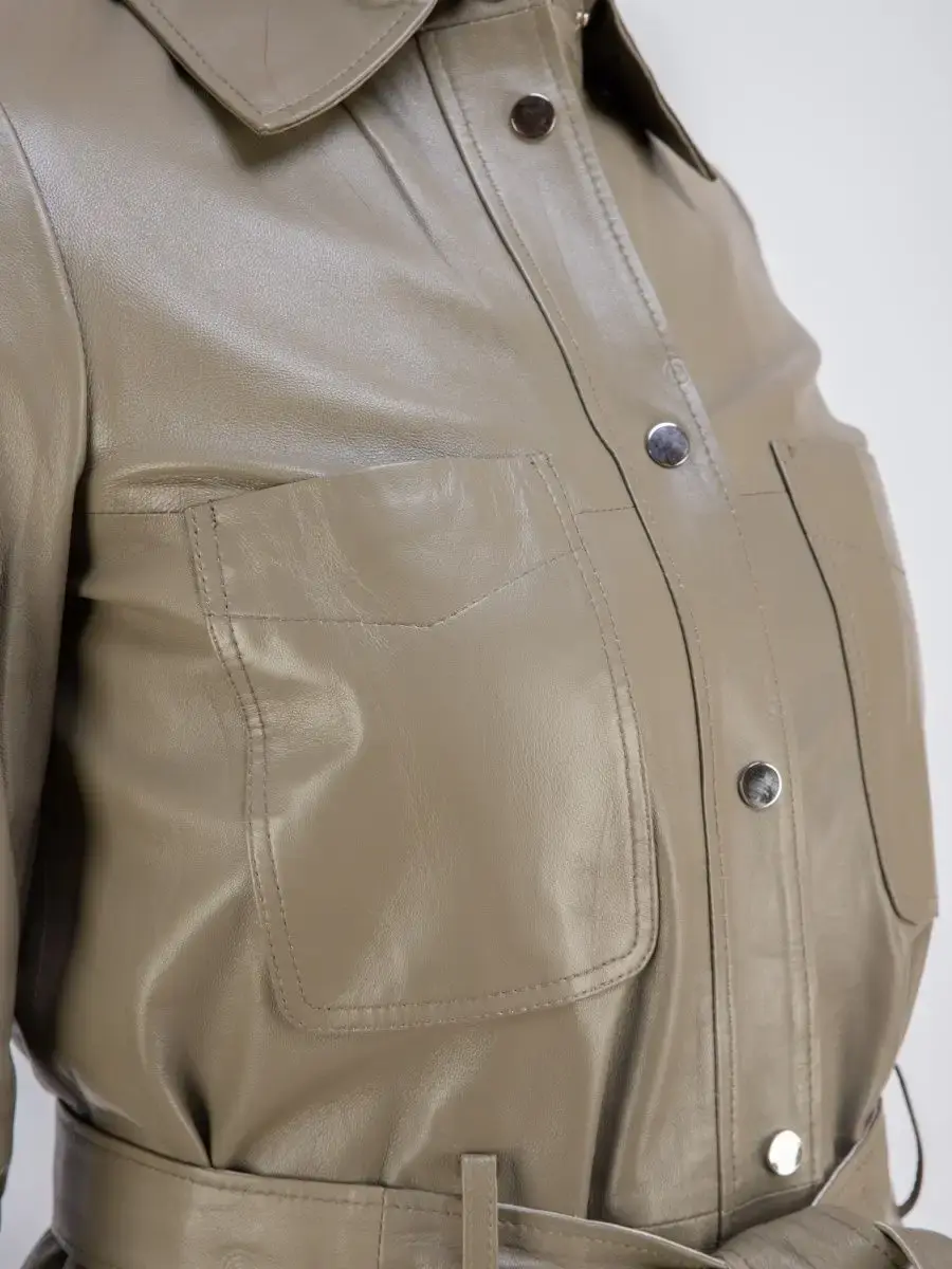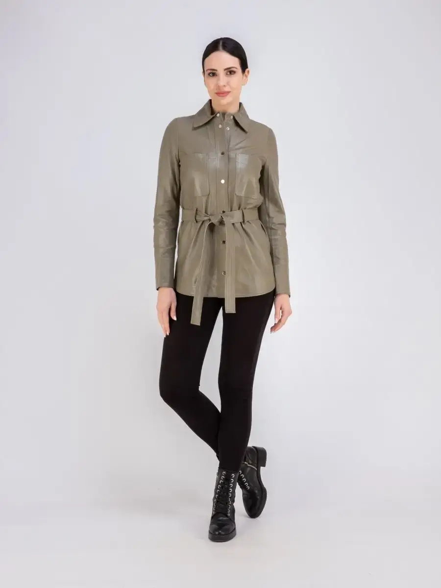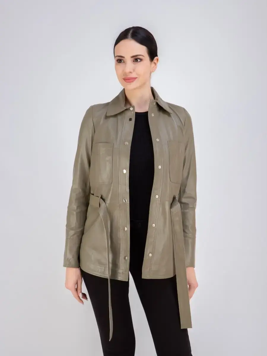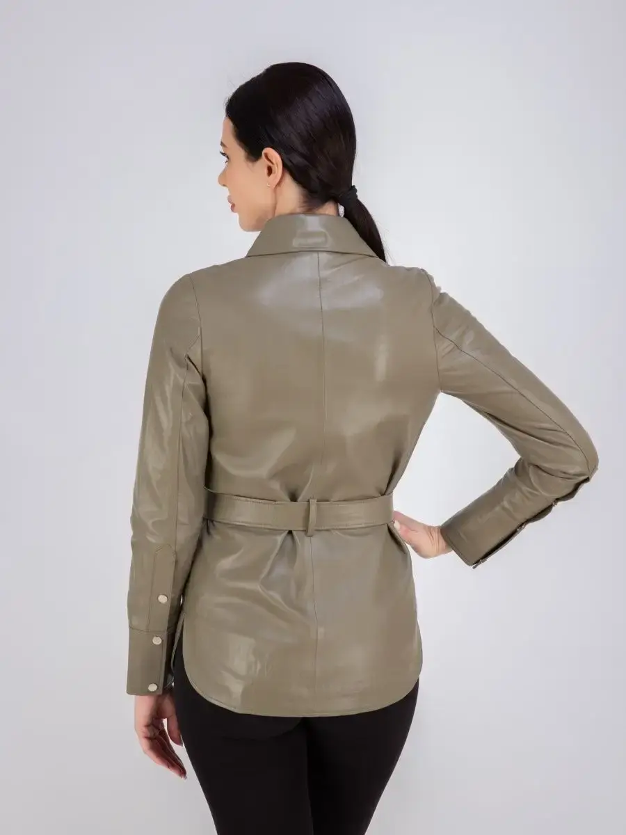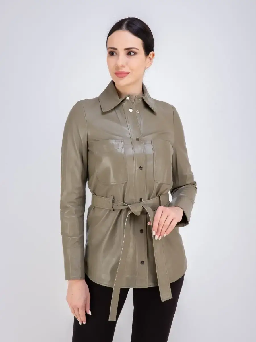 Кожаная куртка женская из натуральной кожи, рубашка женская кожаная идеальное решение для создания универсального гардероба. Стильная куртка женская из натуральной кожи демисезонная - рубашка женская выполнена из прочной и в то же время из мягкой и гладкой натуральной кожи ягненка. Куртка рубашка женская с застежкой на кнопках отличный вариант одежды на все случаи жизни, прекрасно подходить для холодных дней весной, осенью и летом. Куртка женская кожаная демисезонная, кожаная рубашка с манжетами на рукавах отличный вариант на каждый день и сочетается с различными вещами. Модные накладные карманы, рукав с манжетом на кнопках, воротник стойка - отложной, декоративнее разрезы по бокам делает эту рубашку изюминкой вашего гардероба, подчеркнет Вашу индивидуальность, как в повседневном гардеробе так и в вечернем! Кожаная куртка женская прекрасно впишется практически в любой стиль - повседневный, городской, офисный и вечерний. В комплекте кожаный ремень.