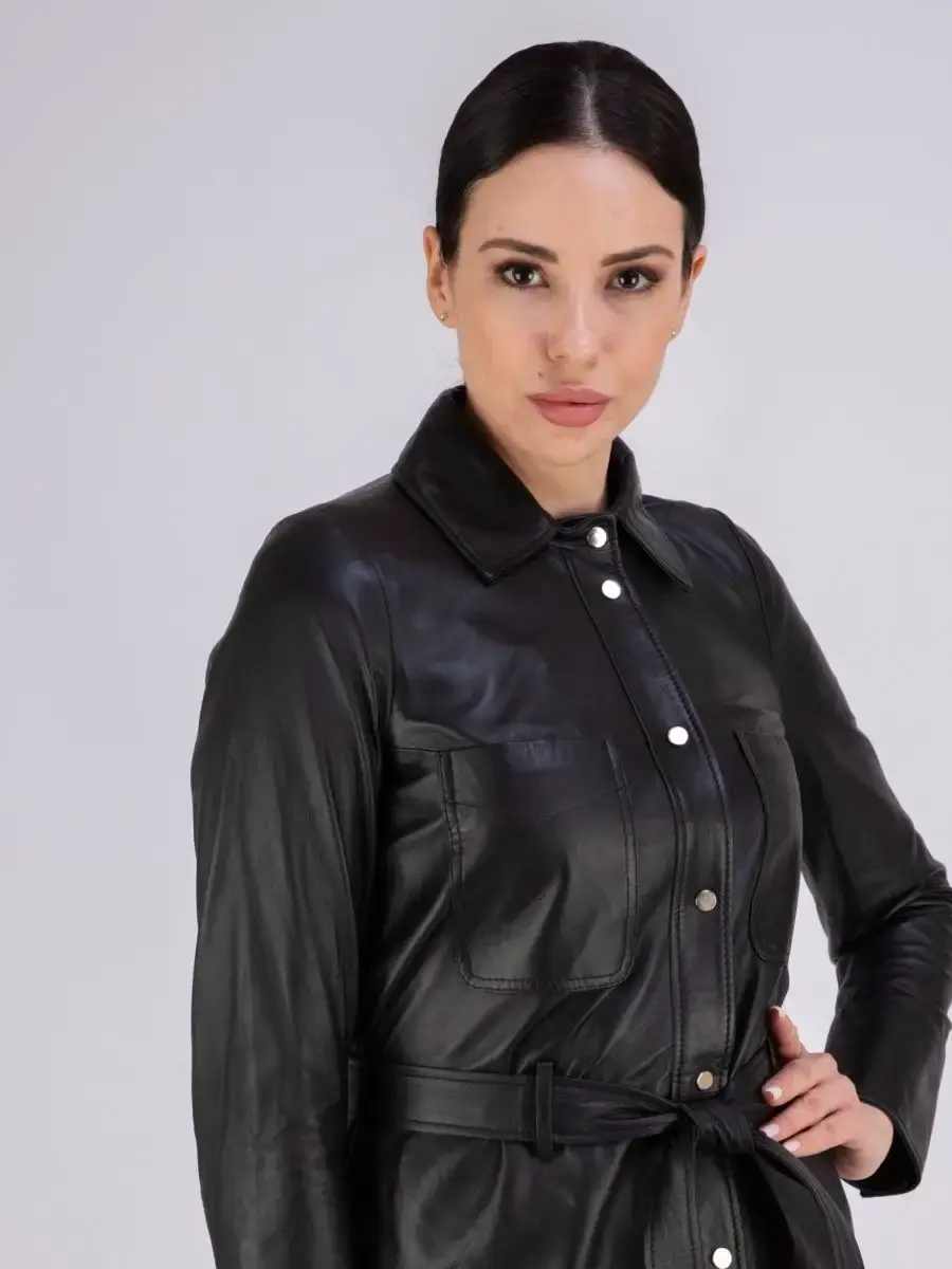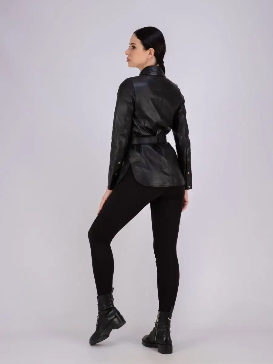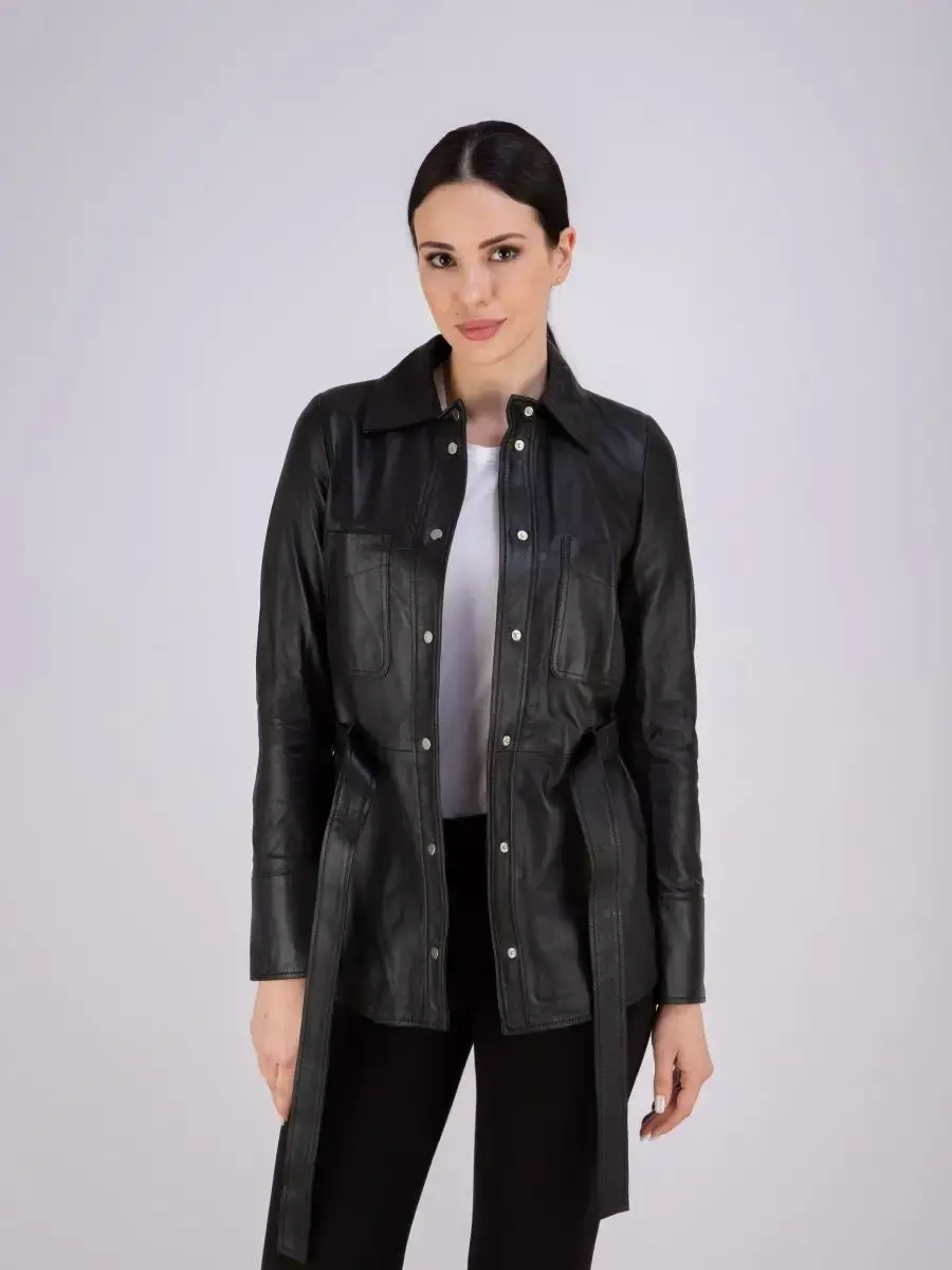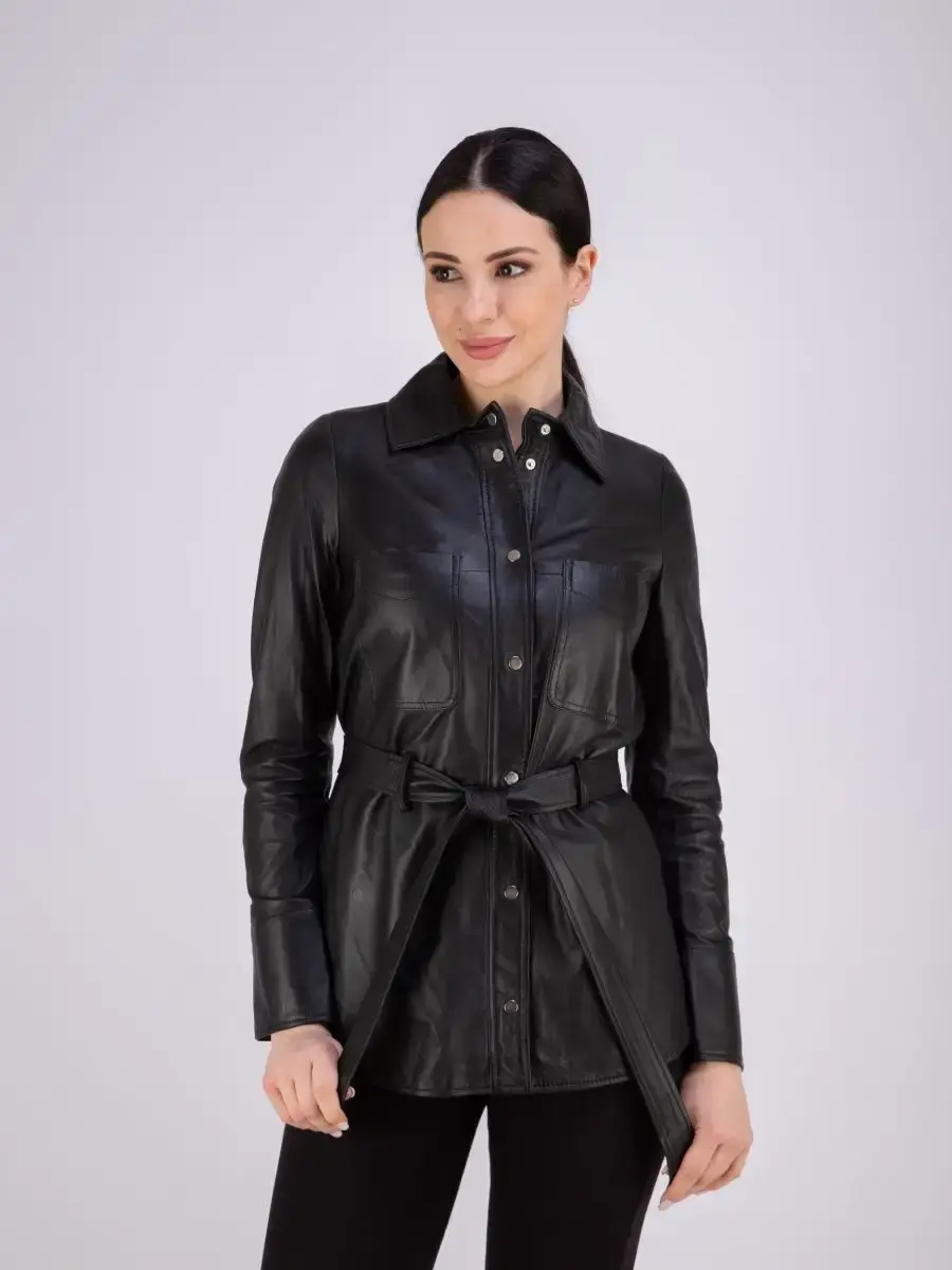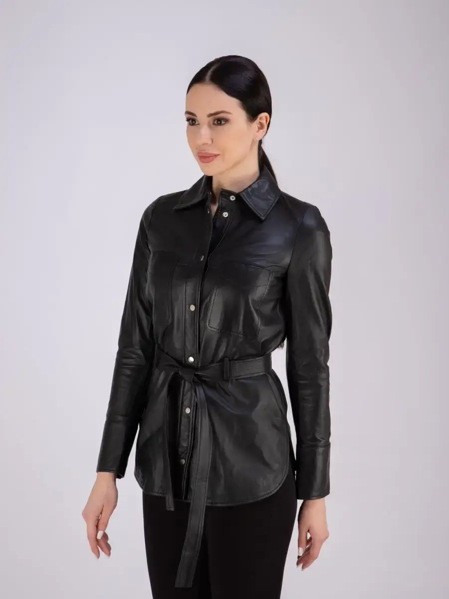 Кожаная куртка женская из натуральной кожи, рубашка женская кожаная идеальное решение для создания универсального гардероба. Стильная куртка женская из натуральной кожи демисезонная - рубашка женская выполнена из прочной и в то же время из мягкой и гладкой натуральной кожи ягненка. Куртка рубашка женская с застежкой на кнопках отличный вариант одежды на все случаи жизни, прекрасно подходить для холодных дней весной, осенью и летом. Куртка женская кожаная демисезонная, кожаная рубашка с манжетами на рукавах отличный вариант на каждый день и сочетается с различными вещами. Модные накладные карманы, рукав с манжетом на кнопках, воротник стойка - отложной, декоративнее разрезы по бокам делает эту рубашку изюминкой вашего гардероба, подчеркнет Вашу индивидуальность, как в повседневном гардеробе так и в вечернем! Кожаная куртка женская прекрасно впишется практически в любой стиль - повседневный, городской, офисный и вечерний. В комплекте кожаный ремень.