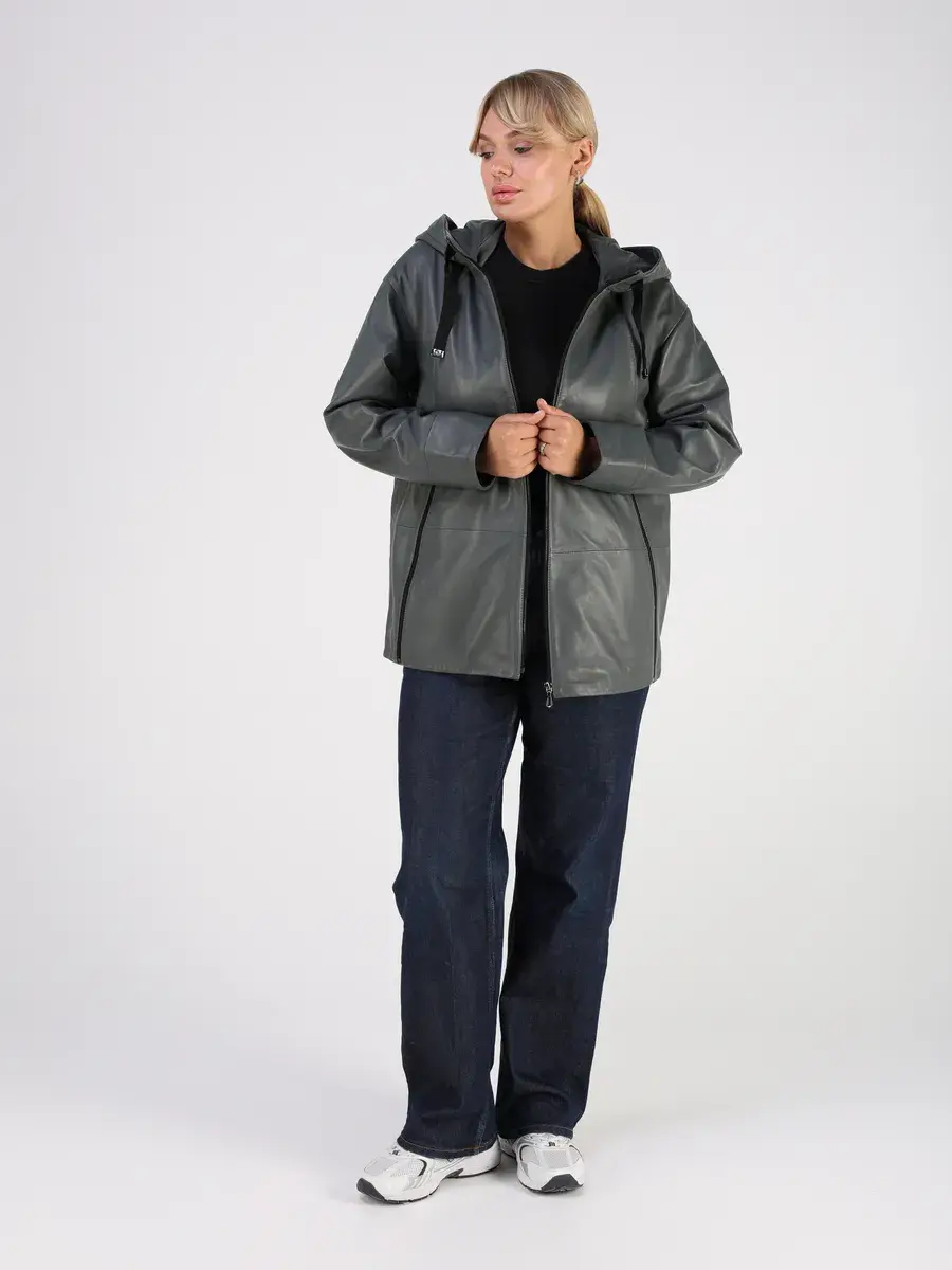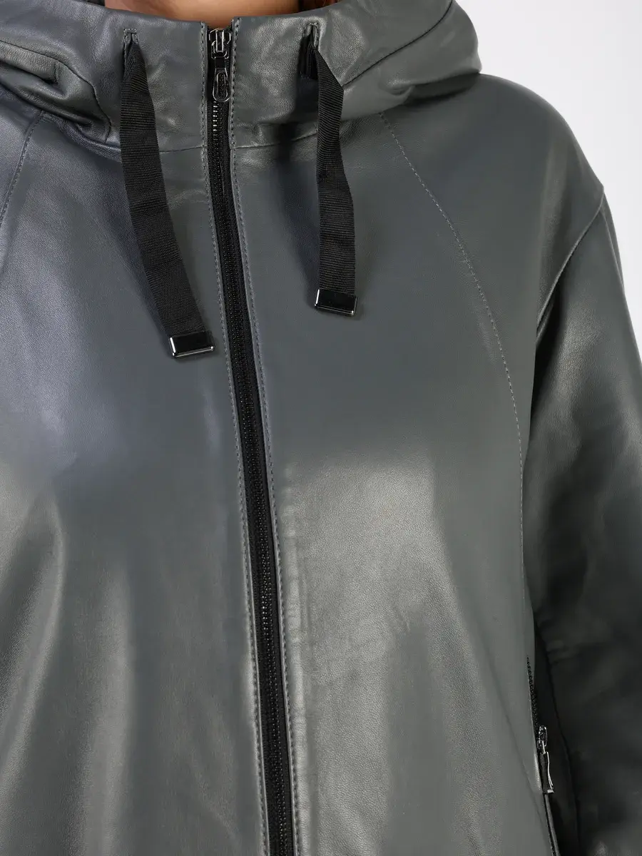 Стильная куртка демисезонная женская от MONDIAL из натуральной кожи станет незаменимым элементом вашего гардероба, обеспечит комфорт и защиту от ветра в прохладную погоду осенью и весной. Кожаная куртка осенняя женская с капюшоном выполнена из кожи ягнёнка, которая отличается высокой прочностью и долговечностью, сохраняя при этом свою мягкость и эластичность.