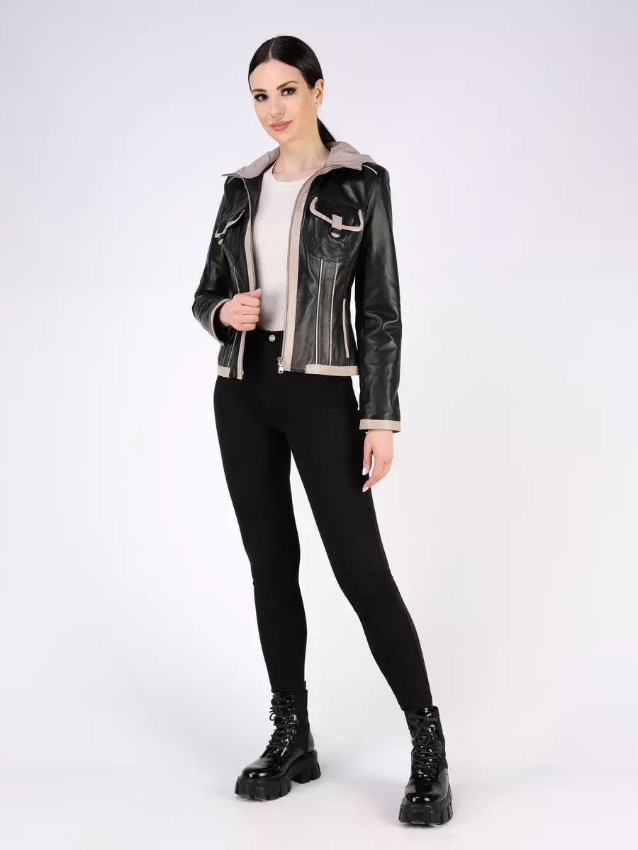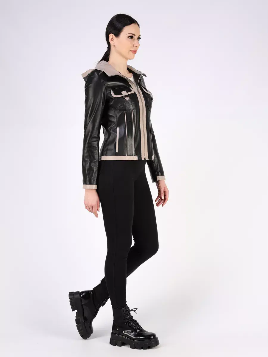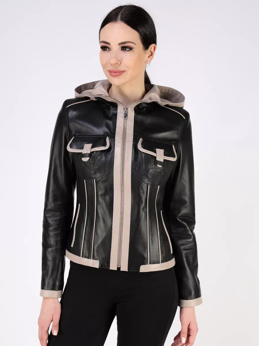 Каждая деталь этой кожаной куртки выполнена с особым вниманием к качеству материалов. Изысканный материал, ровные швы, втачной рукав, прорезные и накладные карманы и комбинация кожи разных цветов добавляют акценты стиля и функциональности, делают эту короткую женскую куртку с несъемным капюшоном универсальным элементом гардероба, который подходит практически под любой стиль, деловой или повседневный. Капюшон обеспечивает идеальную защиту от ветра и дождя, а также придает изделию современный спортивный вид для ходьбы в школу. Кроме того, короткий крой придает молодежный вид изделию. Куртка кожаная женская имеет застежку на молнии, что обеспечивает удобство при ношении. Женская куртка подчеркивает индивидуальность каждой девушки и женщины.