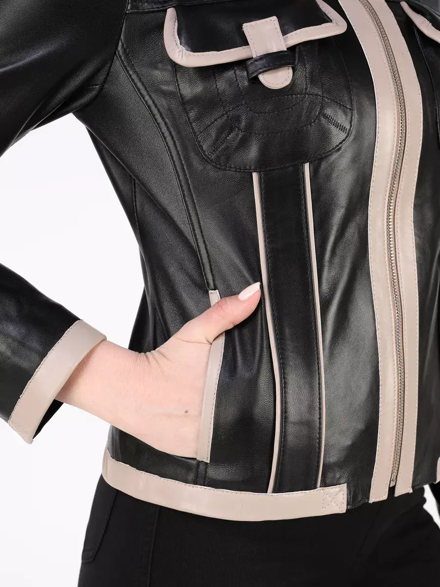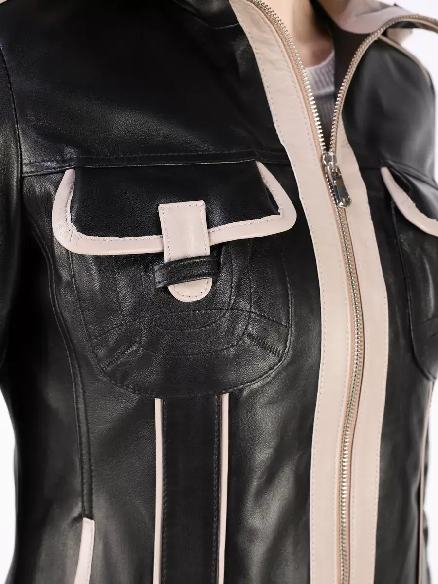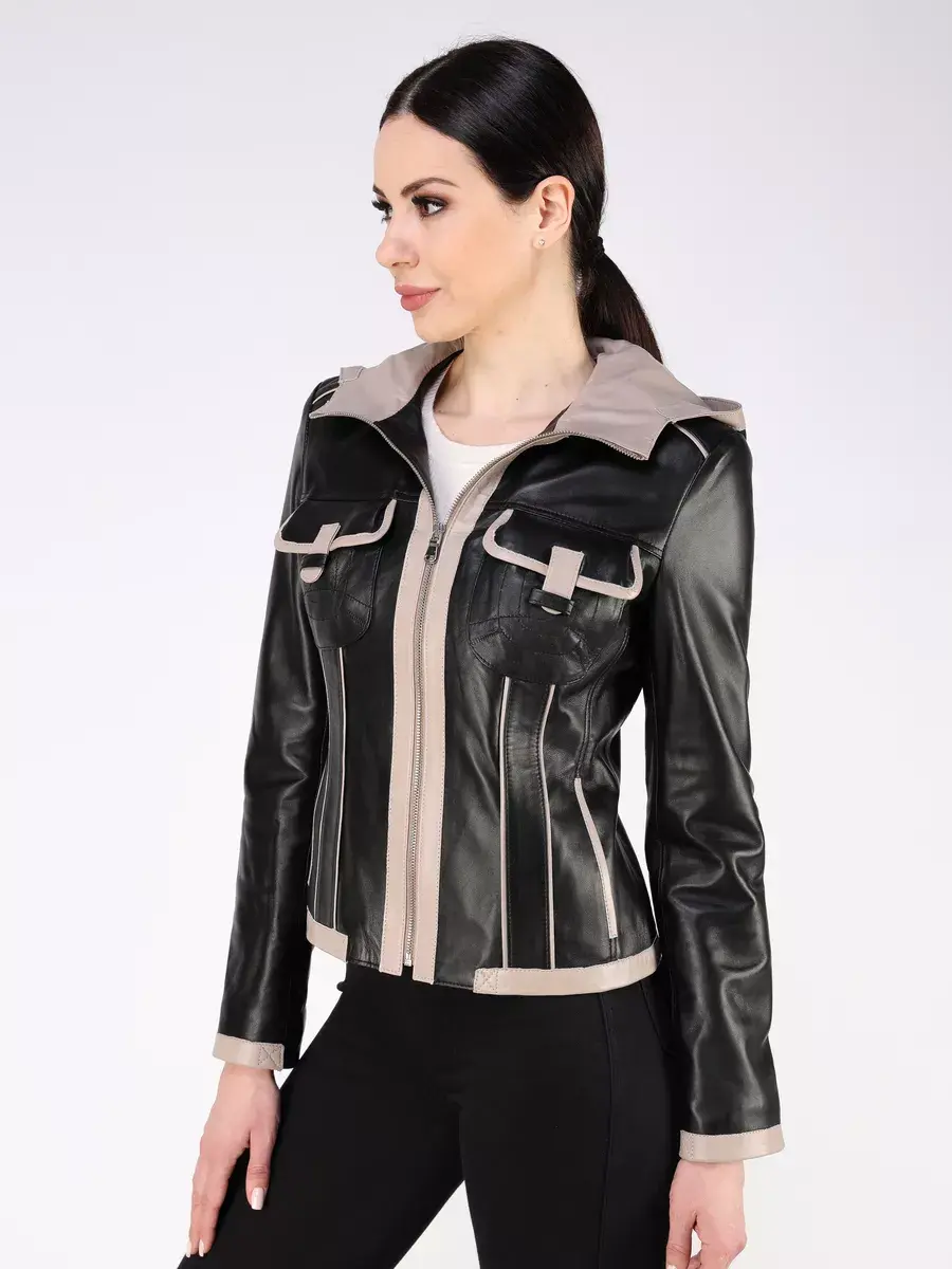 Каждая деталь этой кожаной куртки выполнена с особым вниманием к качеству материалов. Изысканный материал, ровные швы, втачной рукав, прорезные и накладные карманы и комбинация кожи разных цветов добавляют акценты стиля и функциональности, делают эту короткую женскую куртку с несъемным капюшоном универсальным элементом гардероба, который подходит практически под любой стиль, деловой или повседневный. Капюшон обеспечивает идеальную защиту от ветра и дождя, а также придает изделию современный спортивный вид для ходьбы в школу. Кроме того, короткий крой придает молодежный вид изделию. Куртка кожаная женская имеет застежку на молнии, что обеспечивает удобство при ношении. Женская куртка подчеркивает индивидуальность каждой девушки и женщины.