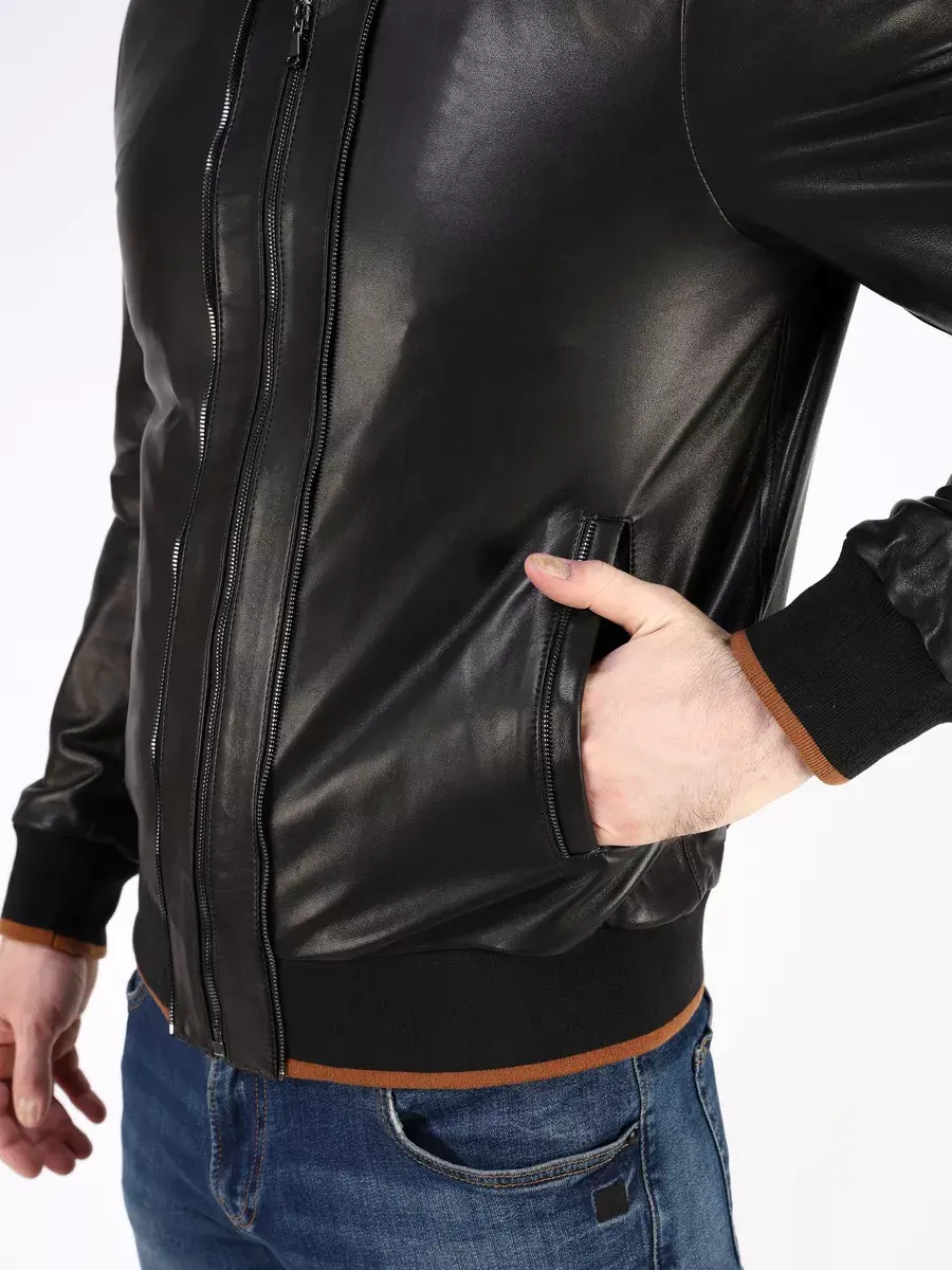 Мужская куртка спортивная с капюшоном выполнена из прочной и в то же время из мягкой натуральной кожи ягненка, которая обеспечивает комфорт и долговечность. Куртка из высококачественной натуральной кожи ягненка позволит вам выглядеть стильно осенью и летом. Кожа износоустойчивая к царапинам и воздействию окружающей среды поэтому дольше сохраняет отличный внешний вид.