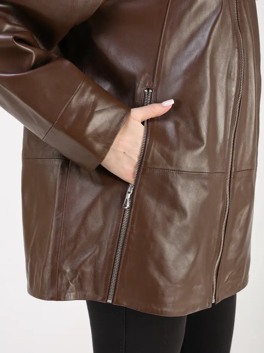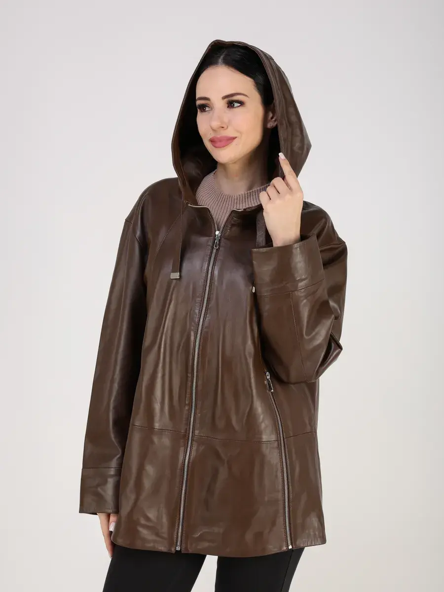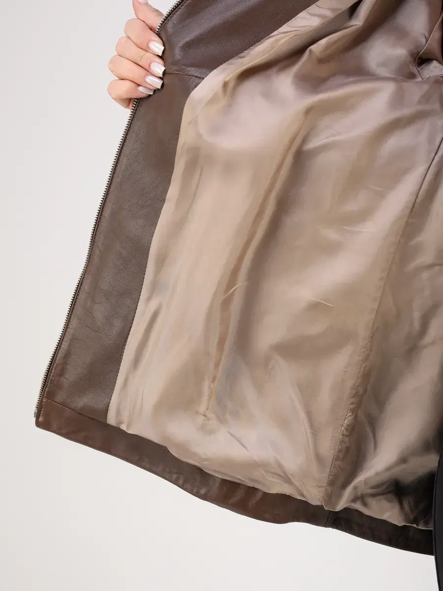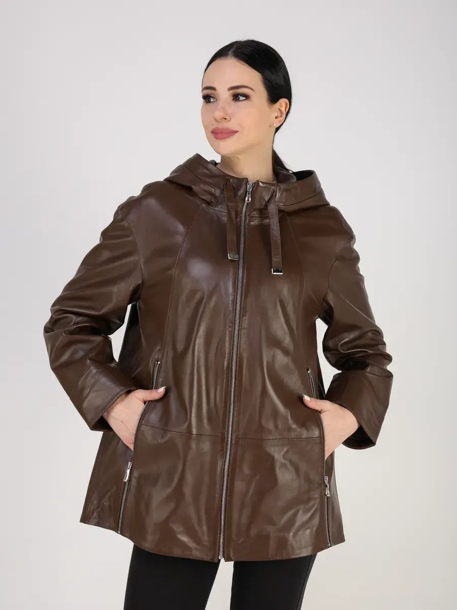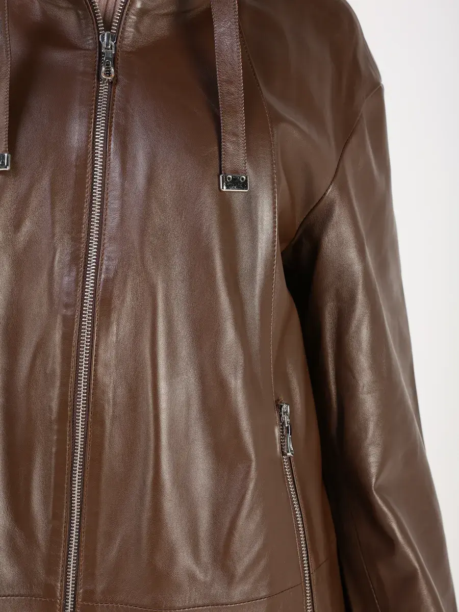Стильная куртка демисезонная женская от MONDIAL из натуральной кожи станет незаменимым элементом вашего гардероба, обеспечит комфорт и защиту от ветра в прохладную погоду осенью и весной. Кожаная куртка осенняя женская с капюшоном выполнена из кожи ягнёнка, которая отличается высокой прочностью и долговечностью, сохраняя при этом свою мягкость и эластичность.