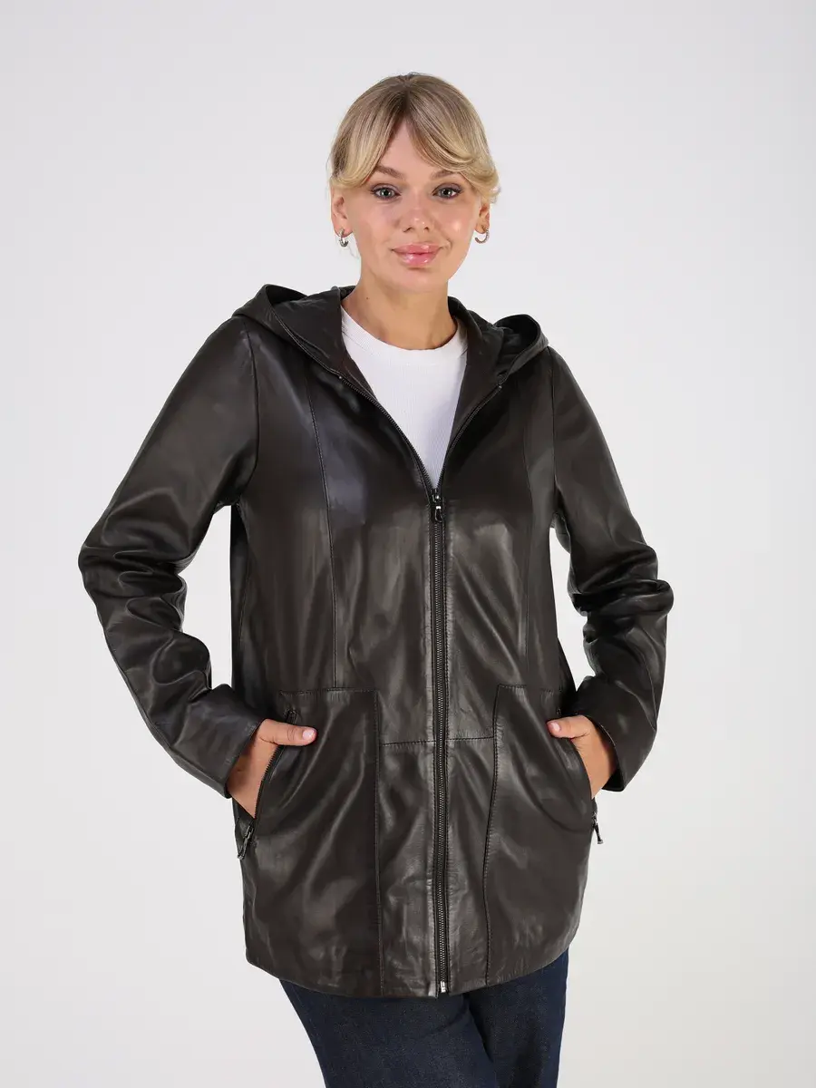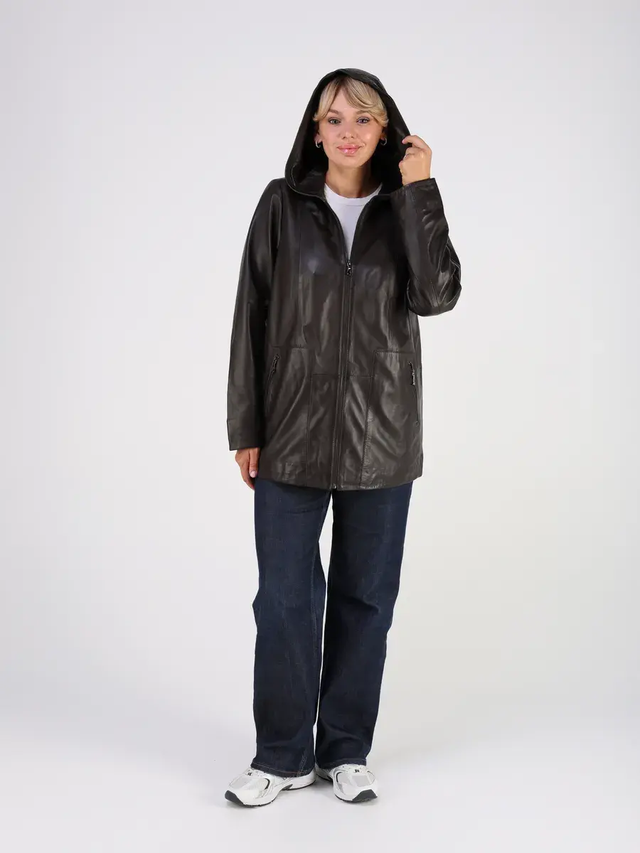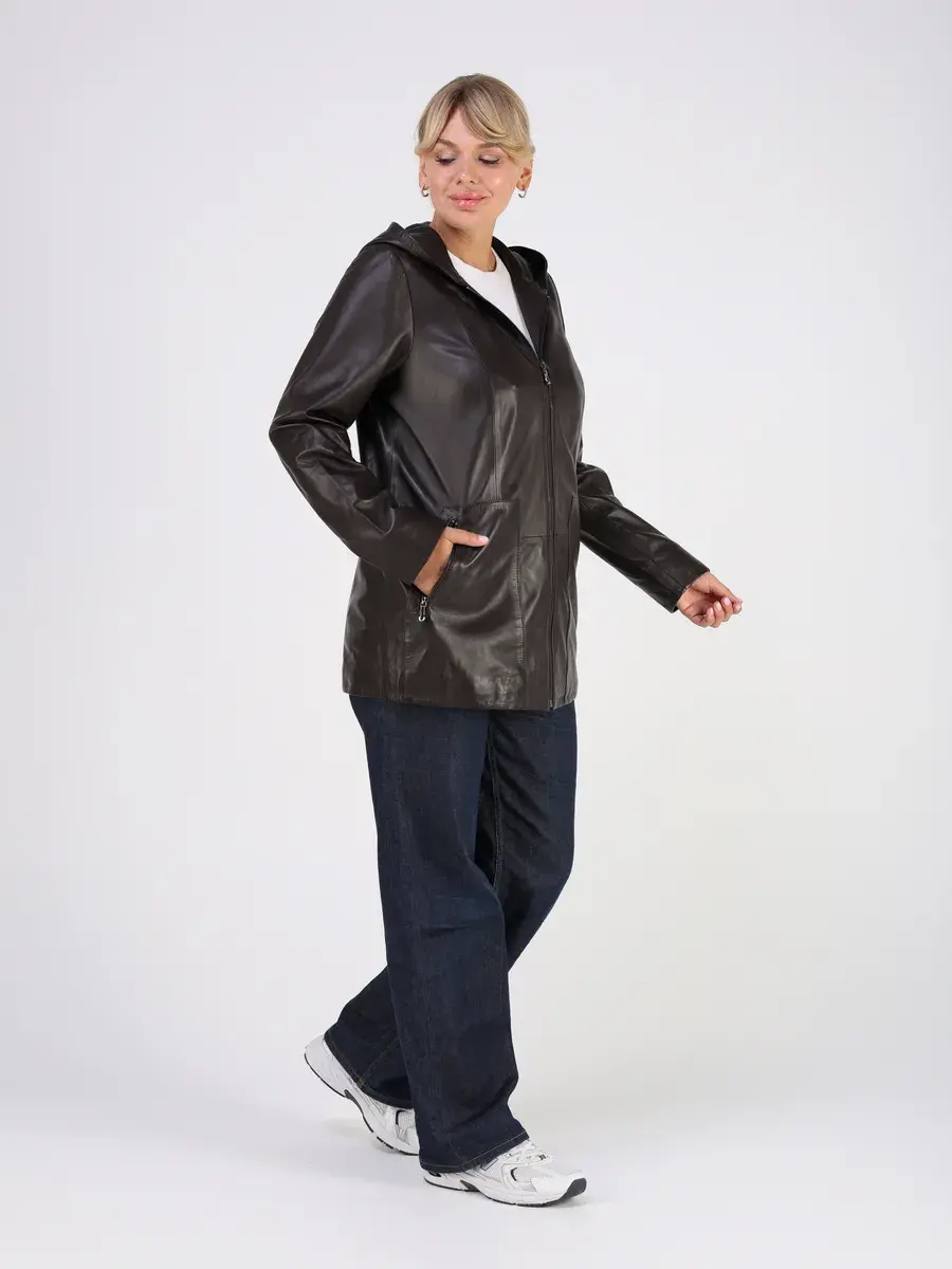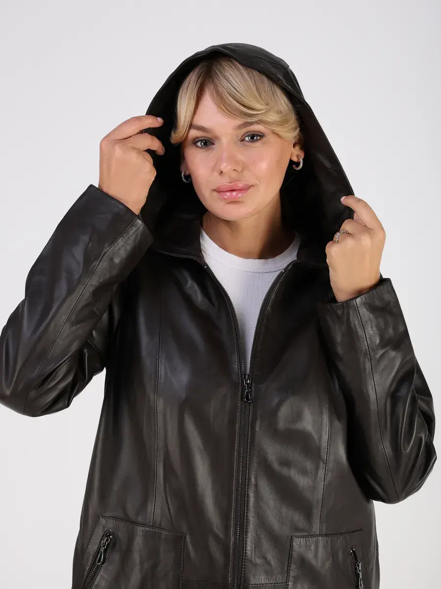 Стильная куртка демисезонная женская от MONDIAL из натуральной кожи станет незаменимым элементом вашего гардероба, обеспечит комфорт и защиту от ветра в прохладную погоду осенью и весной. Кожаная куртка осенняя женская с капюшоном выполнена из кожи ягнёнка, которая отличается высокой прочностью и долговечностью, сохраняя при этом свою мягкость и эластичность.