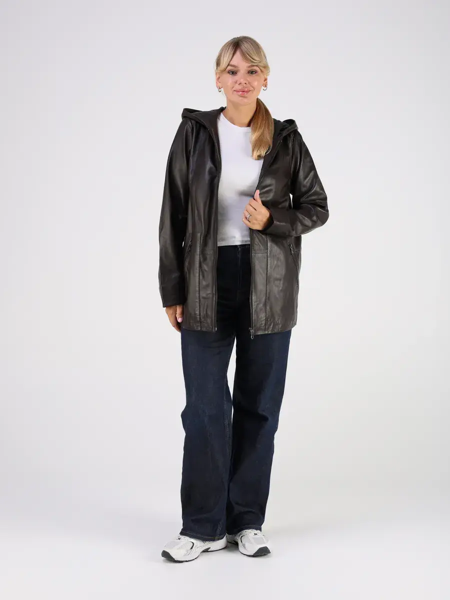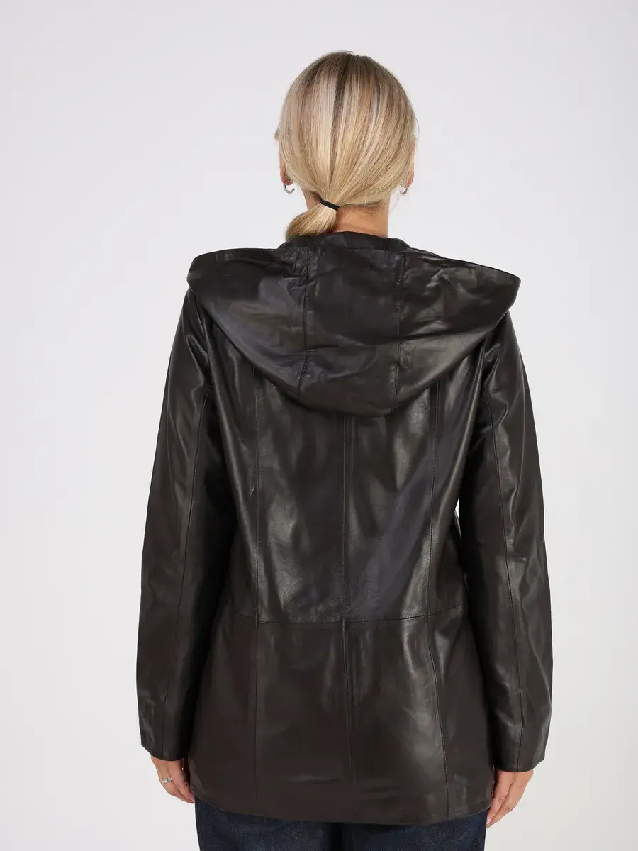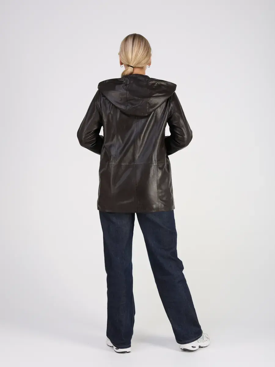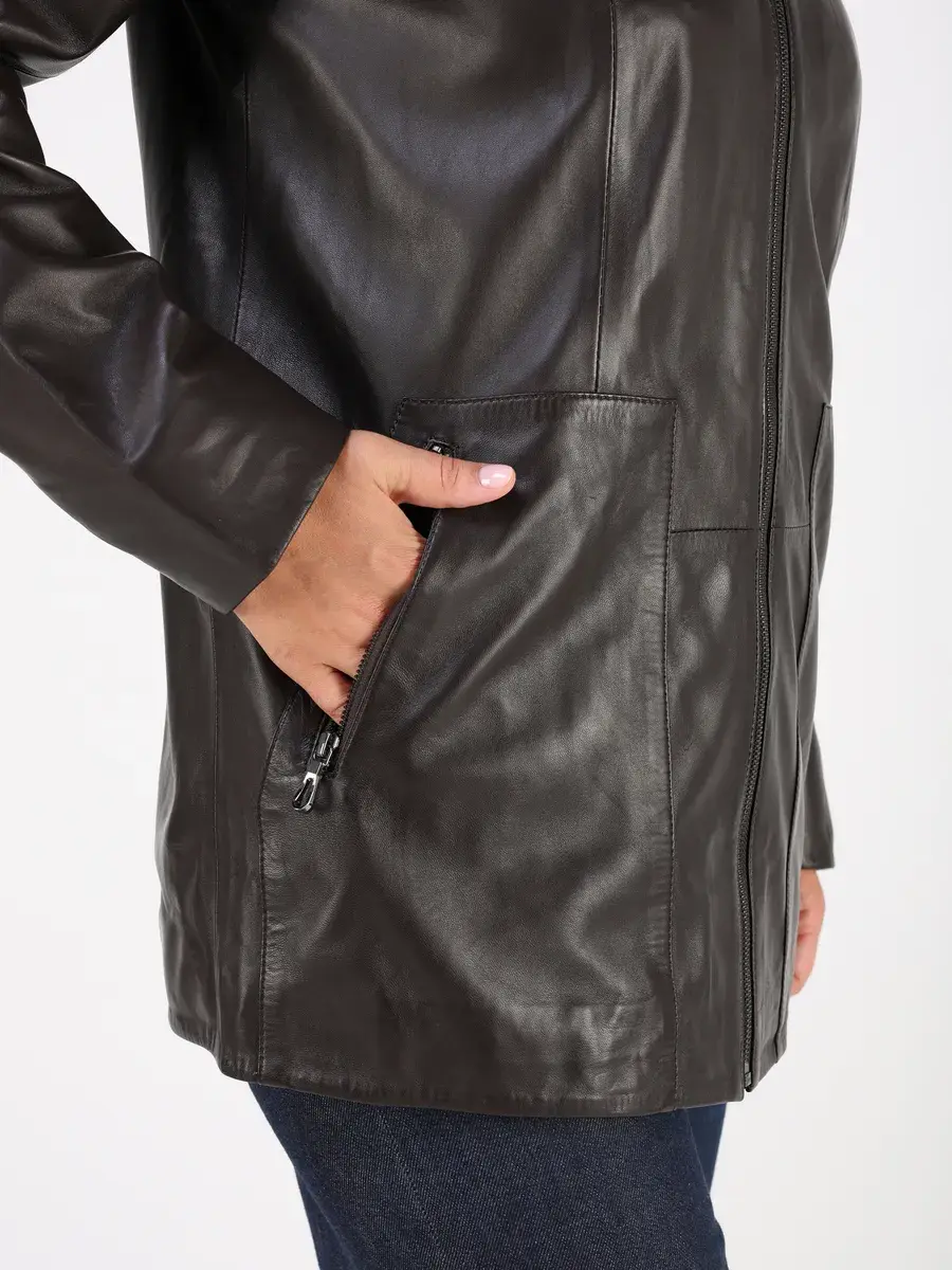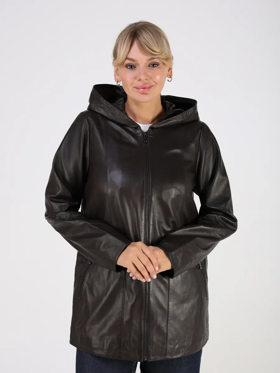 Стильная куртка демисезонная женская от MONDIAL из натуральной кожи станет незаменимым элементом вашего гардероба, обеспечит комфорт и защиту от ветра в прохладную погоду осенью и весной. Кожаная куртка осенняя женская с капюшоном выполнена из кожи ягнёнка, которая отличается высокой прочностью и долговечностью, сохраняя при этом свою мягкость и эластичность.