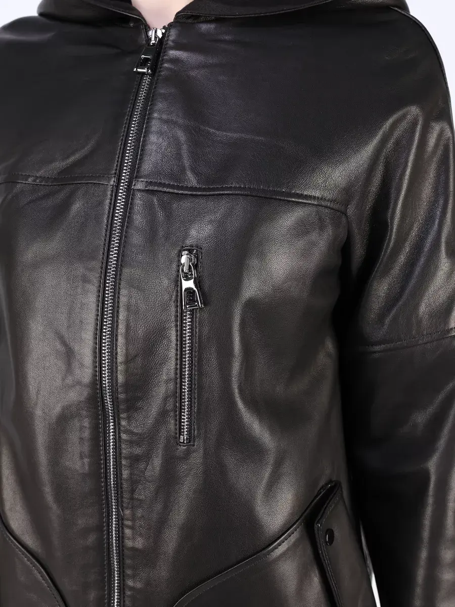 Классическая кожаная куртка демисезонная женская с капюшоном бренда Mondial сочетает в себе изысканность и элегантность. Стильная и практичная кожаная куртка женская из натуральной кожи с капюшоном прекрасно подходить для холодных дней весной и соенью. Женская куртка кожаная изготовлена из высококачественной натуральной кожи ягненка. Высокое качество материала говорит о её долговечности и комфортном ношении. Данная модель подходит как для демисезона, так и для прохладного летнего периода, делая её универсальной опцией для гардероба.