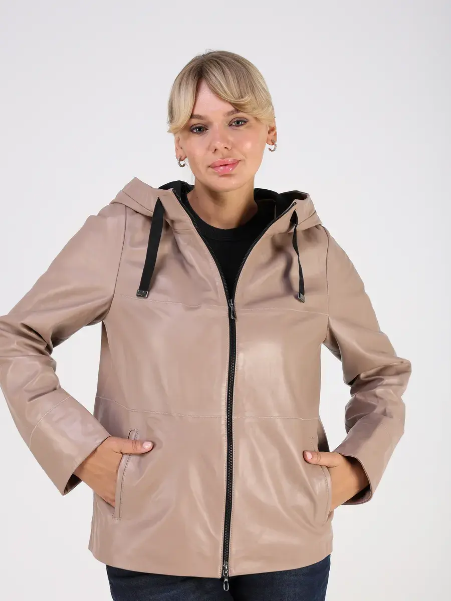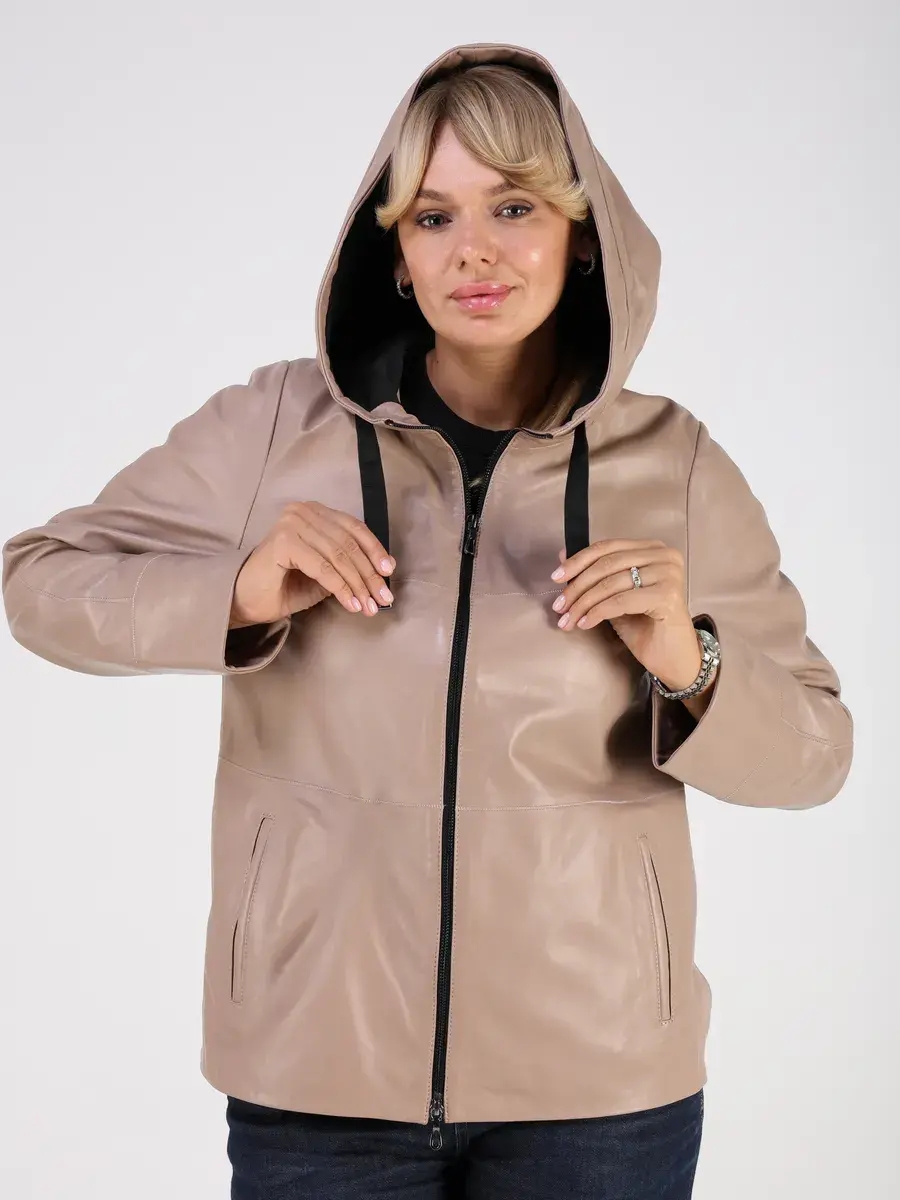 кожаная куртка демисезонная женская с капюшоном,