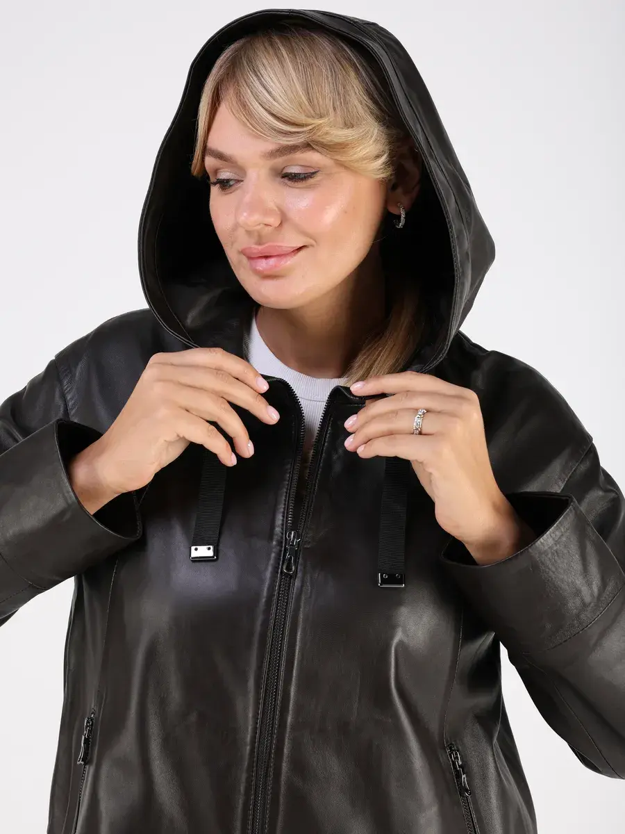 кожаная куртка демисезонная женская с капюшоном,