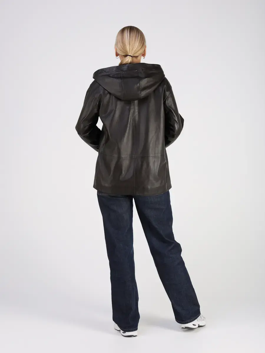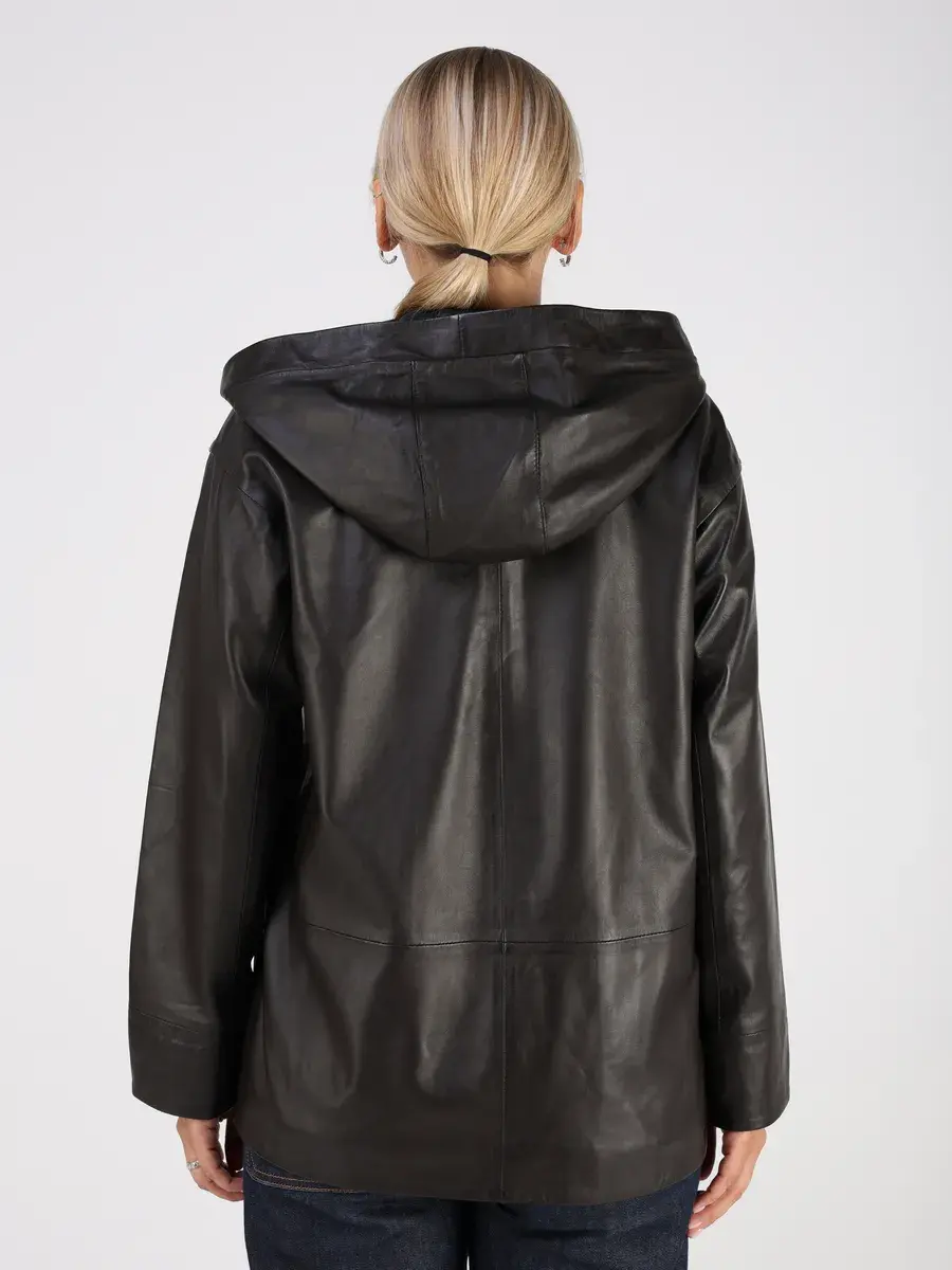 Стильная куртка демисезонная женская от MONDIAL из натуральной кожи станет незаменимым элементом вашего гардероба, обеспечит комфорт и защиту от ветра в прохладную погоду осенью и весной. Кожаная куртка осенняя женская с капюшоном выполнена из кожи ягнёнка, которая отличается высокой прочностью и долговечностью, сохраняя при этом свою мягкость и эластичность.