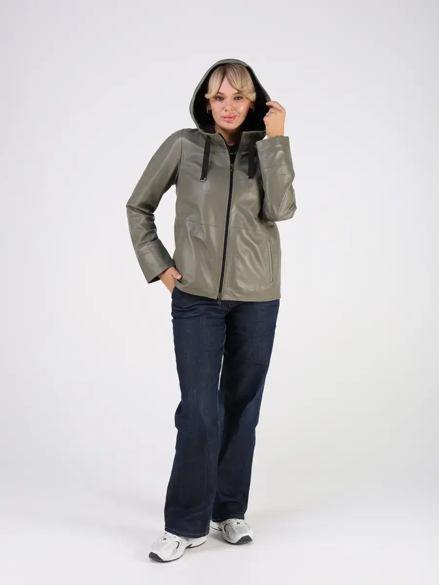 кожаная куртка демисезонная женская с капюшоном,
