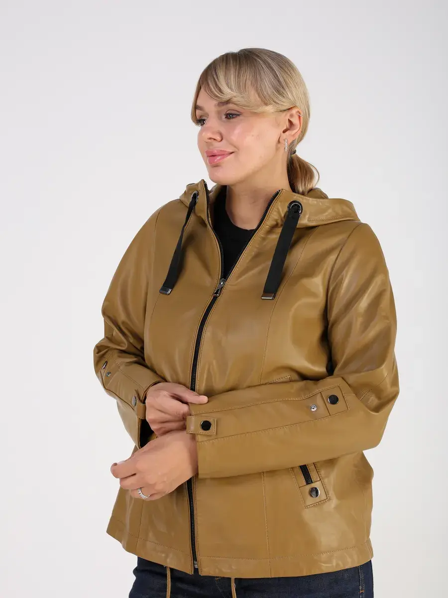кожаная куртка демисезонная женская с капюшоном,