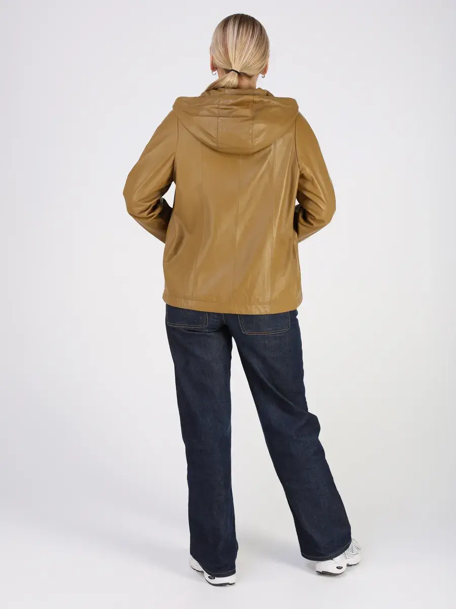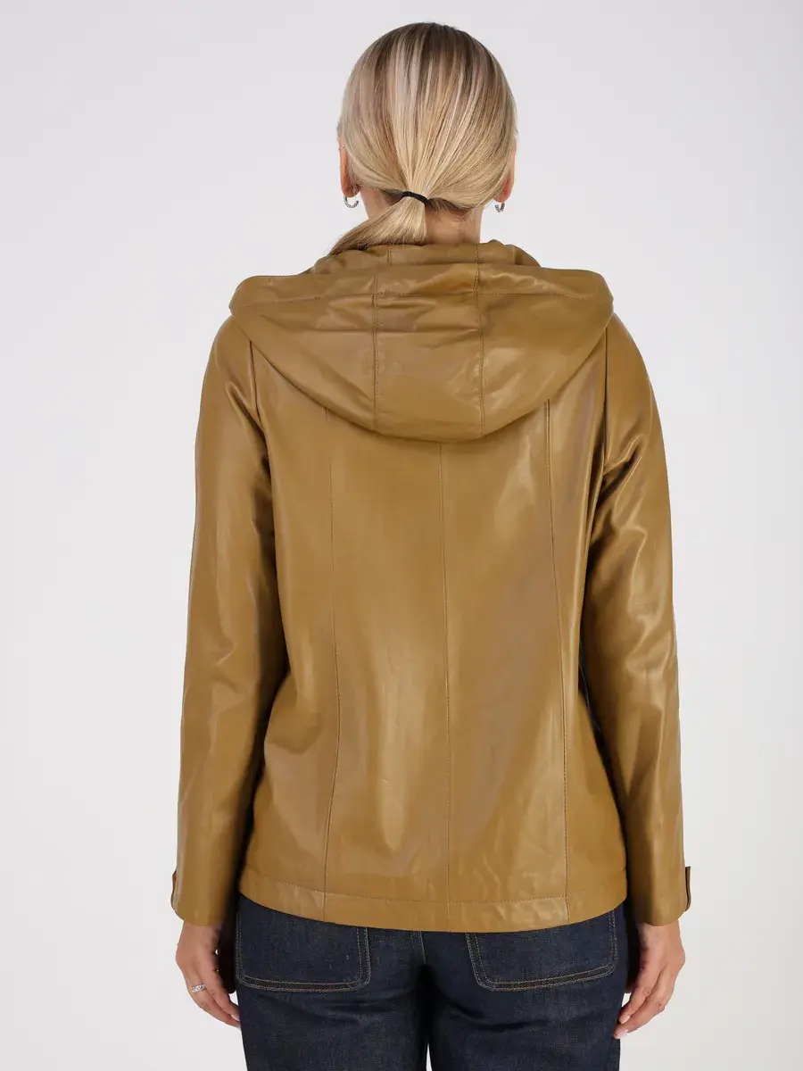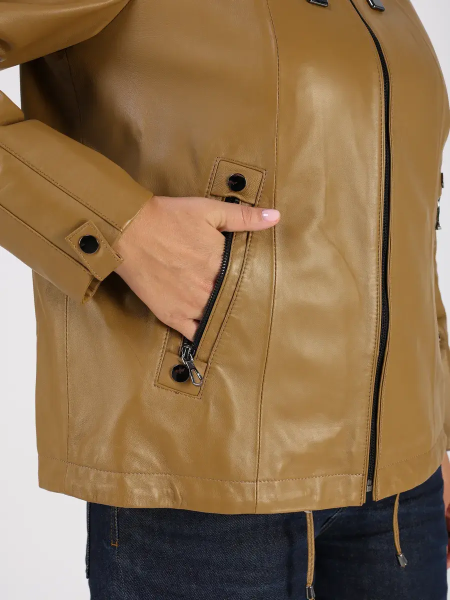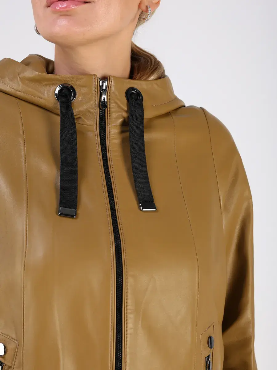 Стильная куртка демисезонная женская от MONDIAL из натуральной кожи станет незаменимым элементом вашего гардероба, обеспечит комфорт и защиту от ветра в прохладную погоду осенью и весной. Кожаная куртка осенняя женская с капюшоном выполнена из кожи ягнёнка, которая отличается высокой прочностью и долговечностью, сохраняя при этом свою мягкость и эластичность.