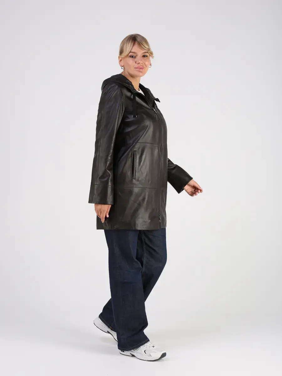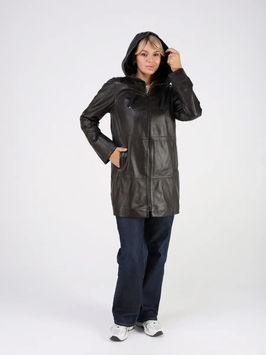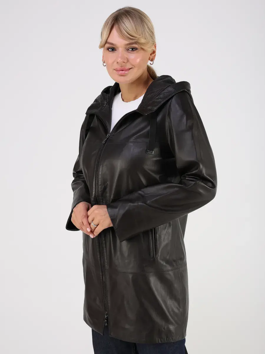 Стильная куртка демисезонная женская удлиненная от MONDIAL из натуральной кожи станет незаменимым элементом вашего гардероба, обеспечит комфорт и защиту от ветра в прохладную погоду осенью и весной. Кожаная куртка осенняя женская с капюшоном выполнена из кожи ягнёнка, которая отличается высокой прочностью и долговечностью, сохраняя при этом свою мягкость и эластичность.