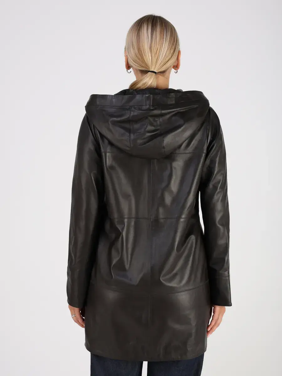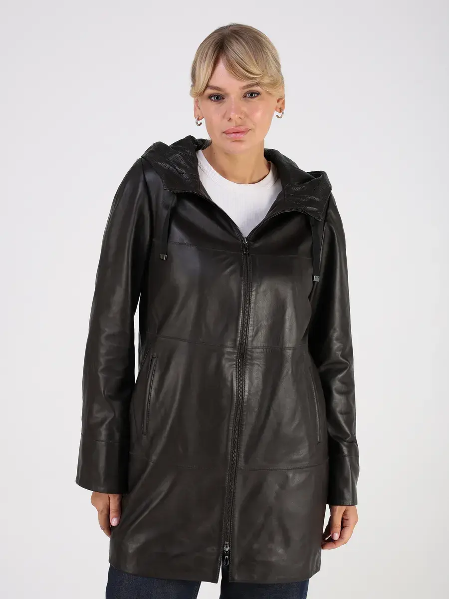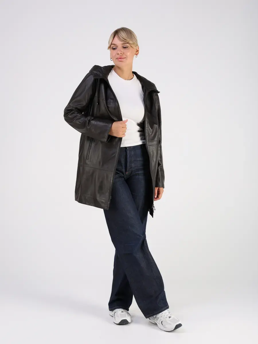 Стильная куртка демисезонная женская удлиненная от MONDIAL из натуральной кожи станет незаменимым элементом вашего гардероба, обеспечит комфорт и защиту от ветра в прохладную погоду осенью и весной. Кожаная куртка осенняя женская с капюшоном выполнена из кожи ягнёнка, которая отличается высокой прочностью и долговечностью, сохраняя при этом свою мягкость и эластичность.