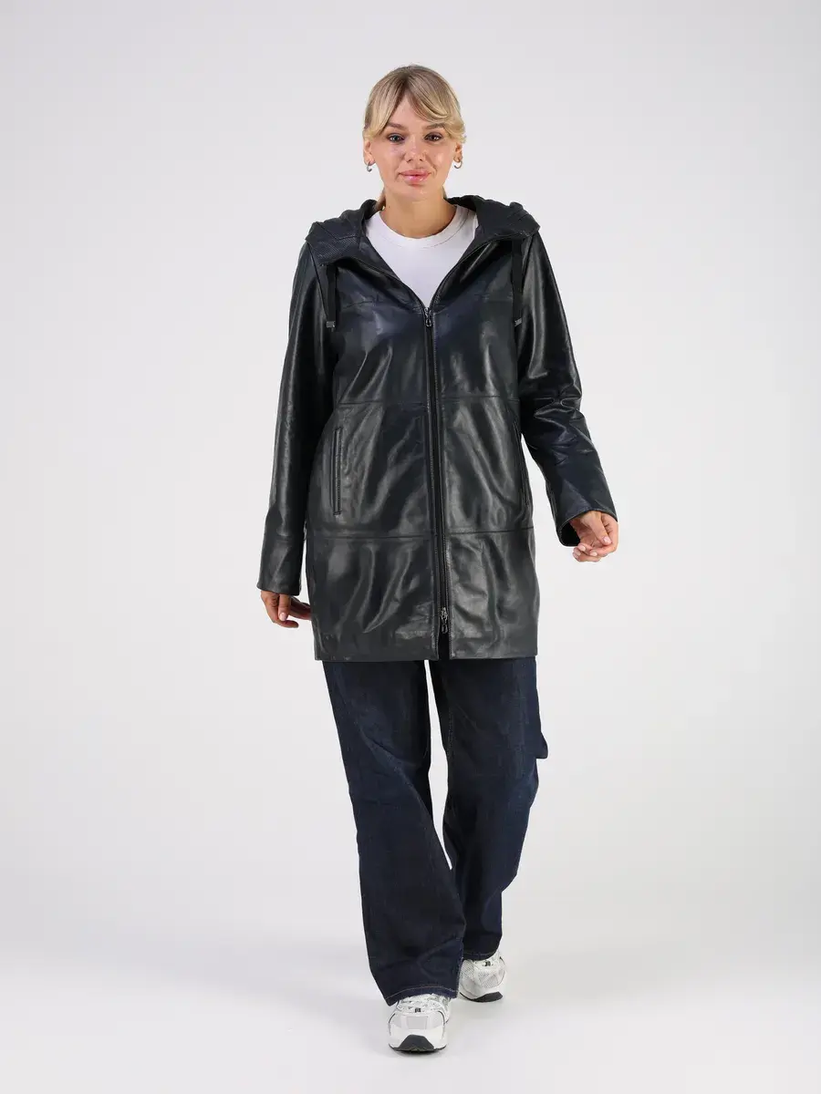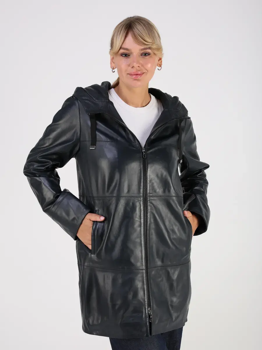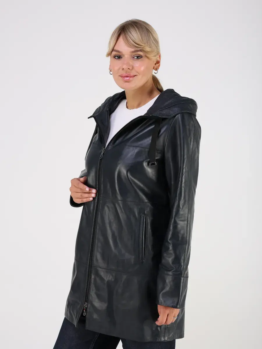 Стильная куртка демисезонная женская удлиненная от MONDIAL из натуральной кожи станет незаменимым элементом вашего гардероба, обеспечит комфорт и защиту от ветра в прохладную погоду осенью и весной. Кожаная куртка осенняя женская с капюшоном выполнена из кожи ягнёнка, которая отличается высокой прочностью и долговечностью, сохраняя при этом свою мягкость и эластичность.