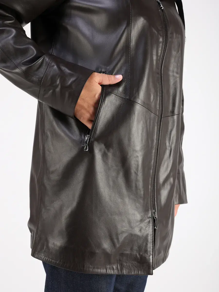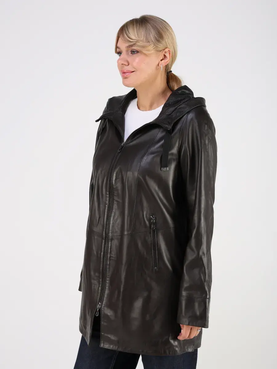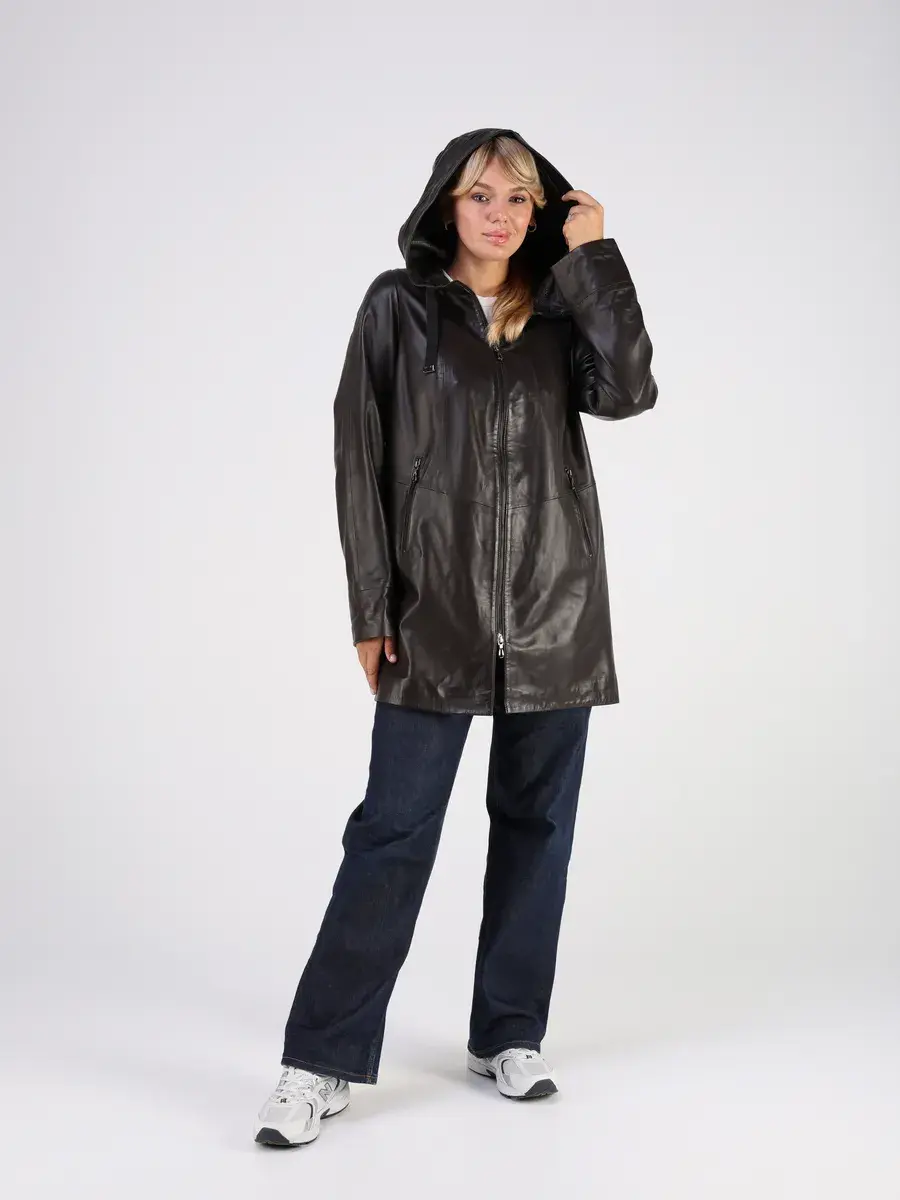 Стильная куртка демисезонная женская удлиненная от MONDIAL из натуральной кожи станет незаменимым элементом вашего гардероба, обеспечит комфорт и защиту от ветра в прохладную погоду осенью и весной. Кожаная куртка осенняя женская с капюшоном выполнена из кожи ягнёнка, которая отличается высокой прочностью и долговечностью, сохраняя при этом свою мягкость и эластичность.