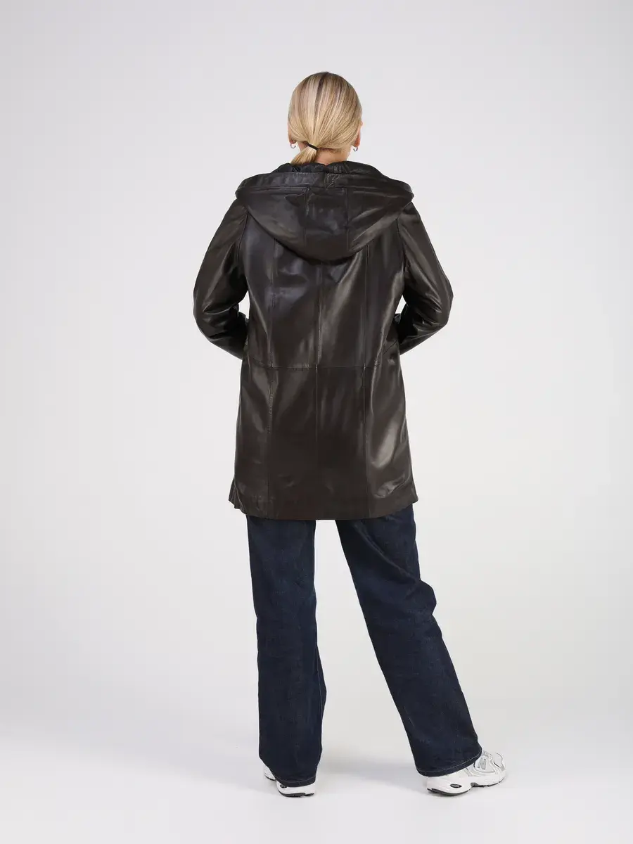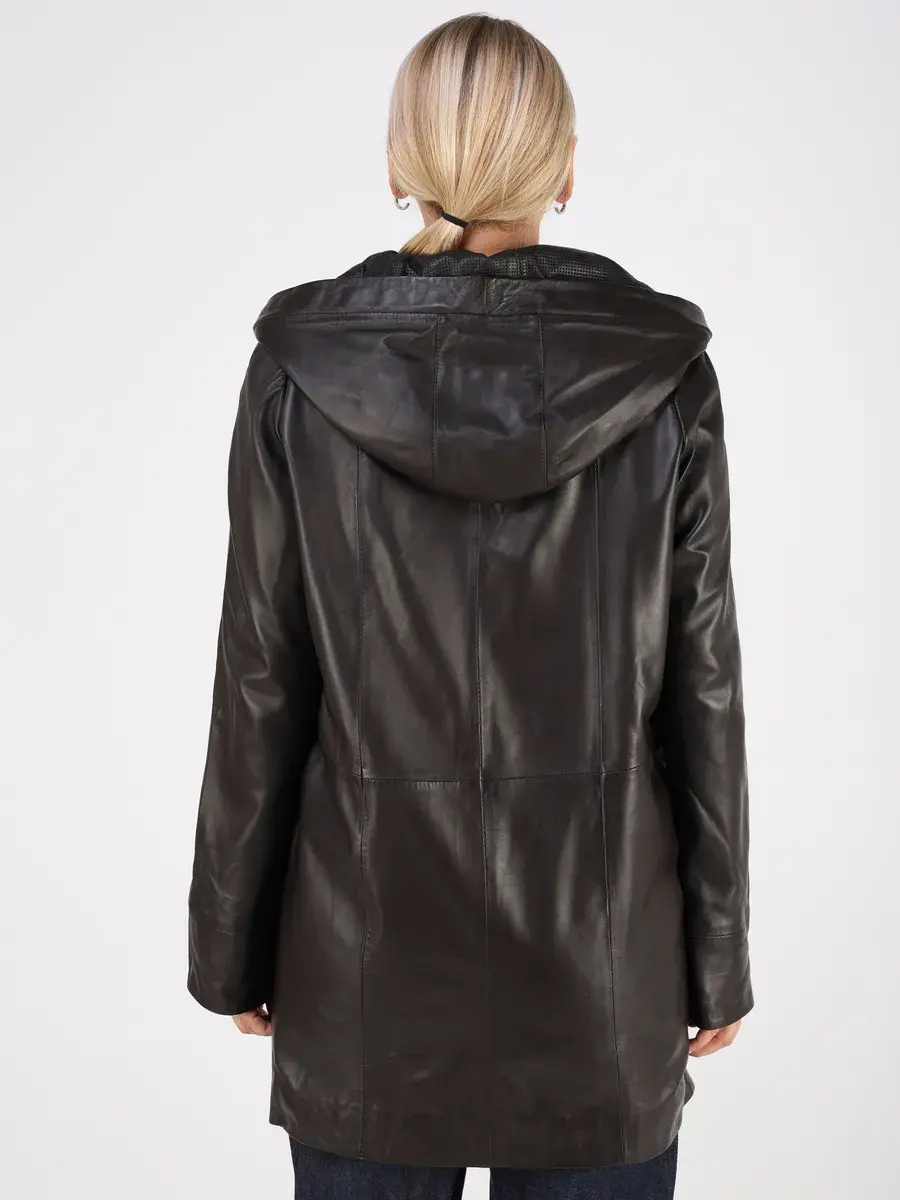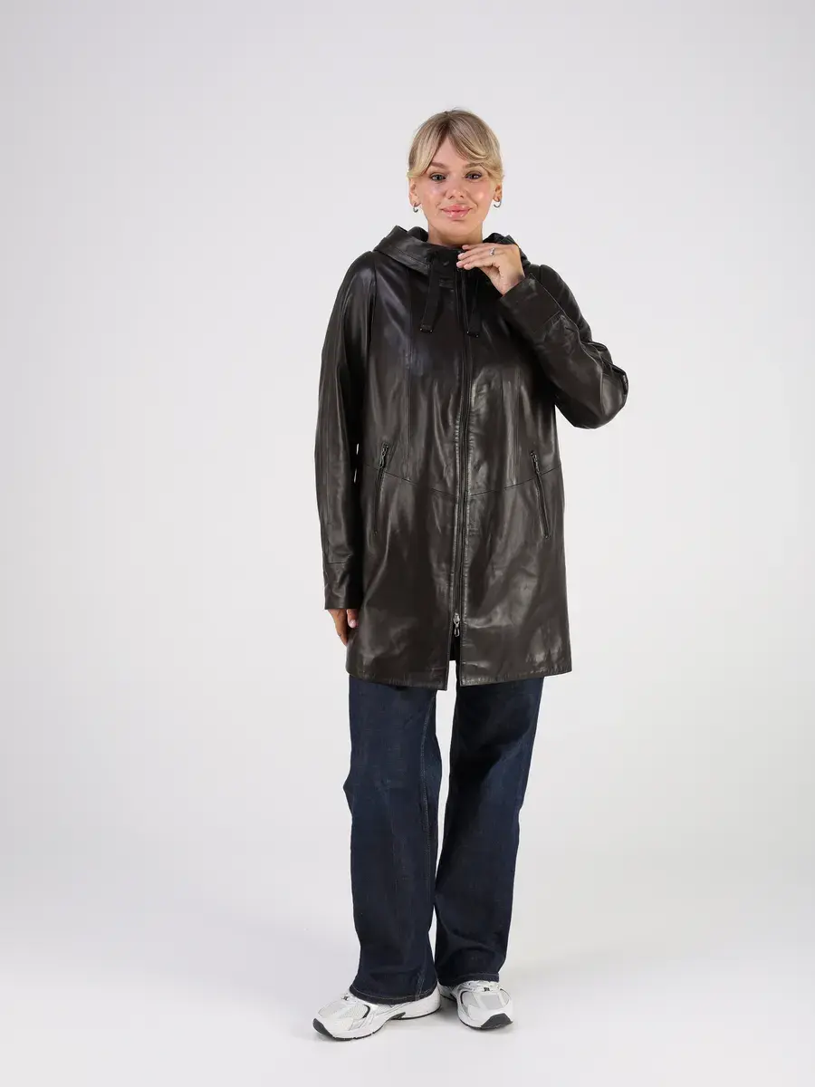Стильная куртка демисезонная женская удлиненная от MONDIAL из натуральной кожи станет незаменимым элементом вашего гардероба, обеспечит комфорт и защиту от ветра в прохладную погоду осенью и весной. Кожаная куртка осенняя женская с капюшоном выполнена из кожи ягнёнка, которая отличается высокой прочностью и долговечностью, сохраняя при этом свою мягкость и эластичность.