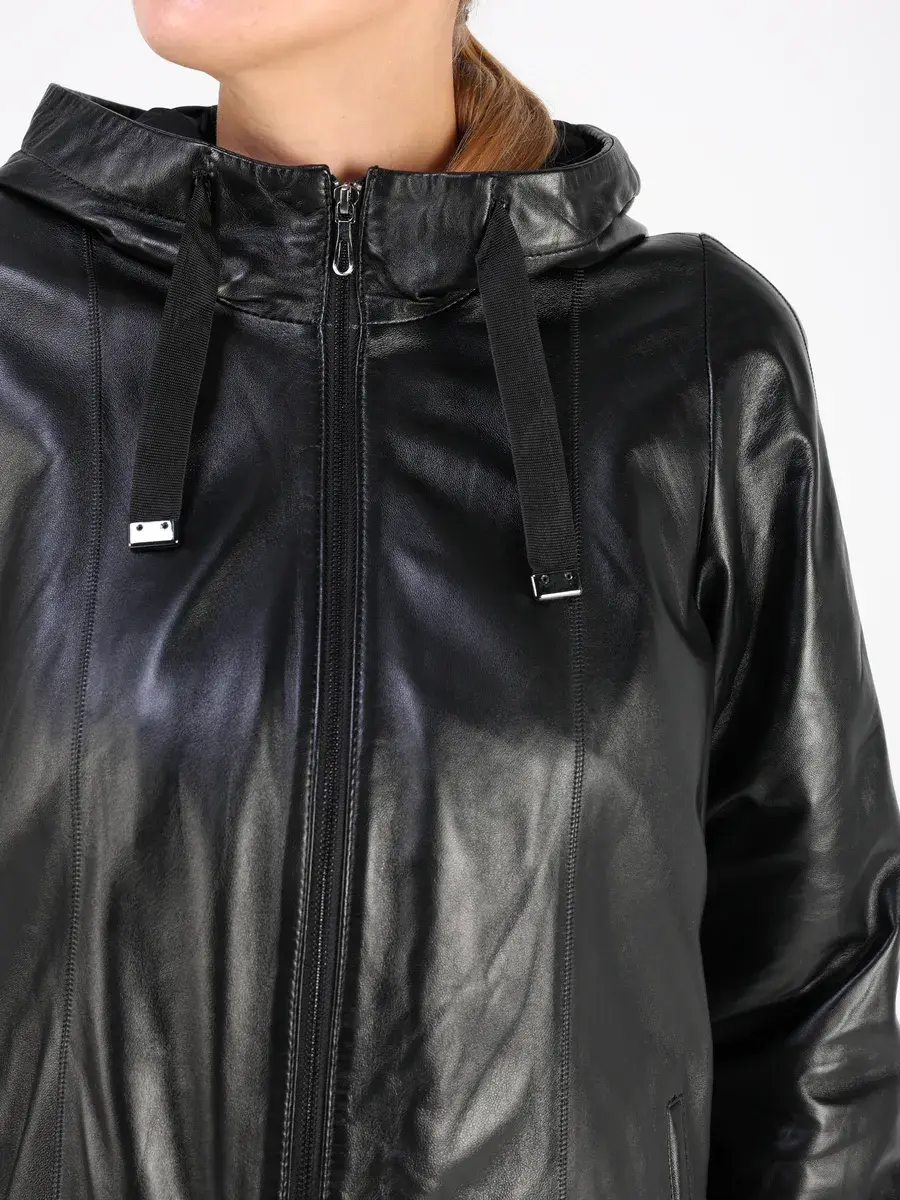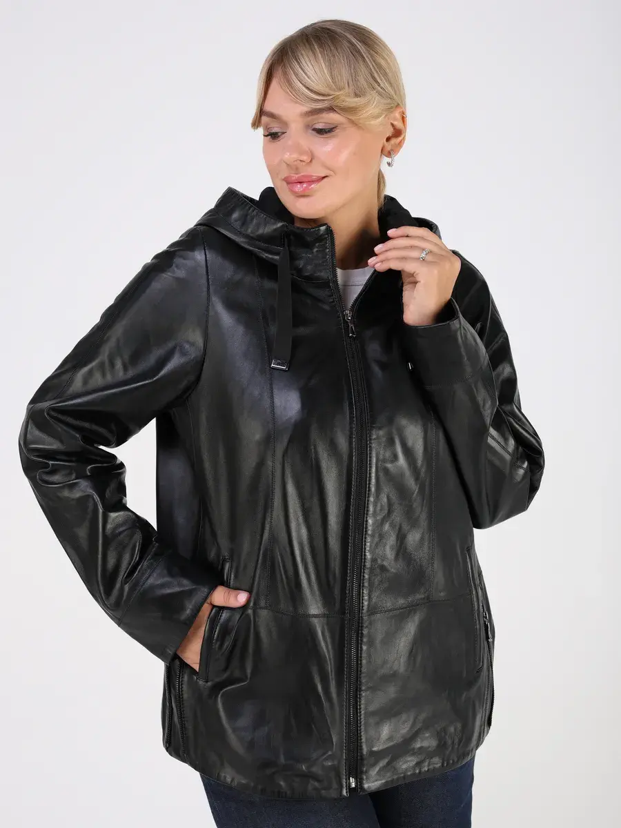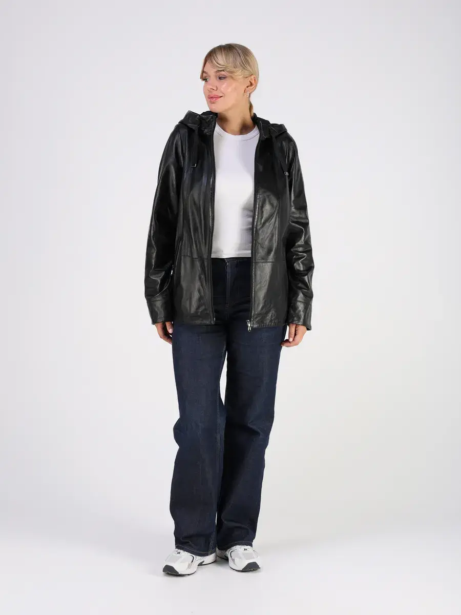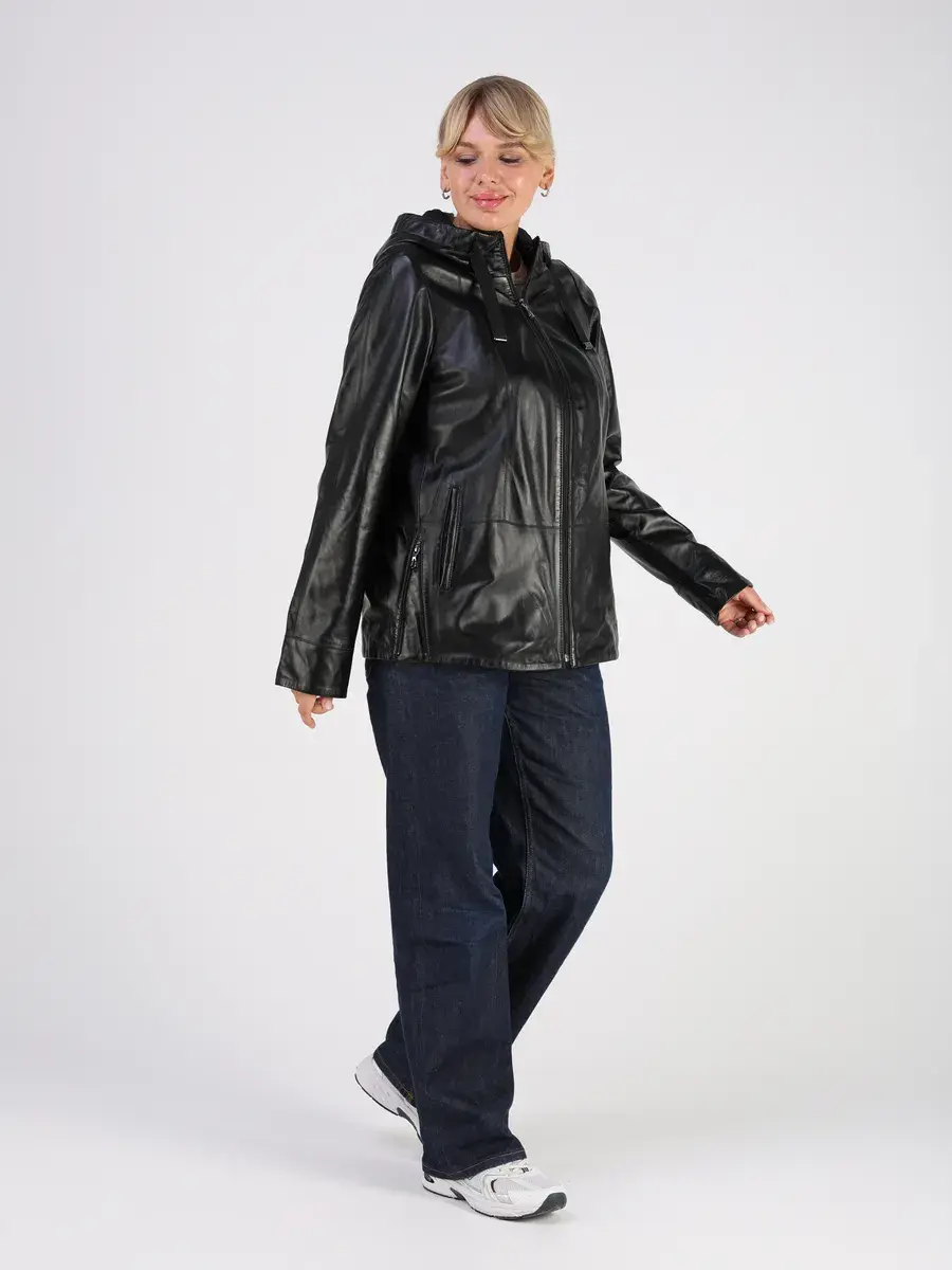 Стильная куртка демисезонная женская от MONDIAL из натуральной кожи станет незаменимым элементом вашего гардероба, обеспечит комфорт и защиту от ветра в прохладную погоду осенью и весной. Кожаная куртка осенняя женская с капюшоном выполнена из кожи ягнёнка, которая отличается высокой прочностью и долговечностью, сохраняя при этом свою мягкость и эластичность.