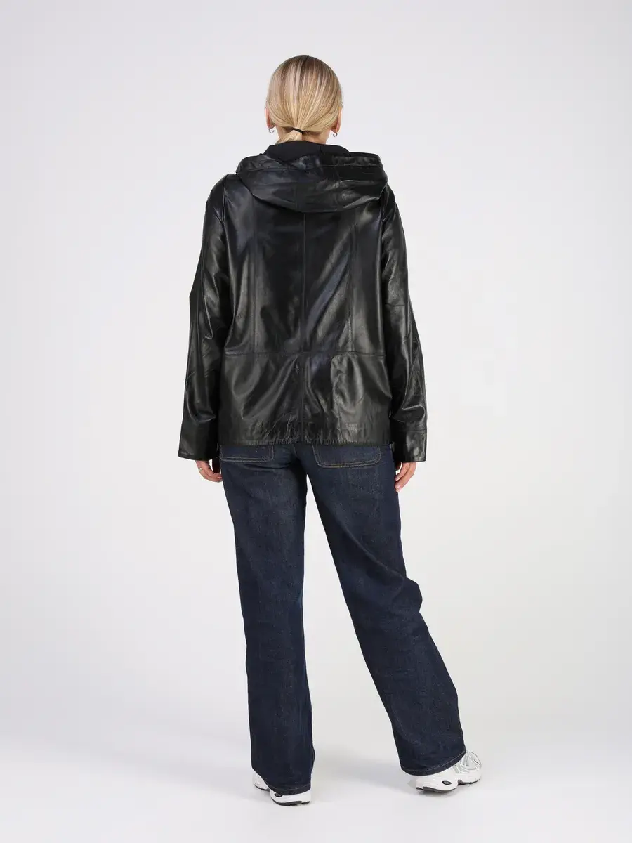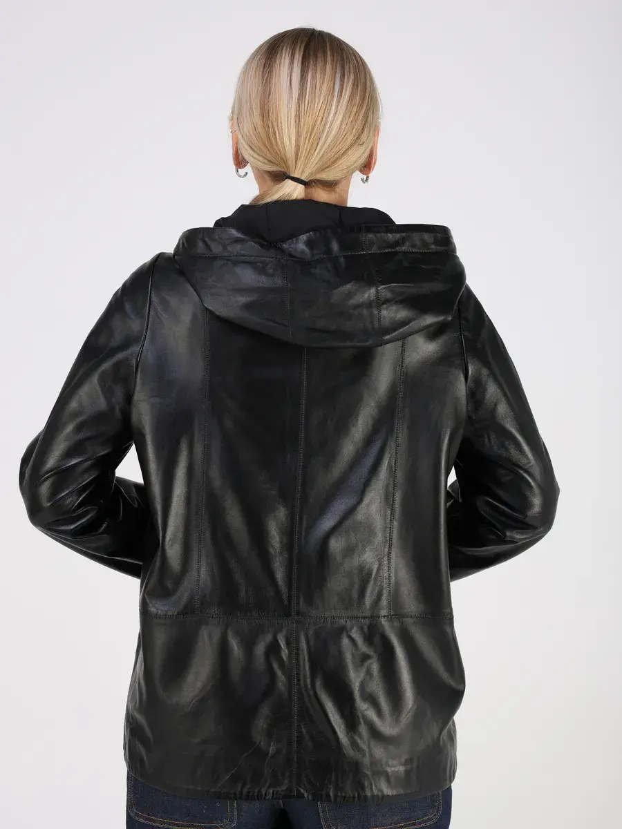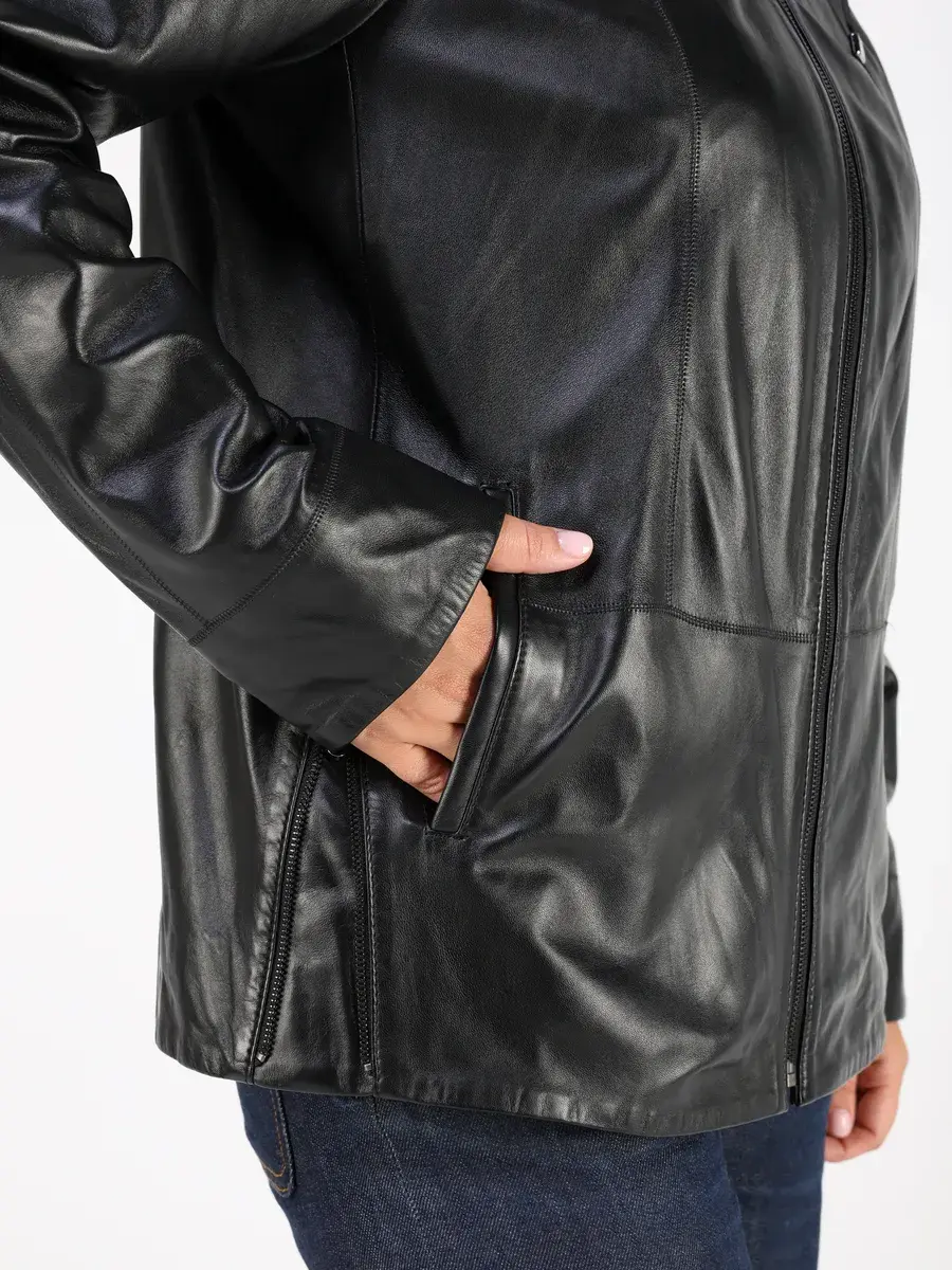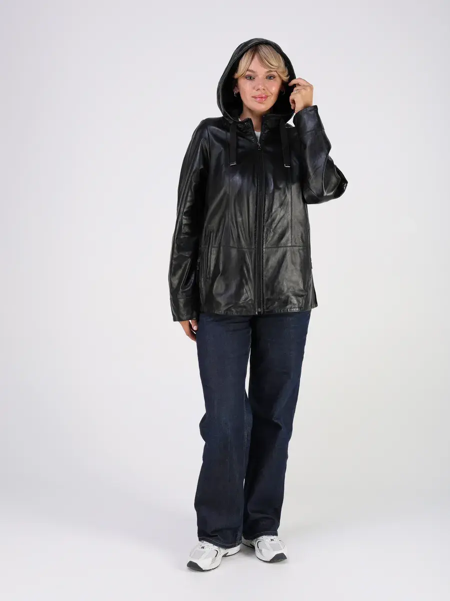Стильная куртка демисезонная женская от MONDIAL из натуральной кожи станет незаменимым элементом вашего гардероба, обеспечит комфорт и защиту от ветра в прохладную погоду осенью и весной. Кожаная куртка осенняя женская с капюшоном выполнена из кожи ягнёнка, которая отличается высокой прочностью и долговечностью, сохраняя при этом свою мягкость и эластичность.