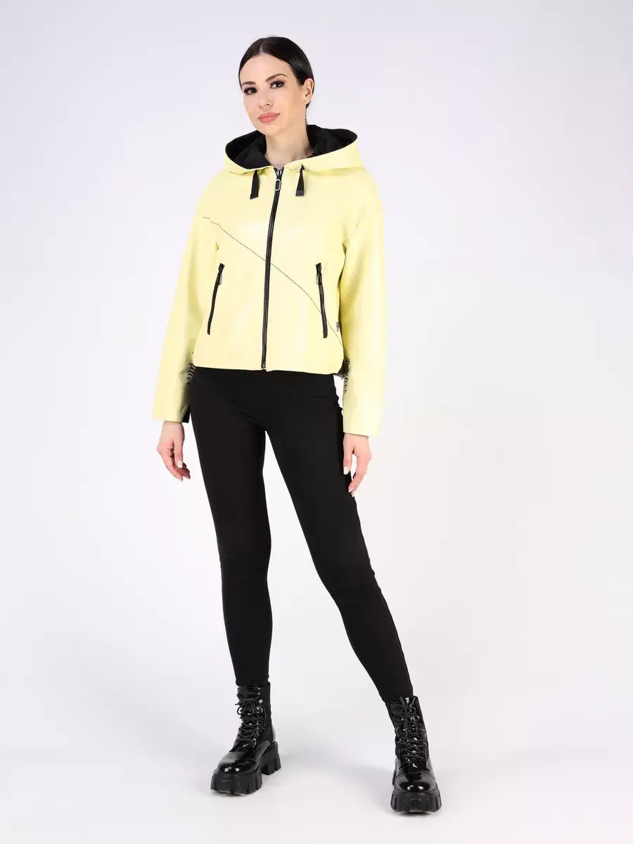 Кожаная куртка женская с капюшоном демисезонная бренда MONDIAL— это воплощение стиля и практичности. Женская куртка весенняя и осенняя изготовлена из высококачественной натуральной кожи выделки плонже.