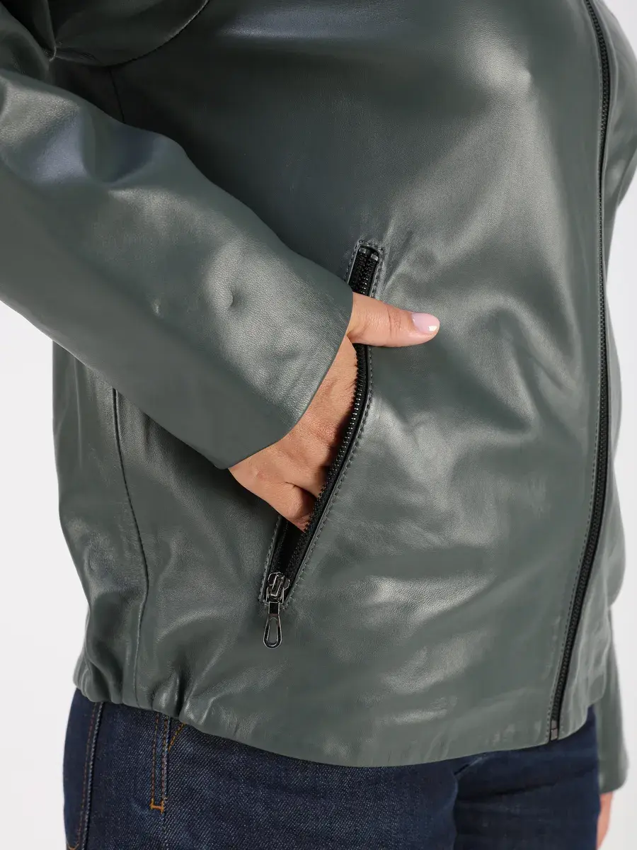 Стильная куртка демисезонная женская от MONDIAL из натуральной кожи станет незаменимым элементом вашего гардероба, обеспечит комфорт и защиту от ветра в прохладную погоду осенью и весной. Кожаная куртка осенняя женская с капюшоном выполнена из кожи ягнёнка, которая отличается высокой прочностью и долговечностью, сохраняя при этом свою мягкость и эластичность.