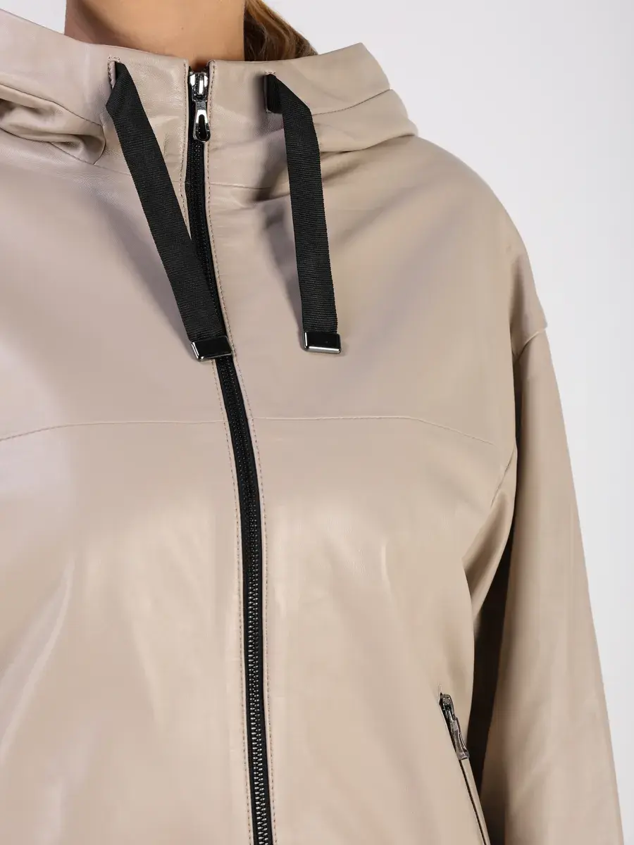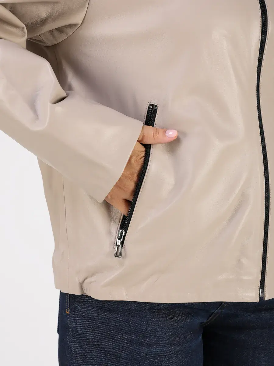 Стильная куртка демисезонная женская от MONDIAL из натуральной кожи станет незаменимым элементом вашего гардероба, обеспечит комфорт и защиту от ветра в прохладную погоду осенью и весной. Кожаная куртка осенняя женская с капюшоном выполнена из кожи ягнёнка, которая отличается высокой прочностью и долговечностью, сохраняя при этом свою мягкость и эластичность.