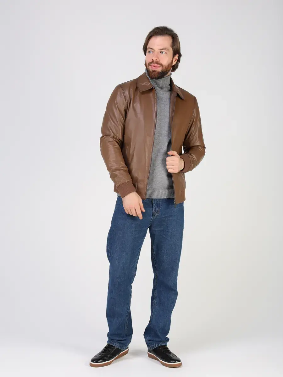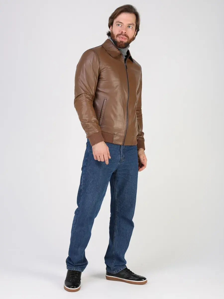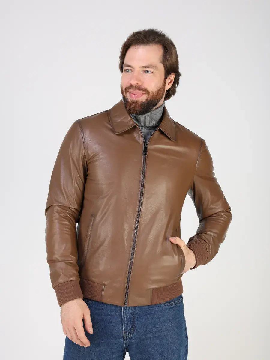 Куртка кожаная мужская из натуральной кожи имеет длину по спинке 70 см, утягивающие трикотажные манжеты, что обеспечивает идеальное соотношение между длиной и защитой от холода.