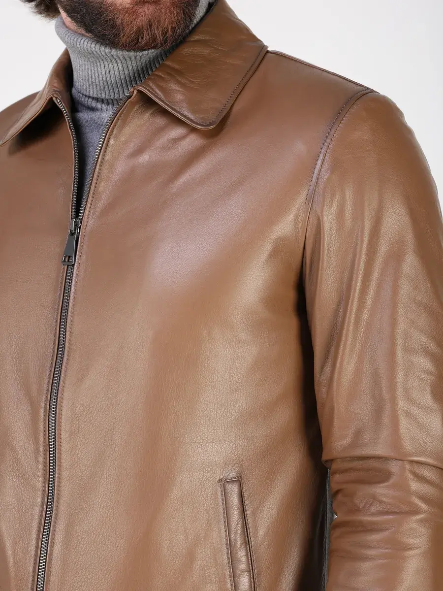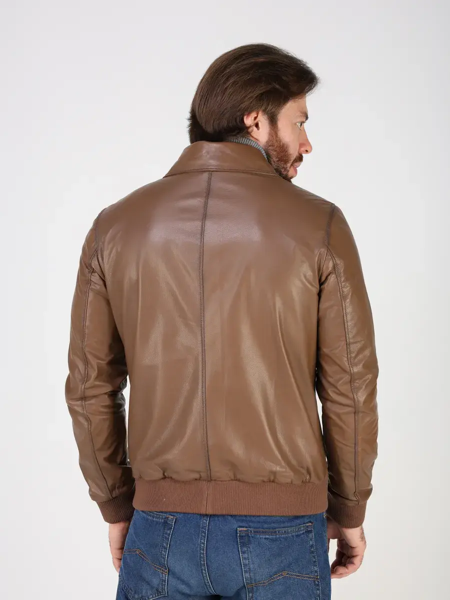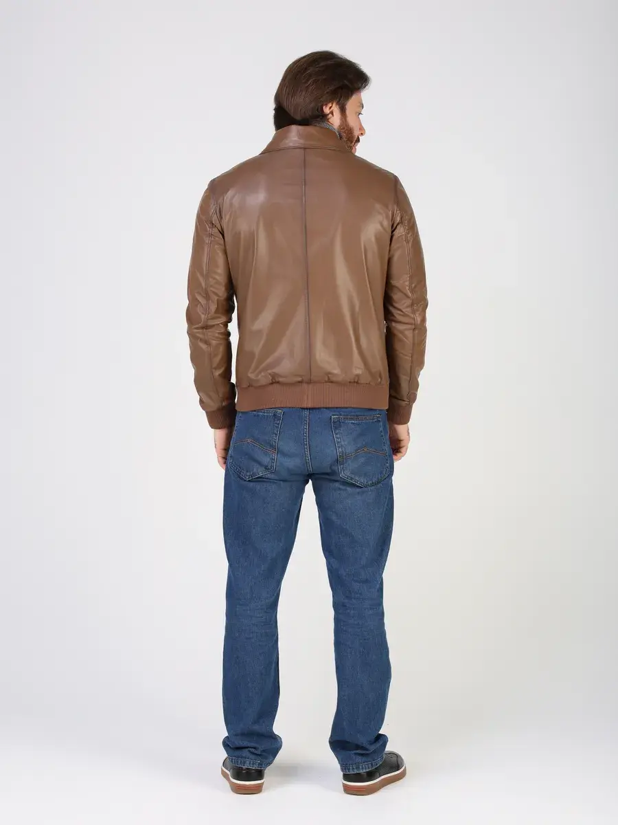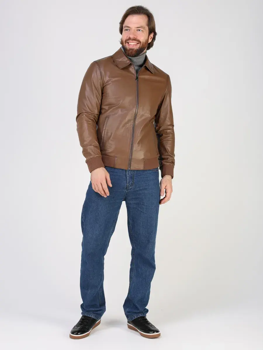 Куртка кожаная мужская из натуральной кожи имеет длину по спинке 70 см, утягивающие трикотажные манжеты, что обеспечивает идеальное соотношение между длиной и защитой от холода.